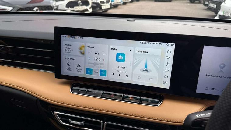 Driver attention alert, 12.3" colour touchscreen, 12.3" Virtual driver information display, 360 degree parking camera, Adaptive cruise control, Android Auto, Apple CarPlay, Blind spot detection, Bluetooth connectivity, Driver memory function, Emergency call service, Forward collision warning, Front parking sensors, Intelligent speed limit assist, iSmart, Lane change assist, Lane keep assist system (LAS) with Lane departure warning system (LDWS), Live services, PAS, Power tailgate, Rear cross traffic alert, Rear parking sensors, Satellite navigation system, Traffic jam assist, Trip computer, Wireless charging, 4 USB ports 2 front and 2 rear, 8 Speaker audio system, DAB audio, Auto dimming rear view mirror, Automatic headlights, Electric adjustable/heated/folding door mirrors with memory, Follow me home headlights, Front and rear aero wiper, Front and rear electric windows with one-touch up/down, Front fog lights, Intelligent high beam, LED 3rd brake light, LED daytime running lights, LED Headlights, LED rear lights, Rain sensing wipers, Rear privacy glass, Rear side wing doors, Silver roof rails, Vehicle to Load, 12V power sockets, 2nd row 60/40 split fold seat, 3 rear headrests, 3 seat bench in 2nd row, 3 stage heated front seats, 4 way electric adjustable passenger seat, 6 way electric adjustable drivers seat + lumbar support, Dual zone automatic air conditioning, Front and rear reading lights, Front centre sliding armrest with storage compartment, Front headrests, Height and reach adjustable steering wheel, ISOFIX restraints on outer rear seats x2, Multi function steering wheel, Single passenger seat, 3x3 point rear seatbelts, ABS/EBD, Active emergency braking with pedestrian/Bicycle detection, Anti rolling protection, Door open warning, Drivers seatbelt reminder, Dual front airbags, Electric parking brake with auto hold function, ESP, Front and rear passenger seat belt reminder, Front centre airbag, Front passenger airbag deactivation switch, Front seat belt height adjuster, Front seatbelts (3-point + pretensioner + load limiter), Front side airbags, Hill descent control, Hill launch assist, Manual rear child locks, Rear outer seatbelt pretensioner and load limiter, Side curtain airbags, Tyre pressure monitoring system, Alarm system and engine immobiliser, Keyless entry and push button start system, Remote central locking, Speed sensing door locks, 19" Blade diamond cut alloy wheels, Tyre repair kit,