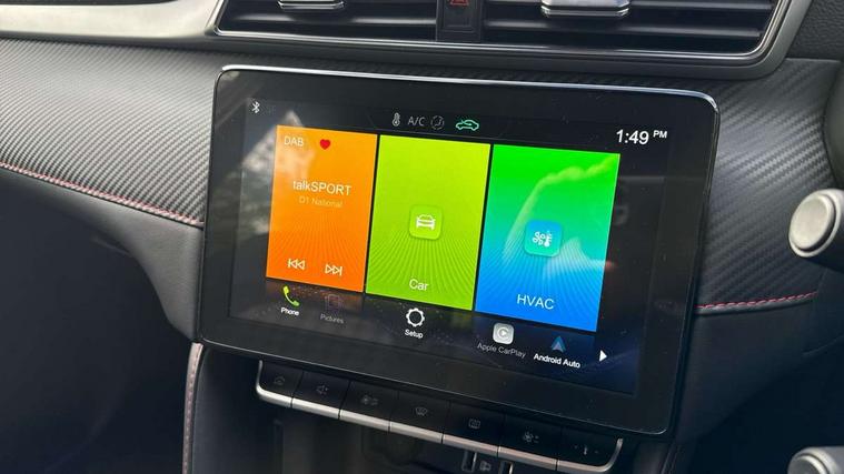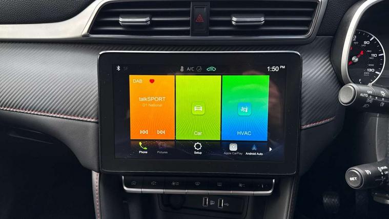 'Lights On' Reminder warning buzzer, 10.1" colour touchscreen, Android Auto, Apple CarPlay, Bluetooth connectivity, Cruise control with speed limiter, eCall emergency call system, PAS, Rear parking sensors, Trip computer, USB mobile phone charging function, 4 speaker audio system, DAB audio, Radio/MP3 player, USB/aux input socket, Auto headlights, Body colour bumpers, Body colour door handles, Body colour electric adjustable folding heated door mirrors, Chrome side window trim, Follow me home headlights, Front and rear aero wiper, Front and rear electric windows with driver's one-touch up/down, LED Bi-Function headlights, LED centre brake light, LED daytime running lights, Rear side wing doors, Rear spoiler, Rear wiper, Silver roof rails, 12V power sockets, 2nd row 60/40 split/fold, 3 rear headrests, 3 seat bench in 2nd row, 4 way manually adjustable passenger seat, 6-way manually adjustable driver's seat, Adjustable dual height boot floor, Air conditioning, Boot light, Driver's footrest, Front cupholders x 2, Front grab handles, Front headrests, Front reading lights, Front seat back map pockets, Glovebox, Houndstooth fabric upholstery, Illuminated switches and controls, Internal chrome door handles, ISOFIX restraints on outer rear seats x2, Leather steering wheel, Rake/reach adjustable steering wheel, Rear grab handle, Single front passenger seat, 3x3 point rear seatbelts, ABS/EBD, Anti rolling protection, Automatic unlocking of doors in case of impact, Dual front airbags, EBA, ESP, Front passenger airbag deactivation switch, Front seatbelts (3-point + pretensioner + load limiter), Front side airbags, Fuel cut off safety device, Hill launch assist, Rear door child safety locks, Rear passenger seatbelt alert, Seatbelt reminder for driver and front passenger, Side curtain airbags, Tyre pressure monitoring system, Alarm system and engine immobiliser, Automatic latching door, Remote central locking, Second remote key, Speed sensing door locks, Superlocking, 17" Typhoon diamond cut alloy wheels, Tyre repair kit,
