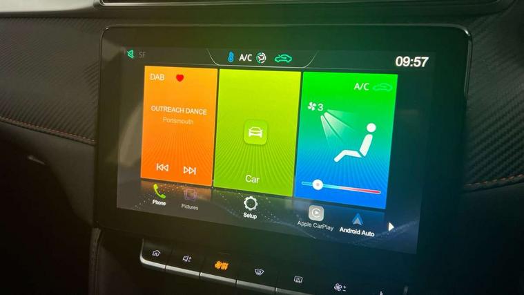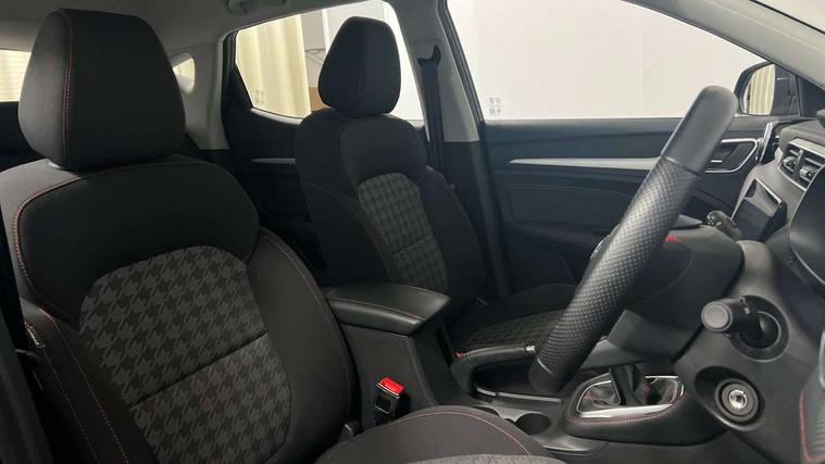 'Lights On' Reminder warning buzzer, 10.1" colour touchscreen, Android Auto, Apple CarPlay, Bluetooth connectivity, Cruise control with speed limiter, eCall emergency call system, PAS, Rear parking sensors, Trip computer, USB mobile phone charging function, 4 speaker audio system, DAB audio, Radio/MP3 player, USB/aux input socket, Auto headlights, Body colour bumpers, Body colour door handles, Body colour electric adjustable folding heated door mirrors, Chrome side window trim, Follow me home headlights, Front and rear aero wiper, Front and rear electric windows with driver's one-touch up/down, LED Bi-Function headlights, LED centre brake light, LED daytime running lights, Rear side wing doors, Rear spoiler, Rear wiper, Silver roof rails, 12V power sockets, 2nd row 60/40 split/fold, 3 rear headrests, 3 seat bench in 2nd row, 4 way manually adjustable passenger seat, 6-way manually adjustable driver's seat, Adjustable dual height boot floor, Air conditioning, Boot light, Driver's footrest, Front cupholders x 2, Front grab handles, Front headrests, Front reading lights, Front seat back map pockets, Glovebox, Houndstooth fabric upholstery, Illuminated switches and controls, Internal chrome door handles, ISOFIX restraints on outer rear seats x2, Leather steering wheel, Rake/reach adjustable steering wheel, Rear grab handle, Single front passenger seat, 3x3 point rear seatbelts, ABS/EBD, Anti rolling protection, Automatic unlocking of doors in case of impact, Dual front airbags, EBA, ESP, Front passenger airbag deactivation switch, Front seatbelts (3-point + pretensioner + load limiter), Front side airbags, Fuel cut off safety device, Hill launch assist, Rear door child safety locks, Rear passenger seatbelt alert, Seatbelt reminder for driver and front passenger, Side curtain airbags, Tyre pressure monitoring system, Alarm system and engine immobiliser, Automatic latching door, Remote central locking, Second remote key, Speed sensing door locks, Superlocking, 17" Typhoon diamond cut alloy wheels, Tyre repair kit,