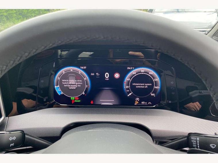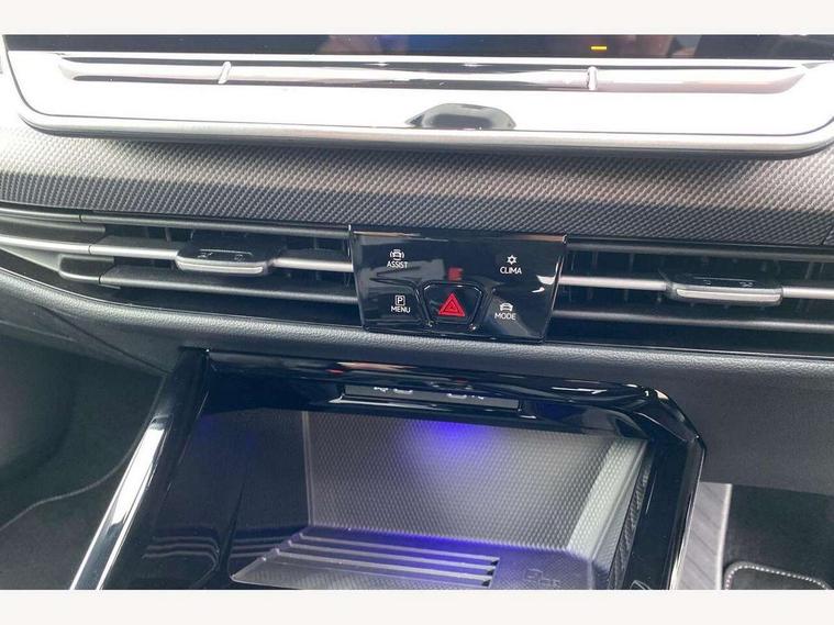 Activated carbon canister, Adaptive cruise control (ACC), Advanced driver attention and drowsiness monitor, Dynamic road sign display, Dynamic steering, E-Sim card for online connectivity, eCall emergency call system, Multi-color Digital cockpit pro, selection of different info profile possible, Multifunction front facing camera for distance control, Navigation system, Oncoming vehicle braking when turning including swerve support, Preparation for light assist system, Speed limiter, Speedo, rev counter, electronic odometer, trip, service interval display, exterior temperature and fuel gauge, Traffic jam assist, Voice enhancer and voice control, Warning signal and warning light for front and rear seatbelts not fastened, We connect plus preparation, We connect preparation, Wireless app connect, Hybrid propulsion system, Petrol Particulate Filter, Start-stop system with battery regeneration (recuperation - energy recovery during braking), XDS electronic differential lock for improved traction and handling, 2 USB C ports in front, 2 USB charging sockets on the centre console in the rear charging capacity upto 45W, Comfort telephony + wireless charging, without wireless aerial connection, Digital radio reception (DAB), Diversity antenna for FM reception, Gaming platform via car app, Infotainment system with 12.9" display, Mobile phone interface with inductive charging feature, 3rd brake light, Auto headlights, Automatic headlamp activation with Coming home and Leaving home feature, Body colored bumpers in R-Line style, Body colour door handles, Exterior ambient lighting with illuminated door handles, Exterior mirrors convex on the left and aspherical on the right, Front and rear electric windows, Heat insulating windshield made of laminated glass, LED daytime running lights, Rear exhaust tailpipe, Rear fog light on one side and reversing lights on both sides, Rear side wing doors, Rear windscreen washer and wiper with interval delay, Remote electrically foldable door mirrors, puddle lights and reverse activated passenger's door mirror, Welcome light with surround lighting, 12V socket in front centre console, 12V socket in luggage compartment, 3 rear head restraints, 3 seat bench in 2nd row, Ambient lighting with 30 colour incl. LED light unit in front footwell with selectable light colour, Brushed stainless steel pedals, Carpet mats, front and rear, Chrome plated radiator grille inserts, air vent surrounds and light switch surrounds, Door insert, side trim panel and arm support in leatherette, Front centre armrest, Front seat lumbar support adjuster, Integrated front head restraints, ISOFIX anchors for child seats on outer rear bench seats and on front passanger seat compatible for i-Size, Luggage compartment lighting, Manual height adjustable front seats, Plastic gear knob, Premium sports seats in front, Rear cupholder and loadthough, Sardegna cloth upholstery with front and outer rear seats Art Velour inner sides of bolsters, Single front passenger seat, Soul black instrument panel, Split folding backrest with centre armrest and unsplit rear seat bench, Storm grey roof lining, Sun visors with illuminated vanity mirrors, 3 point height adj front seatbelts + pretensioners, 3 rear three point seatbelts, ABS, Autonomous emergency braking front assist with pedestrian and cyclist monitoring, Child locks on rear doors, Driver and front passenger airbag with front passenger airbag deactivation, Electronic parking brake with auto hold, ESC (Electronic Stability Control), Extended pedestrian protection measures, Hill start assist, Rear disc brakes, Two tone horn, Tyre pressure loss indicator, Volkswagen roadside assistance, Anti theft wheel bolts, Preparation for alcohol interlock, Decorative inserts carbon grey for dashboard and front door trim panels, Tool kit for tyre mobility set, Tyre mobility kit Includes 12V compressor and tyre sealant,