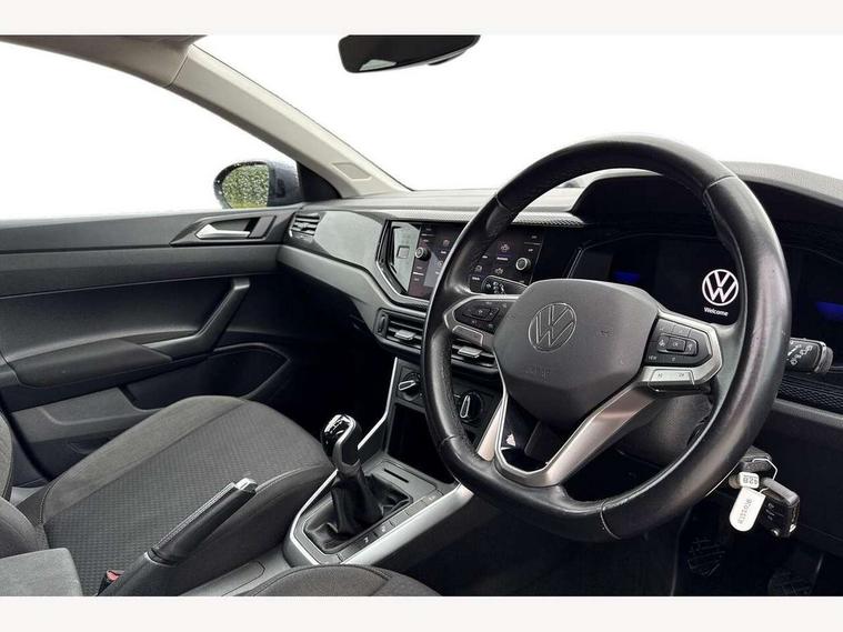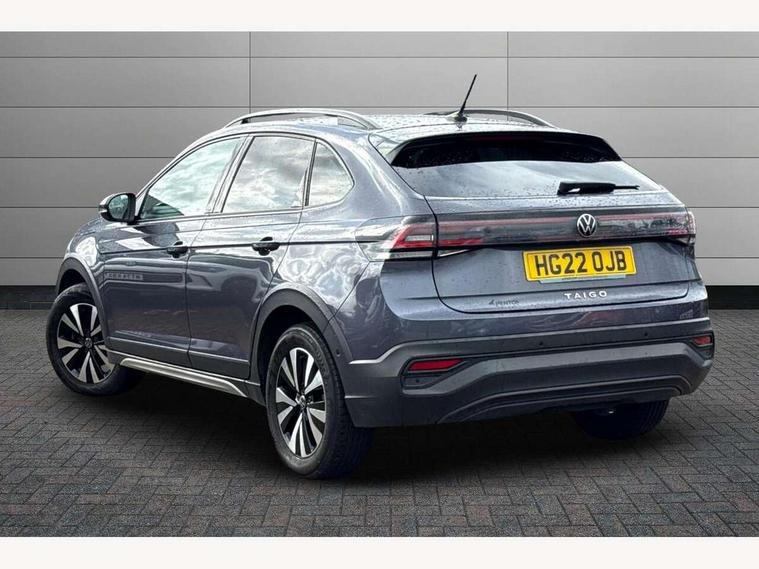 App-Connect including App-Connect Wireless, Driver alert system, e-Call (emergency call), Power Steering, Travel assist including emergency assist, Washer fluid level indicator, Wireless Charging including Bluetooth, Start-stop system with battery regeneration (recuperation - energy recovery during braking), Digital radio reception (DAB+), Diversity antenna for FM reception, WeConnect plus, Ambient lighting with logo projection, Aspherical driver's exterior mirror, Auto headlights, Body coloured bumpers, Body coloured exterior mirror housings and door handles, Electric windows, External USB type C socket and charging sockets, Front fog lamps with cornering function, Headlight range control, Heat insulating glass windscreen, LED headlamps, LED rear combination lamp, LED third brake light, Left convex exterior mirror, Power folding adjustable/heated exterior mirrors and front passenger exterior mirror lowering function, Rear fog light on one side, reversing light on both sides, Rear side wing doors, Rear wash/wipe with intermittent wipe setting, 'Slash/ Austin' Cloth upholstery, 12V socket in centre console, 2 front reading lights, 3 rear head restraints, 3 seat bench in 2nd row, Black carpets, Child seat anchor for child seat system i-Size, 2x top tether and child seat anchor in front on front passenger side, Door and side trim panels in titan black, Driver and front passenger seat height adjustment, Front centre armrest, Handbrake lever handle in leather, Height and reach adjustable steering wheel, Leather trimmed gear knob, Leather wrapped multifunction steering wheel, Luggage compartment floor, Luggage compartment light, Lumbar support for driver's and front passengers seat, Seat covers in titanium black, Single front passenger seat, Split folding backrest with centre armrest and unsplit rear seat bench, Storage compartment under front seats, Sun visors with illuminated vanity mirrors, Chrome Package - Taigo, Drivers assistance pack - Taigo, Light and Sight pack including High beam assist - Taigo, 2 x 3-point seatbelts/outer rear seats with ECE label, 3-point seat belts in front with pretensioner and height adjustment, 3-point seatbelt for centre rear seat, Driver and front passenger airbags with front passenger airbag de-activation, front side and curtain airbags, Driver and front passenger safety-optimised head restraints, Electronic stability control, Extended and predictive pedestrian/ cyclist protection, Front and rear disc brakes, Front curtain and side airbags with center airbag, Hill start assist, Manual rear child locks, Single tone horn, Tyre pressure loss indicator, Anti-theft alarm system with interior monitoring, backup horn, and towing protection, Anti-theft wheel bolts, Lava stone black gloss/matt decorative inserts in dash and front door panels, Low rolling resistance tyres,