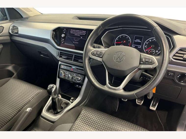 'Lights On' Reminder warning buzzer, Adaptive cruise control including front assist, forward collision warning, autonomous emergency braking, speed limiter, Blind spot monitoring, Bluetooth telephone and audio connection for compatible devices, Car information display, Driver alert system, eCall emergency call system, Lane assist, Low washer fluid warning light, Multifunction computer with visual gear change recommendation for fuel consumption, Operating permit alteration, Power assisted speed sensitive steering, Speedo, rev counter, electronic odometer, trip, service interval display, exterior temperature and fuel gauge, Stop/start system, Warning sound and light for doors and tailgate open, Warning sound and light for front seatbelts unfastened, We Connect Go Dongle, Wireless Car net app connect with Apple CarPlay, combined functionality of Apple CarPlay/Android Auto and MirrorLink, Battery regeneration during braking, Misfuel prevention device, 2x USB connection with USB charging sockets and in rear centre console, DAB Digital radio receiver, Diversity antenna for FM reception, Multi device interface (MDI) with USB connection, Music playback - MP3, WMA and AAC files, Premium USB cable for Apple or Android smartphone compatibility, Simultaneous pairing of 2 compatible mobile devices, Title and cover art display, 3D active badge on B-pillar, Active door sills, Active sill panel trims, Automatic hazard lights activation under emergency braking, Black roof rails, Body colour door handles, Body coloured bumpers, Dusk sensor + automatic driving lights, Electrically foldable, adjustable and heated door mirrors with reverse activated kerb view adjustment on passenger's side, Front and rear electric windows, Front fog lights with static cornering function, Galvanised body, Heated rear window, High level 3rd brake light, Lower door sills and door pillars in black, Radiator grille with high gloss surface and chrome strip, Rear fog light on one side, reversing light on both sides, Rear lights incorporating LED technology, Rear tinted glass 65% approx light absorbing from B pillar backwards, Rear window aerial, Rear windscreen washer and wiper with interval delay, Reflectors in all doors, Tailgate with integrated roof spoiler, Windscreen wipers/ intermittent wipe + 4 position delay, 12V Accessory socket in centre console, 3 rear head restraints and 3 rear three point seat belts with ECE label, 60/40 split folding rear seat backrest, Ambient lighting and sourround lighting, Brushed stainless steel pedals, Drawer under drivers seat, Driver and front passenger sunvisor with vanity mirror, Driver's sunvisor with ticket holder, Dust and pollen filter, Front + rear carpet mats, Front and rear reading lights X 2, Front centre armrest with storage compartment, Front seat back storage pockets, Front seats with adj lumbar support, Glovebox, Heating and fresh air system with 4 stage blower, Height/reach adjust steering wheel, Instrument lighting white adjustable panel illumination, Interior light with delay, Isofix child seat preparation for 2 rear child seats, Luggage compartment cover, Luggage compartment lighting, Moveable and foldable Rear bench seat, Storage compartment in drivers and front passengers door, Three spoke multi-function leather trimmed steering wheel and gearknob, Trapeze cloth upholstery, Variable boot floor, Winter pack - T-cross, Anti-lock Braking System (ABS) with Hydraulic Brake Assist (HBA), Automatic post collision braking system, Driver and front passenger safety-optimised head restraints, Drivers and Front Passengers airbags with front passengers airbag deactivation switch, ESC with EDL, ASR, EDTC and trailer stabilisation function, Extended and proactive pedestrian protection, Front and rear curtain airbags, Front disc brakes and rear drum brakes, Front seat side impact airbags, Height adjustable 3 point automatic front seatbelts with pretensioners, Hill start assist, Pre crash preventive occupant protection, Rigid safety cell with front and rear crumple zones, Single torn horn, Tyre pressure loss indicator, Volkswagen roadside assistance, Alarm with interior protection and deactivation via infotainment system, Child security locks in rear doors, Electronic engine immobiliser, Remote tailgate unlocking using key fob, Decorative strips in doors in matt silver/ center console, 17" Clayton alloy wheels + anti theft wheel bolts, Breakdown kit,