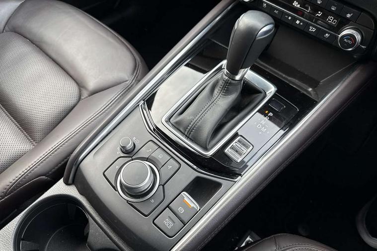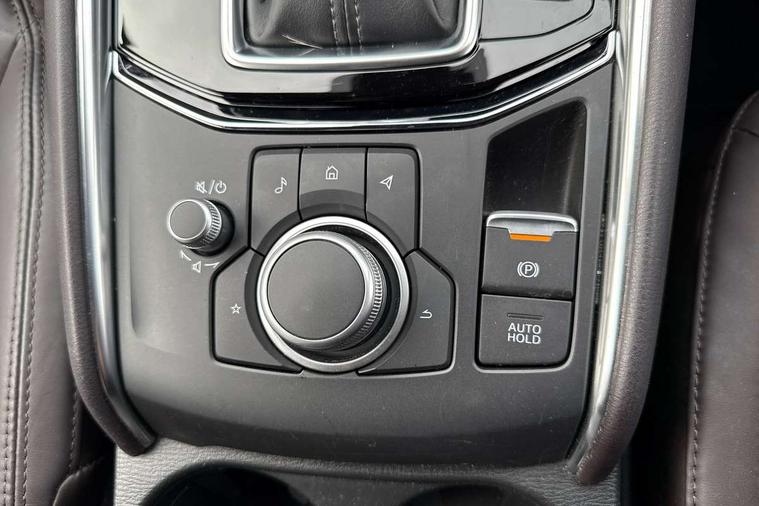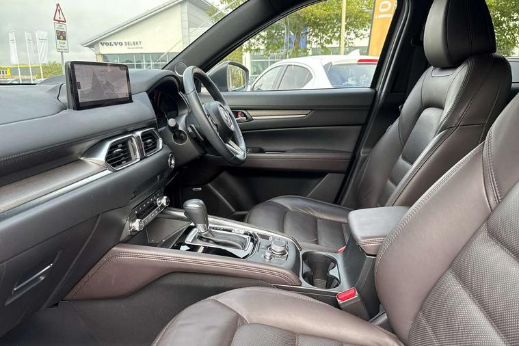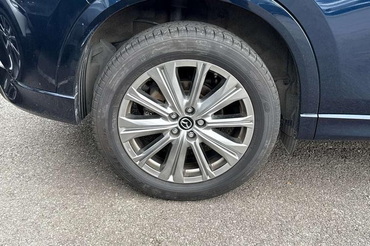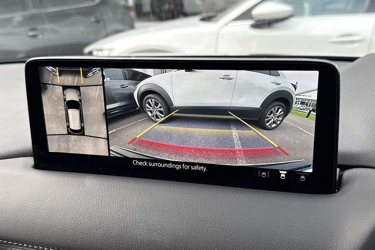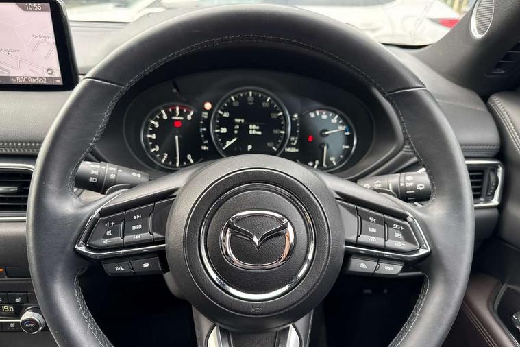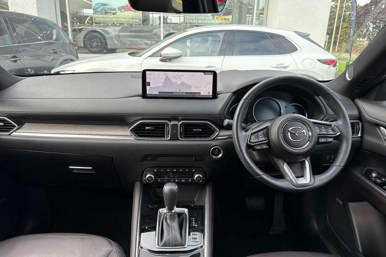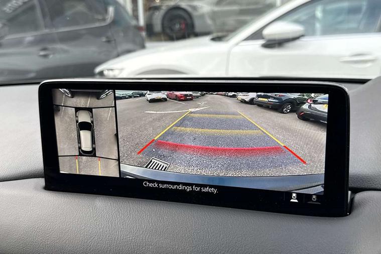 10.25" display with Mazda Connect infotainment, 360 degree surround camera, 7" colour TFT display, Advanced blind spot monitoring, Bluetooth connectivity with voice control, Collision prevention assist, Connected services, Cruising Traffic Support, Drive mode selector, Driver attention alert system, Electric power steering, Emergency stop signalling system, Engine start/stop button, Forward collision warning, Front and rear parking sensors, Integrated navigation system, Intelligent speed assist, Lane departure warning system, Lane keep assist, Off road modes, Power liftgate, Qi wireless phone charging, Radar cruise control with Stop and Go, Rear cross traffic alert, Service indicator, Traffic sign recognition (TSR), Trip computer, Windscreen projected colour active driving display (HUD) with memory, Wireless apple car play/android Auto, Cylinder Deactivation, I-ELOOP, i-stop, AM/FM radio, Bluetooth audio streaming, Bose premium sound system with 10 speakers, DAB Digital radio, Multimedia Commander including separate volume dial, Steering wheel mounted audio controls, Adaptive LED Headlights, Automatic headlights, Body colour door mirrors, Body colour roof spoiler, Body coloured front and rear lower bumper mouldings, Body coloured tire arch and side mouldings, Coming/leaving home lighting function, Door mirror integrated indicators, Dual large chrome tailpipes, Dusk sensitive headlamps, Electric front/rear windows with one touch auto up/down, Frameless auto dimming interior rear view mirror, Front grille in gloss black finish, Front grille in gloss black with black accent + chrome signature wing, Gloss black B and C pillars garnish, Gloss black front grille accent, Intermittent rear wash/wipe, LED auto levelling, LED daytime running lights, LED front fog lights, LED third brake light, Power folding and heated door mirrors, Power tilt/slide sunroof, Privacy glass (rear side windows only), Rain sensing front wipers, Real wood inlay dashboard panel, Rear side wing doors, Scuff plates, Shark fin antenna, Signature LED rear combination lights, Variable intermittent front wash/wipe, Vinyl with real wood inlay door trim panel, Windscreen wiper de-icer, 12v electrical power outlet, 3 seat bench in 2nd row, 3 stage heated front seats, 40:20:40 Karakuri fold-flat seat system, 6 way electric adjustable passenger seat, 8 way electric driver seat with lumbar support + memory, Black roof lining, Cargo room flat floor board with waterproof undertray, Driver seat power slide, recline and height adjustment, Driver, Front passenger and two rear grab handles with coat hooks, Driver/passenger front seatback pockets, Driver/passenger sunvisors + illuminated vanity mirrors (drivers with ticket holder), Dual zone climate control, Folding centre armrest with 2 cup holders, Front and rear door pockets, Front centre storage with two cupholders, Front passenger seat power slide, recline and height adjustment, Front seat ventilation, Heated outer rear seats, Heated steering wheel, Humidity sensor, Illuminated glovebox, Interior dome light with integral spotlight, ISOFIX child seat anchorage points attached on outer rear seats, Karakuri tonneau cover, Leather gear knob, Leather steering wheel with unique stitching and chrome centre bezel, Luggage compartment LED lighting, Luggage compartment power outlet, Nappa leather upholstery, Paddle shifts, Rear air vents, Rear headrests, Rear seat recline, Roof mounted sunglasses holder, Single front passenger seat, Three height adjustable head restraints, Tilt/height adjustable steering wheel, USB Connectivity (2x front Type-C, 2x rear Type-B), White interior LED illumination lighting, 3 point front seatbelts with pre-tensioners, 3 rear 3 point seatbelts, ABS, Advanced Smart City Brake Support - SCBS, Child locks on rear doors, Driver and front passenger side airbags, DSTC-Dynamic Stability and Traction Control, Dual front airbags, Electronic brake force distribution, Electronic parking brake with auto hold, ESP, Front and rear curtain airbags, Front passenger airbag deactivation, G-Vectoring control, Hill hold assist, Rear smart city brake support, Seatbelt reminder front and rear, Single stage passenger airbags, Smart brake support with forward obstruction warning, Tyre pressure monitoring system, Automatic door locking when moving off, Deadlock, Immobiliser, Power door locks, Remote central locking, Smart keyless entry, Thatcham Cat.1 alarm, Upper dashboard and door cards wood trim, 19" exclusive design bright alloy wheels, Tyre repair kit,