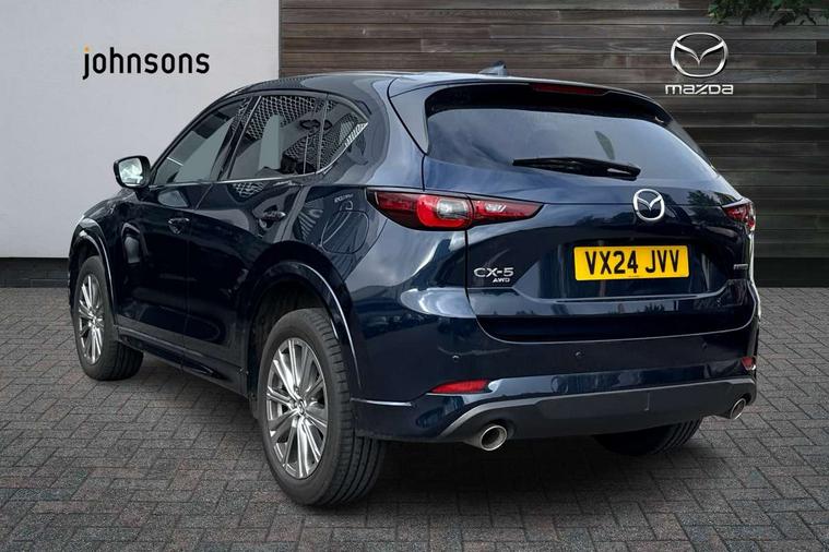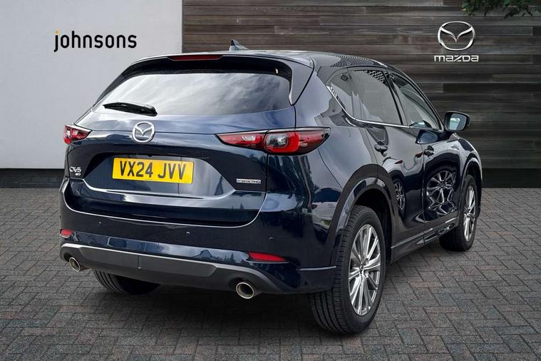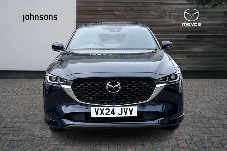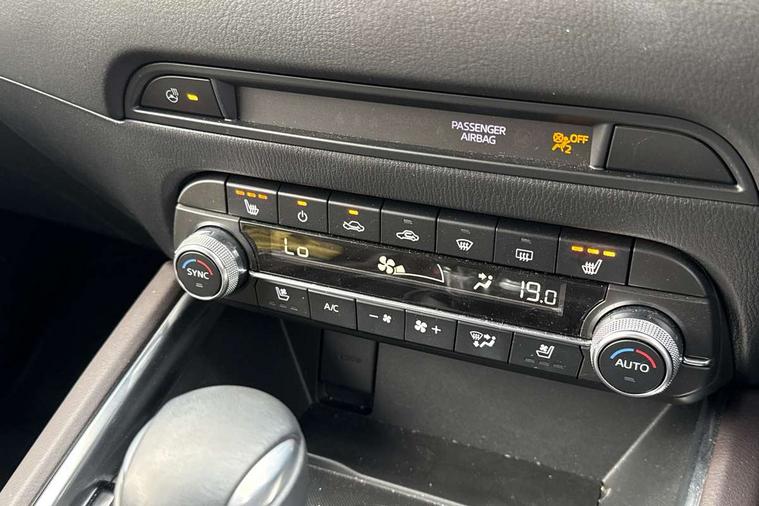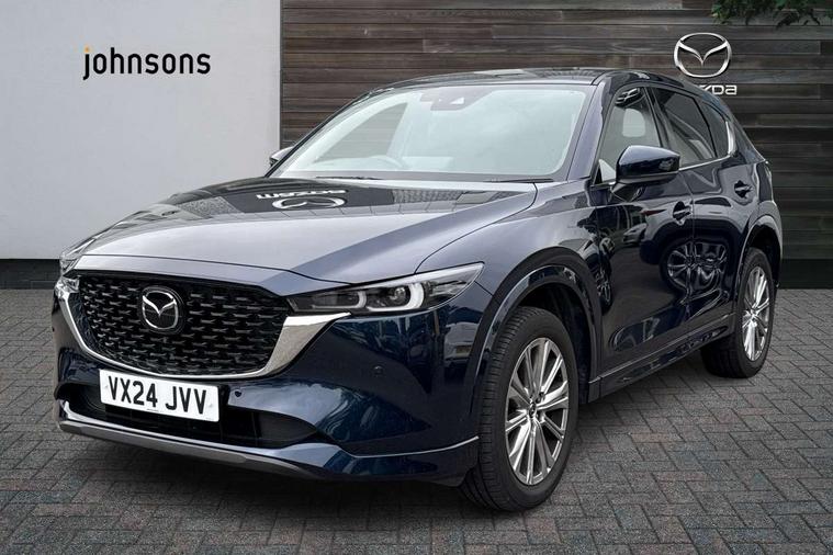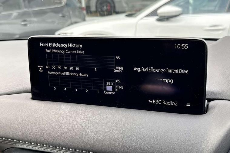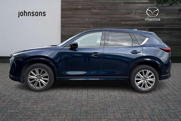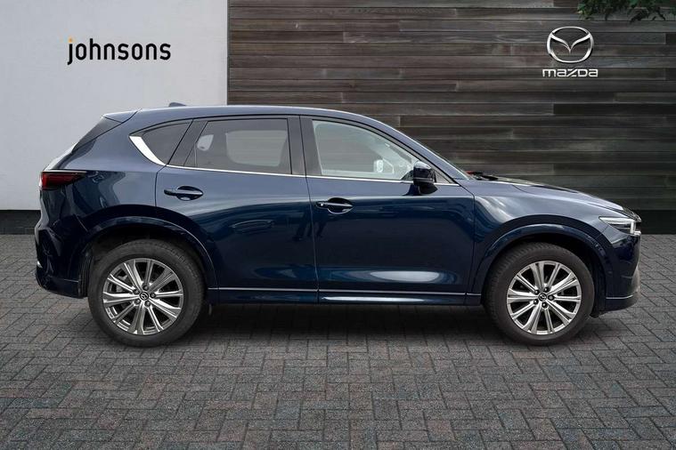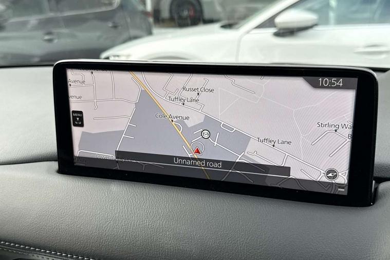 10.25" display with Mazda Connect infotainment, 360 degree surround camera, 7" colour TFT display, Advanced blind spot monitoring, Bluetooth connectivity with voice control, Collision prevention assist, Connected services, Cruising Traffic Support, Drive mode selector, Driver attention alert system, Electric power steering, Emergency stop signalling system, Engine start/stop button, Forward collision warning, Front and rear parking sensors, Integrated navigation system, Intelligent speed assist, Lane departure warning system, Lane keep assist, Off road modes, Power liftgate, Qi wireless phone charging, Radar cruise control with Stop and Go, Rear cross traffic alert, Service indicator, Traffic sign recognition (TSR), Trip computer, Windscreen projected colour active driving display (HUD) with memory, Wireless apple car play/android Auto, Cylinder Deactivation, I-ELOOP, i-stop, AM/FM radio, Bluetooth audio streaming, Bose premium sound system with 10 speakers, DAB Digital radio, Multimedia Commander including separate volume dial, Steering wheel mounted audio controls, Adaptive LED Headlights, Automatic headlights, Body colour door mirrors, Body colour roof spoiler, Body coloured front and rear lower bumper mouldings, Body coloured tire arch and side mouldings, Coming/leaving home lighting function, Door mirror integrated indicators, Dual large chrome tailpipes, Dusk sensitive headlamps, Electric front/rear windows with one touch auto up/down, Frameless auto dimming interior rear view mirror, Front grille in gloss black finish, Front grille in gloss black with black accent + chrome signature wing, Gloss black B and C pillars garnish, Gloss black front grille accent, Intermittent rear wash/wipe, LED auto levelling, LED daytime running lights, LED front fog lights, LED third brake light, Power folding and heated door mirrors, Power tilt/slide sunroof, Privacy glass (rear side windows only), Rain sensing front wipers, Real wood inlay dashboard panel, Rear side wing doors, Scuff plates, Shark fin antenna, Signature LED rear combination lights, Variable intermittent front wash/wipe, Vinyl with real wood inlay door trim panel, Windscreen wiper de-icer, 12v electrical power outlet, 3 seat bench in 2nd row, 3 stage heated front seats, 40:20:40 Karakuri fold-flat seat system, 6 way electric adjustable passenger seat, 8 way electric driver seat with lumbar support + memory, Black roof lining, Cargo room flat floor board with waterproof undertray, Driver seat power slide, recline and height adjustment, Driver, Front passenger and two rear grab handles with coat hooks, Driver/passenger front seatback pockets, Driver/passenger sunvisors + illuminated vanity mirrors (drivers with ticket holder), Dual zone climate control, Folding centre armrest with 2 cup holders, Front and rear door pockets, Front centre storage with two cupholders, Front passenger seat power slide, recline and height adjustment, Front seat ventilation, Heated outer rear seats, Heated steering wheel, Humidity sensor, Illuminated glovebox, Interior dome light with integral spotlight, ISOFIX child seat anchorage points attached on outer rear seats, Karakuri tonneau cover, Leather gear knob, Leather steering wheel with unique stitching and chrome centre bezel, Luggage compartment LED lighting, Luggage compartment power outlet, Nappa leather upholstery, Paddle shifts, Rear air vents, Rear headrests, Rear seat recline, Roof mounted sunglasses holder, Single front passenger seat, Three height adjustable head restraints, Tilt/height adjustable steering wheel, USB Connectivity (2x front Type-C, 2x rear Type-B), White interior LED illumination lighting, 3 point front seatbelts with pre-tensioners, 3 rear 3 point seatbelts, ABS, Advanced Smart City Brake Support - SCBS, Child locks on rear doors, Driver and front passenger side airbags, DSTC-Dynamic Stability and Traction Control, Dual front airbags, Electronic brake force distribution, Electronic parking brake with auto hold, ESP, Front and rear curtain airbags, Front passenger airbag deactivation, G-Vectoring control, Hill hold assist, Rear smart city brake support, Seatbelt reminder front and rear, Single stage passenger airbags, Smart brake support with forward obstruction warning, Tyre pressure monitoring system, Automatic door locking when moving off, Deadlock, Immobiliser, Power door locks, Remote central locking, Smart keyless entry, Thatcham Cat.1 alarm, Upper dashboard and door cards wood trim, 19" exclusive design bright alloy wheels, Tyre repair kit,