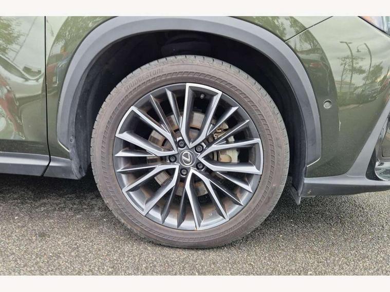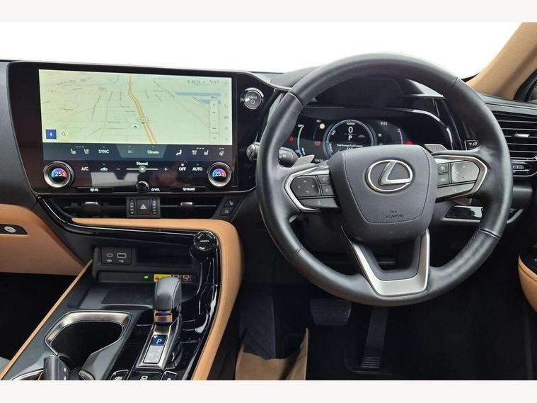 360 degree panoramic view monitor, 4 driving modes EV/Eco/Normal/Sport, 7" display in instrument binnacle, Blind spot monitoring with rear cross traffic alert, Bluetooth telephone connectivity, eCall emergency system, Electric speed sensitive power steering, Extended lexus safety+ system includes front cross traffic alert and lane change assist, Fully automated parking, Head up Display, Intelligent parking sensors - 4 front and 4 rear, Lane change flasher function, Lexus link connect - Cloud based navigation, cloud based voice assistant, always online, 14" HD touchscreen, embedded nav and faster CPU, Push button starter, Reversing camera with back guidelines, Service interval indicator, Tailgate, Tazuna cockpit with 7" improved meters display, 10" HUD and capacitive touch steering wheel switches, Wireless Apple CarPlay and wired Android Auto, Wireless Smartphone charger, 6.6 kW onboard charger, All Wheel Drive (AWD), Hybrid automatic transmission, Vehicle Dynamics Integrated Management (VDIM), Vehicle Stability Control (VSC), 4 USB ports - 2 front, one USB C, 2 rear USB C, DAB Digital radio, 4 eye LED headlight with adaptive high beam, Automatic headlights, Digital rear view mirror, Double hidden exhaust pipes, Electric sunroof, Front and rear one touch power windows, with anti-jam protection, Headlight cleaners, Heated, auto-folding, auto-dimming outside mirrors with reverse tilt function and turn indicators, Illuminated door handles with puddle light, LED brake lights and rear lights with emergency brake signal, LED cornering lights, LED daytime running lights, LED front fog lights, LED Indicators, Power back door with kick sensor, Privacy glass, rear doors and tailgate, Rain sensor windscreen wipers, Rear side wing doors, Rear wiper, 12V accessory port centre console and luggage compartment, 2 cupholders in front centre console, 2 x fixed shopping bag hooks in boot, 2 x sun visors with vanity mirror and lamp, 3 seat bench in 2nd row, 4 way electrical lumbar adjustment for driver, 4 x tie down hooks in the boot, 60/40 split folding rear seat, 8 way driver/passenger electrically adjustable front seats, Adjustable rear seat backrest, Card holder installed in driver and passengers sun visors, Centre armrest with storage box, Door courtesy lights, Driver seat memory function, Dual zone climate control air conditioning system with humidity sensor, Front and rear head restraints, Front and rear textile carpet mats, Front passenger seat, Heated and ventilated front seats, Heated rear seats, Heated steering wheel, Leather gear lever, LED ambient lighting, LED interior illumination, Power adjustable leather steering wheel with paddle shifts, Rear centre armrest with 2 cupholders, Smooth leather upholstery, Whiplash Injury Lessening (WIL) feature (active headrest) for seats, 2 x Isofix child rear seat restraints, 3 point ELR front seatbelts with pretensioners, 3x3 point rear seat belts, ABS, Adjustable seat belt anchor points, Driver and front passenger 2 stage airbag, Driver/front passenger side airbags, Drivers knee airbag, E-Latch with safe exit assist, EBD + Brake Assist, ECB (Electronically Controlled Brake System), Electronic parking brake, Front and rear curtain shield airbags, Front center airbag, Front passenger seat cushion airbag, Hill assist control, Lexus safety system - dynamic radar cruise control, pre collision system day and night, lane tracing assist, road sign, OTA, Manual rear child locks, Passenger airbag cut-off device, Traction control, Tyre pressure warning, Anti-theft system with alarm, intrusion sensor, glass breakage sensor, tilt sensor and engine immobiliser, Locking wheel nuts, Smart card key, Smart keyless entry, Speed sensitive auto door locking, Two motion door lock with double lock, Ultra Wide Band (UWB) Anti-theft system, VIN Window etching, Organic inlay, Sumi blackwood inlay,