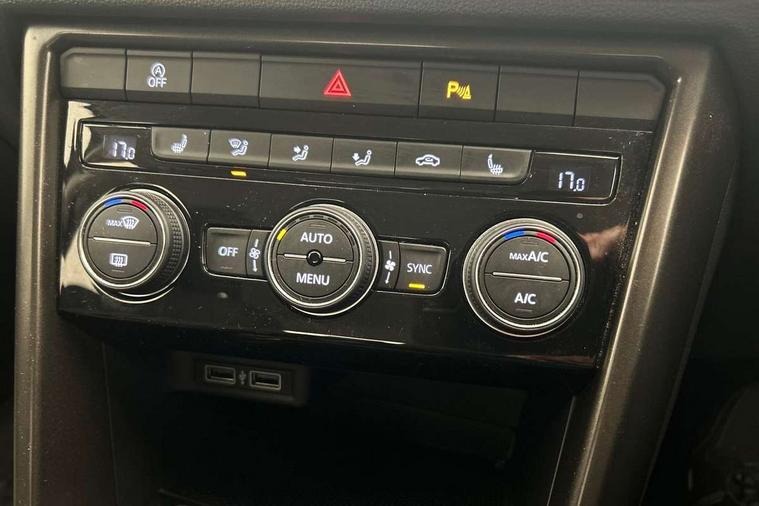 2 USB connection charging sockets, Adaptive cruise control, App-Connect, Automatic start/stop system, Bluetooth telephone and audio connection for compatible devices, Car information display, Driver tips and journey analysis, Front assist, radar sensor controlled distance monitor, city emergency braking + predictive pedestrian protection, Lane assist, Multifunction computer with visual gear change recommendation for fuel consumption, Power assisted speed sensitive steering, Service interval indicator, Think blue trainer driver tips and journey analysis, Warning sound and light for doors and tailgate open, Warning sound and light for front and rear seat belts if unfastened, Warning sound and light for front seatbelts unfastened, We Connect Go Dongle, Battery regeneration during braking, Bluetooth - Simultaneous pairing of 2 compatible mobile devices, DAB Digital radio, Front USB type C Interface 2X and USB charging socket, Multi device interface (MDI) with USB connection, Music playback - MP3, WMA and AAC files, Premium USB cable in choice of either Apple or Android smartphone compatibility, SD card slot, SMS functionality - read, compose and send SMS messages using touch-screen display, Title and cover art display, Auto dimming interior rear view mirror, Automatic hazard lights activation under emergency braking, Black grained lower door protectors, Black grained wheel arches, Body colour bumpers with silver metallic underbody fascia, Body colour door handles, Chrome trim on upper and lower radiator grille, Door mirror integrated indicators, Dusk sensor, Electrically foldable, adjustable and heated door mirrors with puddle lights and reverse activated kerb-view adjustment on passenger's door mirror, Front and rear electric windows, Front windscreen wiper with intermittent wipe and 4 position delay, Fully galvanised body, Heated rear window, High level 3rd brake light, LED rear number plate lights, Manual coming/automatic leaving home lighting function, Rain sensor, Rear windscreen washer and wiper with interval delay, Windscreen wiper with intermittent wipe light, 12V socket in centre console storage area, 2 front reading lights, 3 rear head restraints, 4 load lashing points in luggage compartment, Climate control - 2 zone electronic air conditioning with automatic air recirculation and allergy filter, Drawer under drivers seat, Front centre armrest with storage compartment, longitudinal and height adjustable and two rear air vents, Front cupholders x 2, Front seat back storage pockets, Glovebox, Height adjustable front seats, Height/reach adjust steering wheel, Illuminated vanity mirrors, Illuminated vanity mirrors in sun visors with air bag label on sun visor and b-pillar, Instrument lighting, white adjustable panel illumination, Interior light delay, Isofix easy fit child seat preparation for 2 outer rear seats, Load through provision with single cup holder when folded down, Luggage compartment cover, removable, Luggage compartment lighting, Split folding rear seat backrests with centre armrest, Storage compartment in left and right luggage area, Storage compartment in rear doors, Storage compartments in driver and front passenger doors, 3 rear three point seatbelts, ABS, Driver and front passenger safety-optimised head restraints, Electronic parking brake with auto hold, Electronic stability control (ESC) includes ASR, EDL, EDTC and trailer stabilisation function, ESC with EDL, ASR, EDTC and trailer stabilisation function, Front and rear curtain airbags, driver and front passenger airbags with passenger deactivation switch and front side impact airbags, Rigid safety cell with front and rear crumple zones, Three point height adjust front seatbelts + pretensioners, Tyre pressure loss indicator, Ventilated front and rear disc brakes, Volkswagen roadside assistance, Alarm with remote central locking and interior protection, Electronic engine immobiliser, Remote central locking with 2 remote folding keys, Limestone grey decorative inserts in dash and door panel, Steel space saver spare wheel,