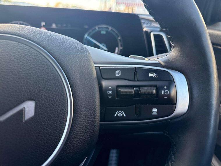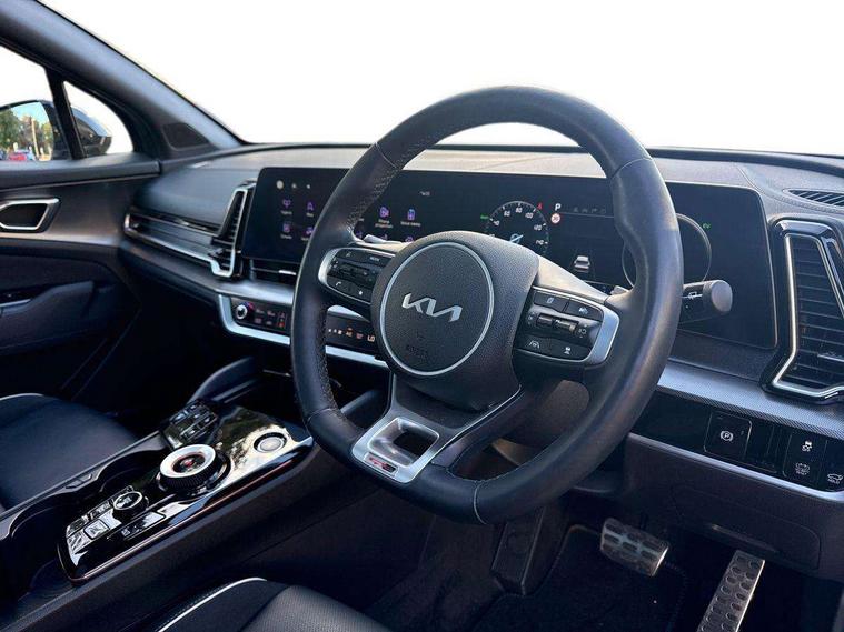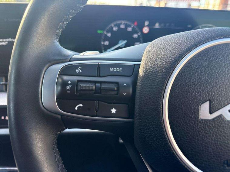 12.3" Display with navigation, 12.3" supervision colour cluster display, 360 degree around view monitor, Apple car play/Android Auto with voice control, Blind spot collision avoidance assist, Blind spot view monitor, Drive mode selector, E-call, Forward collision avoidance assist (FCA) - city/pedestrian/cyclist/junction covering, Front and rear parking sensors, Highway Driving Assist (HDA), Intelligent speed limit assist, Kia Connect (UVO), Lane Following Assist (LFA), Lane keep assist, Low washer fluid warning, Parking collision avoidance assist (PCA), Remote smart parking assist, Reversing camera system integrated into centre fascia screen, Smart cruise control with stop and go functionality, Smart power tailgate, Speed sensitive power steering, Trip computer, Windscreen washer level indicator, Wireless Smartphone charger, Intelligent Stop and Go, Bluetooth audio streaming, DAB Radio with MP3, Harman Kardon premium sound system, Rear USB port, Steering wheel mounted audio controls, USB C type charging ports on centre console, USB C type charging ports on side of front seats, USB port for connection of a media device, All round electric windows with drivers and front passenger auto up/down function, Automatic headlight control system, Automatic window defogger, Backlite glass heated with timer, Body colour and black bumper with silver accents, Body colour exterior door handles, Body colour radiator upper garnish and door garnish, Dual LED adaptive headlamps, Electric panoramic glass sunroof (Electric one touch with safety function), Electrically adjustable/heated/folding door mirrors with LED indicators, Front and rear chrome skid plates, Gloss black door mirrors, Gloss black radiator grille, Gloss black side sill and wheel arch body mouldings, Glossy black roof rack, High beam assist, Interior electrochromic mirror, LED daytime running lights, LED front fog lamps, LED High mounted stop light, LED rear combination lamp, Rain sensing wipers with aero blades, Rear fog lamp, Rear privacy glass, Rear side wing doors, Rear spoiler, Rear wiper, Satin finished beltline, Silver coloured inserts to bumpers, Tinted rear glass, Trailer stability assist, 10 way driver/8 way passenger electrically power adjustable seats, 12V power socket in front centre fascia and luggage compartment, 3 seat bench in 2nd row, 3 x passenger assist grips, 40/20/40 split folding rear seat, All-round height adjustable headrests, Ambient lighting, Black headlining, Centre console storage box, Cupholders in rear armrest, D-Shaped sports leather steering wheel and perforated inserts with GT-Line logo, Door courtesy lamps, Drink holder at centre armrest, Driver and front passenger side sunvisors with illuminated vanity mirrors, Driver seat memory function, Drivers seat power lumbar support, Front and rear door storage, Front seat and rear pockets, Front/rear centre armrests, Gear shift indicator, Glovebox illumination, Heated front and outer rear seats, Heated steering wheel, Interior door lock/unlock function, ISOFIX Child seat top tethers and anchor fixings outer rear seats, LED interior personal lamp, LED lighting in overhead console, Luggage area LED light, Luggage area load cover, Luggage net with hooks, Metal paint interior door handles, Paddle shift controls, Rear cabin light, Rear coat hooks, Single front passenger seat, Sports pedals, Suede leather upholstery, Three zone climate control, Tilt/telescopic adjustable steering wheel, Ventilated front seats, Ventilation ducts to rear compartment, Active front headrests, All round 3-point seatbelts, Anti-lock braking system (ABS), Dual front side airbags, Dual horn, Electronic parking brake, Electronic stability control with downhill brake control, Front passenger airbag cut-off switch, Front seatbelt pretensioners + load limiters, Height adjustable front seatbelts, Hill start assist control (HAC), Impact sensing auto door unlocking, Multi collision brake assist, Rear door child safety locks, Rear seat alert system, Traction control, Twin curtain airbags, Twin front airbags, Tyre pressure monitoring system, Advanced anti-theft system including immobiliser and alarm, Door deadlocks, Engine Start/Stop Button with Smart Entry System, Locking wheel nuts, Speed sensitive auto door locking, Visible vehicle identification number, Aluminium pattern finish centre fascia and door garnish, 18" GT-Line alloy wheels, Michelin tyres, Tyre mobility kit,