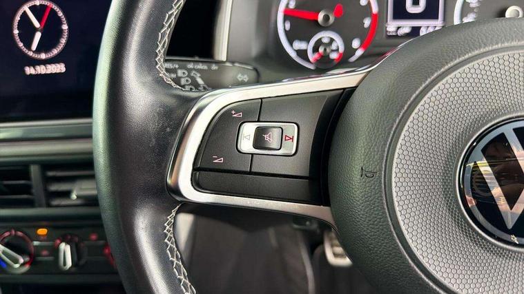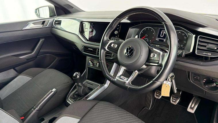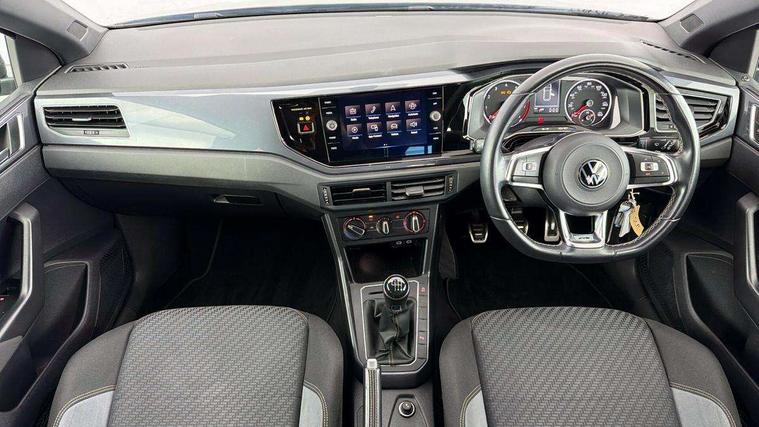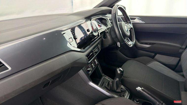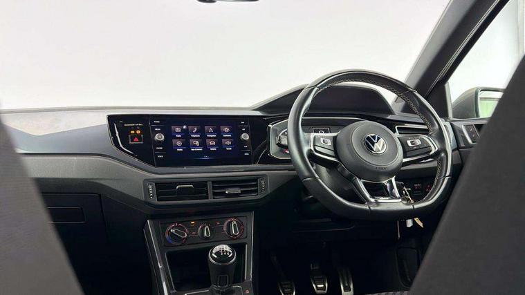Digital clock, Driver alert system, Emergency call service, Lights on warning, Multifunction computer plus, Power assisted speed sensitive steering, Speedo and rev counter, electronic odometer, trip, service interval display and fuel gauge, Start/stop system, Volkswagen connect, Warning buzzer and light for front seatbelts unfastened, Wireless app connect, Battery regeneration during braking, Galvanished body, Diversity antenna for FM reception, Front and rear 6 speakers, Black grille with chrome surround, Body colour door handles, Body coloured side sills, Chrome trimmed strip on lower bumper, Electric front windows, Electrically adjustable and heated door mirrors with reverse activated kerb view adjustment on passenger's side, Front windscreen washers and wipers with 4 speed intermittent delay, Heated rear window with auto timer, High level 3rd brake light, LED darkened rear light clusters, LED daytime running lights, LED rear number plate lights, Left and right chrome effect trapezoid fascia exhaust tailpipe surrounds, Rear diffuser, Rear electric windows, Rear windscreen washer and wiper with interval delay, reverse activated, Unique R Line badging, 2 bag hooks in luggage compartment, 2 front cupholders and 12 V socket with cover, 3 rear head restraints, 60/40 split folding rear seat, Ambient lighting in front foorwell, front/rear door and dashboard light strips, Carbon flag cloth upholstery, Centre console storage with open storage compartment, Chrome-plated electric mirror adjustment switch surround, Chrome-plated electric window button surround, Driver and front passenger seat height adjustment, Driver and front passenger sunvisors with illuminated vanity mirrors, Dust/pollen filter, Folding rear seat backrest, Front + rear carpet mats, Front head restraints, Front seat backrest storage pockets, Front sport seats with lumbar adjustment and R line logo on seat backrest, Gear lever gaiter in black trim surround, Glovebox, Handbrake grip button in chrome effect, Height/reach adjustable steering column, Instrument lighting, adjustable panel illumination, Interior light with delay, Isofix Preparation 2 Rear child seats, Leather gear knob and handbrake grip, LED interior lighting - 2 reading lights front and rear with interior delay and dimming function, Luggage compartment cover, removable, Luggage compartment lighting, Luggage compartment with variable load floor, Stainless steel pedals, Storage compartment in front doors, Storage compartment in rear doors, Storage compartment under front seats, Three spoke leather trimmed multifunction steering wheel with aluminium inserts and R Line Logo, Titanium black roof lining and sun visors, Unique R Line door sill protectors, Light and sight pack - Polo, R Line styling pack - Polo, 3 point height adj front seatbelts + pretensioners, 3x3 point rear seatbelts, ABS, Automatic post collision braking, Driver/front passenger airbag, Drivers and front passengers safety optimised head restraints, ESP with EDL + ASR, Front and rear passenger curtain airbags, Front passenger airbag deactivation, Front seat side impact airbags, Front/rear disc brakes, Hill hold control, Hydraulic Brake Assist (HBA), Single tone horn, Tyre pressure monitoring system, Alarm with interior protection and deactivation via infotainment system, Electronic engine immobiliser, Remote central locking with 2 remote folding keys, Chrome plated air vent surround, Chrome plated instrument surrounds, Shadow steel decorative inserts,
