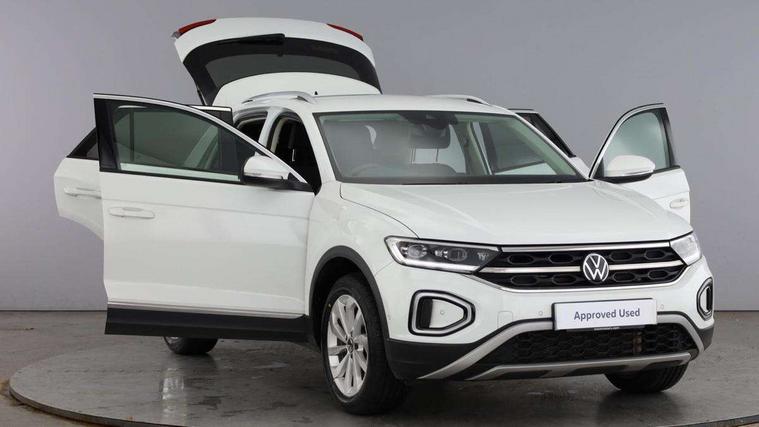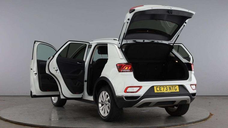 10.25" Digital cockpit pro, Bluetooth mobile phone interface, Driver alert system with fatigue detection, Driver tips and journey analysis, Emergency call service, Lane keeping system Lane Assist, Modified key software - reduce switch off time for key status change to Long no motion, Online services, Park assist including front and rear parking sensors, Service interval indicator, Tailgate/trunk lid release from outside, Think blue trainer driver tips and journey analysis, Warning sound and light for front seatbelts unfastened, Wireless app connect, Battery regeneration during braking, Start/stop function with battery regeneration, Diversity antenna for FM reception, Music playback - MP3, WMA and AAC files, Premium USB cable in choice of either Apple or Android smartphone compatibility, SD card slot, Simultaneous pairing of 2 compatible mobile devices, Title and cover art display, We Connect and We Connect Plus functionality, 3rd brake light, Auto dimming interior rear view mirror, Automatic hazard lights activation under emergency braking, Automatic headlight control with LED separate daytime running lights with coming/leaving home function, Body colour sports bumpers with silver metallic underbody fascia, Dynamic headlight range control with self adjusting whilst driving, Extended roof spoiler, Exterior mirrors aspherical on driver side, convex on front passenger side, External USB type C socket and charging sockets, Front windscreen wiper with intermittent wipe and 4 position delay, Heated rear window, LED rear combination lamps, LED rear number plate lights, LED tail lamp rear comination lamps, Light mode for poor weather, rain, fog or snow, Power windows with comfort operation and circuit breaker, Rain sensor, Rear exhaust tailpipe, Rear fog light on one side and reversing lights on both sides, Rear side wing doors, Rear wash/wipe with intermittent wipe setting, Remote electrically foldable door mirrors, puddle lights and reverse activated passenger's door mirror, 12V power socket in centre console, 3 rear head restraints, 3 seat bench in 2nd row, 4 load lashing points in luggage compartment, Air care climatronic air conditoning system with active combination filter and 2-zone temperature control, Chrome plated radiator grille inserts, air vent surrounds and light switch surrounds, Door and side trim panel with leatherette insert, Drawer under drivers seat, Front + rear carpet mats, Front centre armrest, Front comfort sports seats, Front cupholders x 2, Front footwell illumination, Instrument lighting, white adjustable panel illumination, Interior ambient lighting and surround lighting, Interior light delay, Isofix child seat preparation, Leather gearshift handle, LED interior light with switch off delay/dimmer and 2 front/rear LED reading lights, Load-through provision with cup holder when folded down ('Unsplit rear seat bench, split folding backrest, with centre armrest), Luggage compartment lighting, Non-folding front passenger seat backrest, Single front passenger seat, Storage compartment in left and right luggage area, Storage compartment in rear doors, Storage compartments in driver and front passenger doors, Sunvisors with illuminated vanity mirrors, Variable boot floor, height adjustable and removable, Driver assistance pack without proactive passenger protection - T-Roc, 3 point height adj front seatbelts + pretensioners, 3 point seatbelts in outer rear with ECE label, ABS, Child locks on rear doors, Driver and front passenger airbag with front passenger airbag deactivation, Driver and front passenger safety-optimised head restraints, Drivers seatbelt reminder, Electronic parking brake, Electronic Stability Control (ESC) inc EDL (Electronic Differential Lock) and ASR (Traction Control), Front and rear passengers curtain airbag system including front side airbags, Front assist with city emergency braking and pedestrian monitoring, Front seat side impact airbags, Predictive pedestrian protection, Rear disc brakes, Single tone horn, Tyre pressure loss indicator, Volkswagen roadside assistance, Anti-theft alarm system with interior monitoring, backup horn, and towing protection, Remote central locking with SAFELOCK, radio remote control with 2 remote control folding keys, Trims for alloy wheels,