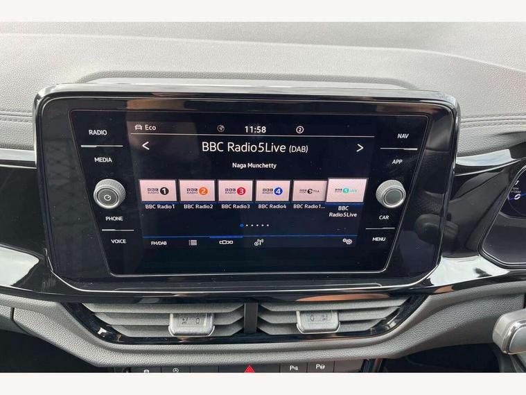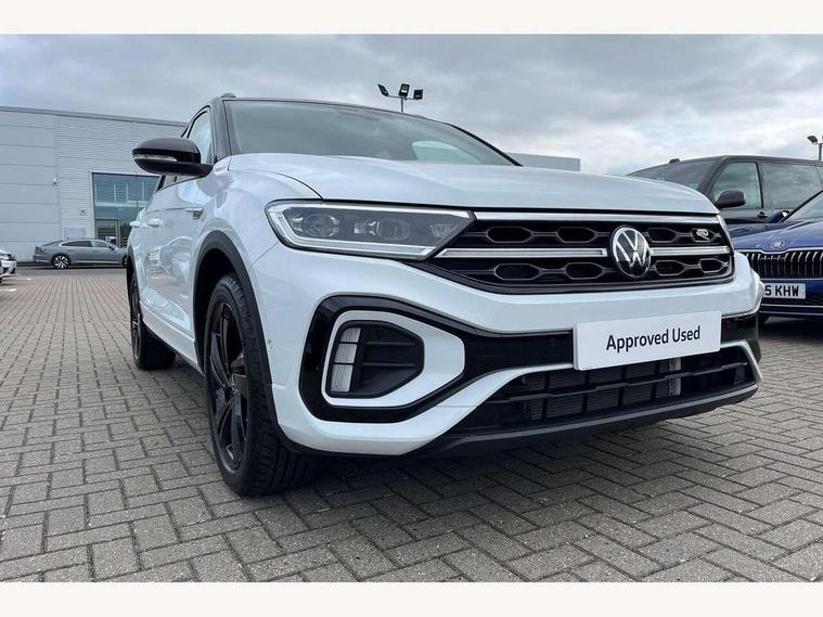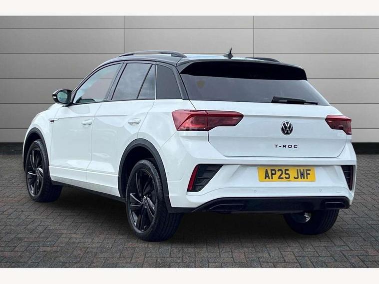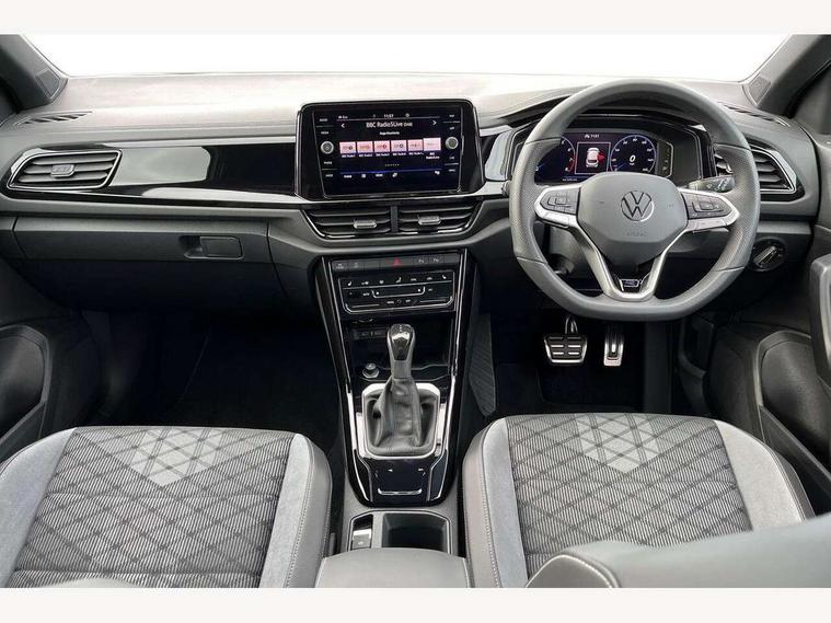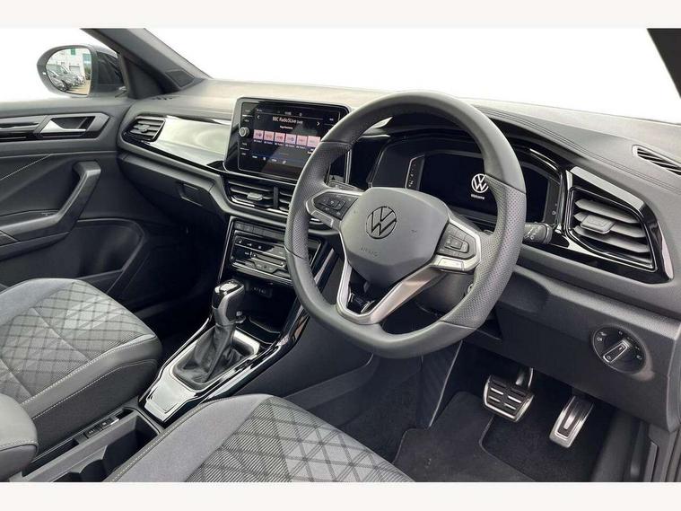 10.25" Digital cockpit pro, Advanced driver attention and drowsiness monitor, Emergency call service, Lane keeping system Lane Assist, Mobile phone interface, Modified key software - reduce switch off time for key status change to Long no motion, Online services, Park assist including front and rear parking sensors, Power assisted speed sensitive steering, Service interval indicator, Tailgate/trunk lid release from outside, Think blue trainer driver tips and journey analysis, Warning sound and light for front seatbelts unfastened, Wireless app connect, Battery regeneration during braking, Rear shock absorption chassis with increased ride height, Start/stop function with battery regeneration, DAB Digital radio, Diversity antenna for FM reception, Front and rear 6 speakers, Music playback - MP3, WMA and AAC files, Premium USB cable in choice of either Apple or Android smartphone compatibility, SD card slot, Simultaneous pairing of 2 compatible mobile devices, Title and cover art display, We Connect and We Connect Plus functionality, Auto dimming interior rear view mirror, Automatic hazard lights activation under emergency braking, Automatic headlight control with LED separate daytime running lights with coming/leaving home function, Dynamic cornering light, Electrically adjustable and heated door mirrors, Extended roof spoiler, Exterior mirrors aspherical on driver side, convex on front passenger side, External USB type C socket and charging sockets, Front windscreen wiper with intermittent wipe and 4 position delay, Heated rear window, Illuminated front grille, IQ LED matrix headlights, LED 3rd brake light, LED rear number plate lights, LED rear tail lights with dynamic turn signal, Light mode for poor weather, rain, fog or snow, Power windows with comfort operation and circuit breaker, R-Line design body coloured bumpers, Rain sensor, Rear exhaust tailpipe, Rear fog light on one side and reversing lights on both sides, Rear side wing doors, Rear wash/wipe with intermittent wipe setting, Remote electrically foldable door mirrors, puddle lights and reverse activated passenger's door mirror, 12V power socket in centre console, 3 rear head restraints, 3 seat bench in 2nd row, 4 load lashing points in luggage compartment, Air care climatronic air conditoning system with active combination filter and 2-zone temperature control, Artvelours cloth upholstery, Black roof lining, Chrome plated radiator grille inserts, air vent surrounds and light switch surrounds, Door and side trim panel with leatherette insert, Drawer under drivers seat, Driver seat height adjust, Driver's seat lumbar support, Front + rear carpet mats, Front centre armrest, Front comfort sports seats, Front cupholders x 2, Front footwell illumination, Front reading light, Front scuff plates with R Line logo, Front seat back storage pockets, Glove compartment door with light, Instrument lighting, white adjustable panel illumination, Interior ambient lighting and surround lighting, Interior light delay, Isofix child seat preparation, Leather gearshift handle, Leather wrapped multifunction steering wheel with paddle shift, Load-through provision with cup holder when folded down ('Unsplit rear seat bench, split folding backrest, with centre armrest), Luggage compartment lighting, Non-folding front passenger seat backrest, Passenger seat height adjuster, Passenger seat lumbar support, Single front passenger seat, Stainless steel pedals, Storage compartment in left and right luggage area, Storage compartment in rear doors, Storage compartments in driver and front passenger doors, Sunvisors with illuminated vanity mirrors, Variable boot floor, height adjustable and removable, Winter pack without heated windscreen washer jets - T-Roc, 3 point height adj front seatbelts + pretensioners, 3 point seatbelts in outer rear with ECE label, ABS, Child locks on rear doors, City emergency braking and pedestrian monitoring, Driver and front passenger airbag with front passenger airbag deactivation, Driver and front passenger safety-optimised head restraints, Drivers seatbelt reminder, Electronic parking brake, Electronic Stability Control (ESC) inc EDL (Electronic Differential Lock) and ASR (Traction Control), Front and rear passengers curtain airbag system including front side airbags, Front disc brakes, Hill start assist, Predictive pedestrian protection, Rear disc brakes, Two tone horn, Tyre pressure loss indicator, Volkswagen roadside assistance, Tool kit, Trims for alloy wheels, Tyre mobility kit including compressor and sealing foam,