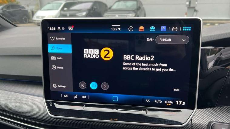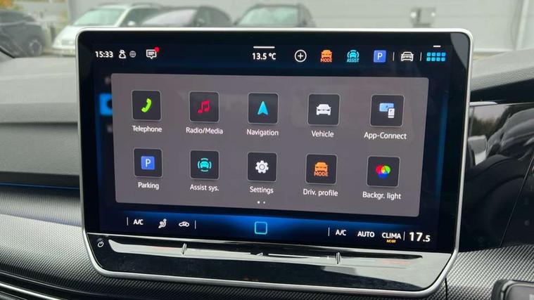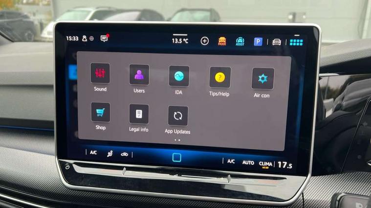 Activated carbon canister, Adaptive cruise control (ACC), Advanced driver attention and drowsiness monitor, Dynamic road sign display, Dynamic steering, E-Sim card for online connectivity, eCall emergency call system, Multi-color Digital cockpit pro, selection of different info profile possible, Multifunction front facing camera for distance control, Navigation system, Oncoming vehicle braking when turning including swerve support, Preparation for light assist system, Speed limiter, Speedo, rev counter, electronic odometer, trip, service interval display, exterior temperature and fuel gauge, Traffic jam assist, Voice enhancer and voice control, Warning signal and warning light for front and rear seatbelts not fastened, We connect plus preparation, We connect preparation, Wireless app connect, Petrol Particulate Filter, Start-stop system with battery regeneration (recuperation - energy recovery during braking), XDS electronic differential lock for improved traction and handling, 2 USB C ports in front, 2 USB charging sockets on the centre console in the rear charging capacity upto 45W, Comfort telephony + wireless charging, without wireless aerial connection, Digital radio reception (DAB), Diversity antenna for FM reception, Gaming platform via car app, Infotainment system with 12.9" display, Mobile phone interface with inductive charging feature, 3rd brake light, Auto headlights, Automatic headlamp activation with Coming home and Leaving home feature, Body colored bumpers in R-Line style, Body colour door handles, Exterior ambient lighting with illuminated door handles, Exterior mirrors convex on the left and aspherical on the right, Front and rear electric windows, Heat insulating windshield made of laminated glass, LED daytime running lights, Rear exhaust tailpipe, Rear fog light on one side and reversing lights on both sides, Rear side wing doors, Rear windscreen washer and wiper with interval delay, Remote electrically foldable door mirrors, puddle lights and reverse activated passenger's door mirror, Welcome light with surround lighting, 12V socket in front centre console, 12V socket in luggage compartment, 3 rear head restraints, 3 seat bench in 2nd row, Ambient lighting with 30 colour including LED light unit in front footwell with selectable light colour, Brushed stainless steel pedals, Carpet mats, front and rear, Chrome plated radiator grille inserts, air vent surrounds and light switch surrounds, Front centre armrest, Integrated front head restraints, ISOFIX anchors for child seats on outer rear bench seats and on front passanger seat compatible for i-Size, Leather gearshift handle, Luggage compartment lighting, Premium sports seats in front, Rear cupholder and loadthough, Single front passenger seat, Soul black instrument panel, Split folding backrest with centre armrest and unsplit rear seat bench, Storm grey roof lining, Sun visors with illuminated vanity mirrors, 3 point height adj front seatbelts + pretensioners, 3 rear three point seatbelts, ABS, Autonomous emergency braking front assist with pedestrian and cyclist monitoring, Child locks on rear doors, Driver and front passenger airbag with front passenger airbag deactivation, Electronic parking brake with auto hold, ESC (Electronic Stability Control), Extended pedestrian protection measures, Rear disc brakes, Two tone horn, Tyre pressure loss indicator, Volkswagen roadside assistance, Anti theft wheel bolts, Preparation for alcohol interlock, Decorative inserts carbon grey for dashboard and front door trim panels,