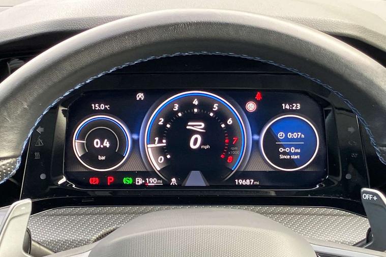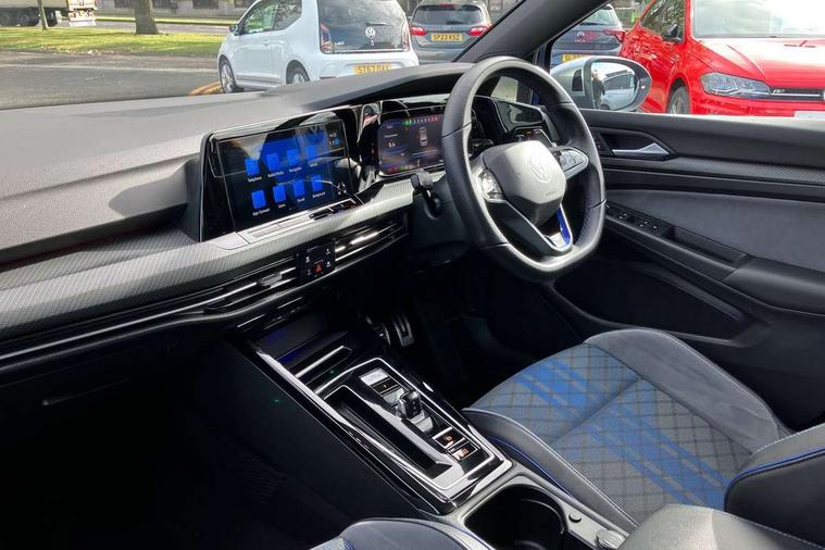 Adaptive cruise control (ACC) with speed limiter and front assist (reacting to vehicles pedestrians and cyclists), Car2X communication, Digital cockpit pro - 10.25" high resolution TFT dash display screen with customizable menus and information, Driver alert system, Dynamic road sign display, eCall - Emergency call service for SOS calls to emergency response, Lane assist, Lane change assistant, Mobile phone interface with wireless inductive charging function, Multifunction camera for distance control, PAS, Speedo, rev counter, electronic odometer, trip, service interval display, exterior temperature and fuel gauge, Start/Stop function, Travel assist with emergency side assist with electrically foldable door mirrors, USB-C ports in the front and rear centre console with increased charging performance, Warning buzzer and light for front seatbelts unfastened, Wireless app connect, 4Motion 4 wheel driver, Front differential lock, Petrol Particulate Filter, XDS electronic differential lock for improved traction and handling, Premium USB cable in choice of either Apple or Android smartphone compatibility, ''R' name plate, Auto dimming rear view mirror, Automatic headlamp activation with Coming home and Leaving home feature, Automatic headlights, Body colour bumpers, Body colour door handles, Body colour rear roof spoiler, Front and rear electric windows, Heat insulating glass windscreen, Heated rear windscreen, High level 3rd brake light, Highway light, Illuminated front grille, IQ.Light - LED Matrix headlights, dynamic headlight control with advanced high beam control matrix dipped main beam + LED DRL + 22 LED lights, LED front fog lights with 5 honeycomb design, LED License plate illumination, LED rear combination lamp inlcuding dynamic turn signal, Matt chrome effect door mirrors with integrated indicators, Performance rear spoiler, Rain sensor, Rear fog light on one side and reversing lights on both sides, Rear side wing doors, Rear tinted glass 65% light absorbing from B pillar backwards, Rear windscreen washer and wiper with interval delay, Remote electrically heated, adjustable and foldable door mirrors, including door mirror puddle lights and reverse activated kerb-view adjustment on pa, Welcome light, 12V socket in front centre console, 12V socket in luggage compartment, 3 rear head restraints, 3 seat bench in 2nd row, 3 zone climate with controls in the rear, Aluminium gear knob, Ambient lighting - Customisable 30 colour ambient lighting, Ambient lighting, exterior illuminated styling elements at the sides, Black roof lining, Brushed stainless steel pedals, Chrome plated surround to electric mirror button, window switch and air vent surrounds, Drivers and front passengers sun visors with vanity mirrors, Front + rear carpet mats in recycled material, Front centre armrest with storage compartment, Front cupholders x 2, Front passenger seat, Front reading lights x 2 incorporating LED technology, Front seat lumbar support adjuster, Front sports seats, Glovebox, Height adjustable front seats, Height and reach adjustable steering wheel, Isofix child seat preparation for 2 rear child seats and front passenger seat, Leatherette door armrests and centre armrest, Luggage compartment lighting, R leather wrapped multi function sports heated steering wheel with extended paddle shift, Removable luggage compartment cover, Split folding backrest with centre armrest and unsplit rear seat bench, Woven fabric storage compartments in front and rear doors, R styling pack - Golf, 3 point height adj front seatbelts + pretensioners, 3 rear three point seatbelts, ABS, Blue brake callipers in front with R logo, Child locks on rear doors, Driver and front passenger airbag with front passenger airbag deactivation, Drivers and front passengers safety optimised head restraints, Electronic parking brake with auto hold, ESC (Electronic Stability Control), Extended pedestrian protection measures, Front and rear passengers curtain airbag system including front side airbags, Front centre airbag, Front disc brakes, Front side airbags with curtain airbags, Rear disc brakes, Two tone horn, Tyre pressure monitoring system, Alarm with interior protection and deactivation via infotainment system, Electronic engine immobiliser, Keyless entry with start/stop button on centre console, Black metal chrome decorative inserts in dash and front door trim panels, High gloss black centre console, Soul dashboard, Tyre mobility kit Includes 12V compressor and tyre sealant,