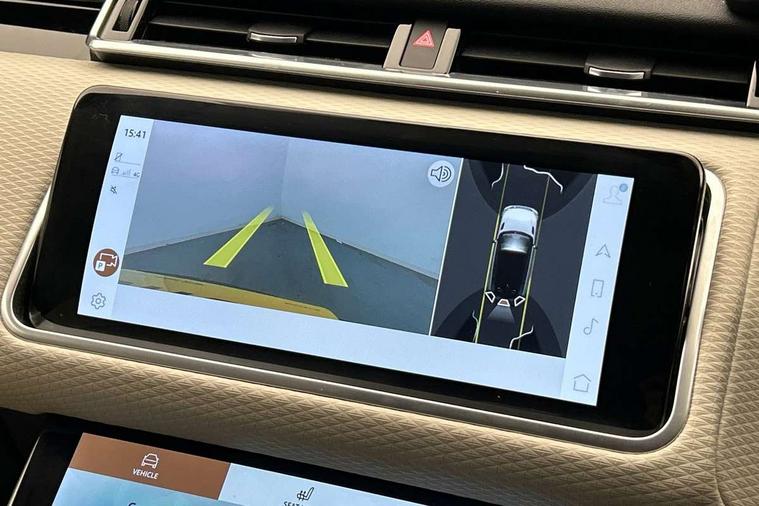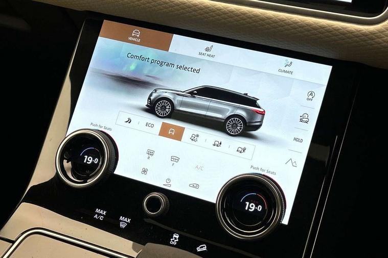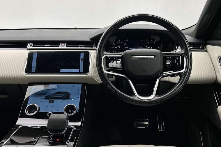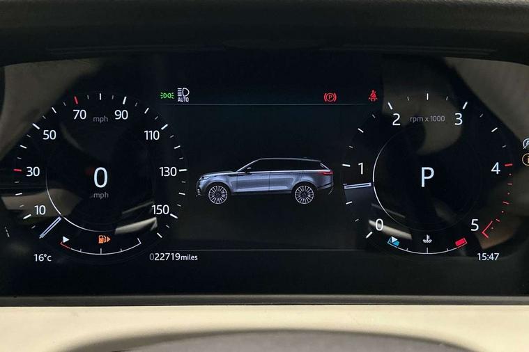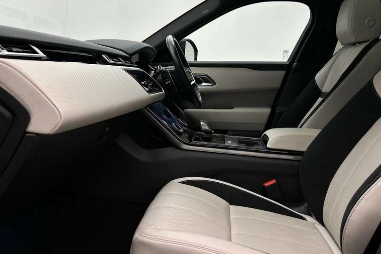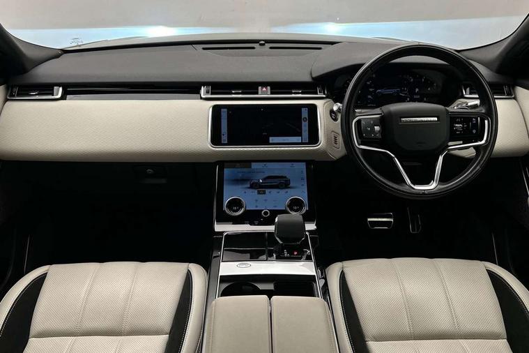 3D surround camera includes forward traffic detection and vehicle guidance, Adaptive cruise control with steering assist, Android Auto, Apple CarPlay, Blind spot assist, Bluetooth connectivity, Brake pad wear indicator warning light, Driver condition monitor, eCall emergency call system, Front and rear parking aid, InControl remote, Land Rover InControl apps, Lane keep assist, Pivi pro with connected navigation, Rear collision monitor, Rear traffic monitor, Service indicator, Speed proportional electronic power assisted steering (EPAS), Traffic sign recognition with adaptive speed limiter, Trip computer, Voice control system, Wade Sensing, Wireless device charging, 8 speed automatic transmission, Adaptive dynamics, All terrain progress control, Electronic air suspension, Open differential with torque vectoring by braking, Single speed transfer box, Terrain Response 2 with dynamic program, DAB radio, Steering wheel mounted controls, 3rd brake light, Acoustic laminated windscreen, Auto dimming interior rear view mirror, Autobiography badge, Automatic headlamp levelling, Automatic headlights, Black roof rails, Body coloured bumpers, Boot protection plate, Contrast bonnet in burnished copper & rear lettering, Electric windows with one touch open/close and anti trap, Flush deployable exterior door handles, Follow me home headlights, Heated rear window with timer, Heated washer jets, Heated windscreen, Metal load space scuff plates, Pixel LED headlights with signature DRL, Power fold, auto-dimming, heated door mirrors with memory and approach lights, Rain sensor windscreen wipers, Rear animated directional indicators, Rear fog lights, Rear side wing doors, Rear wash/wipe, Sliding panoramic roof with powered sunblind, Tailgate/boot lid spoiler, Trailer stability assist, Velar badge, 3 seat bench in 2nd row, Ambient lighting, Bright metal pedals, Carpet mats, Driver/passenger sunvisors with illuminated vanity mirrors, Ebony suedecloth headlining, Electrically adjustable steering column, Full extended leather upgrade, Heated steering wheel, Isofix system on outer rear seats, Loadspace cover, Overhead lighting console, Overhead stowage for sunglasses, Passive front headrests, Rear air vents, Rear centre headrest, Single front passenger seat, Twin front cupholders, Twin sliding front centre armrest, Online pack with data plan - Velar, Power socket pack 2 - Velar, 380mm front brakes and 325mm rear brakes, 3x3 point rear seatbelts, Anti-lock braking system (ABS), Cornering brake control, Curtain airbags, Customer configurable autolock, Door side intrusion beams, Driver airbag, DSC - Dynamic Stability Control, Electronic brake force distribution, Electronic parking brake, Electronic traction control, Emergency braking, Front and rear seatbelt reminder, Hill descent control, Hill launch assist, Low traction launch, Passenger airbag, Power operated child locks, Rear airbags, Roll stability control, Side airbags, Tyre pressure monitoring system (TPMS), Global lock and unlock switch on driver door, Immobiliser, Intrusion sensor, Keyless entry, Lock only switch on front passenger door, Locking wheel nuts, Perimetric alarm, Remote central locking, All season tyres,