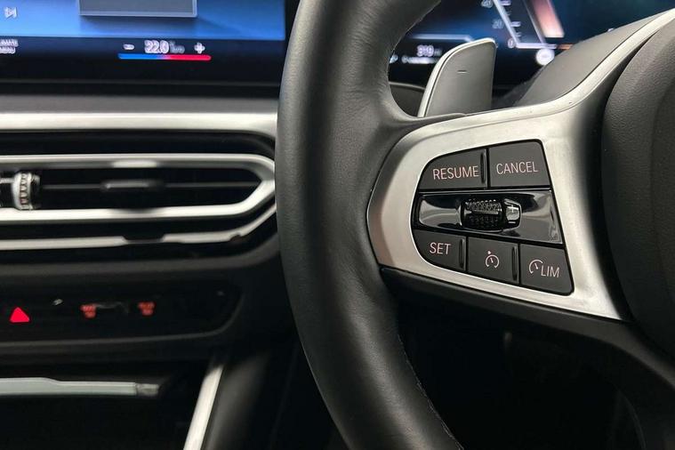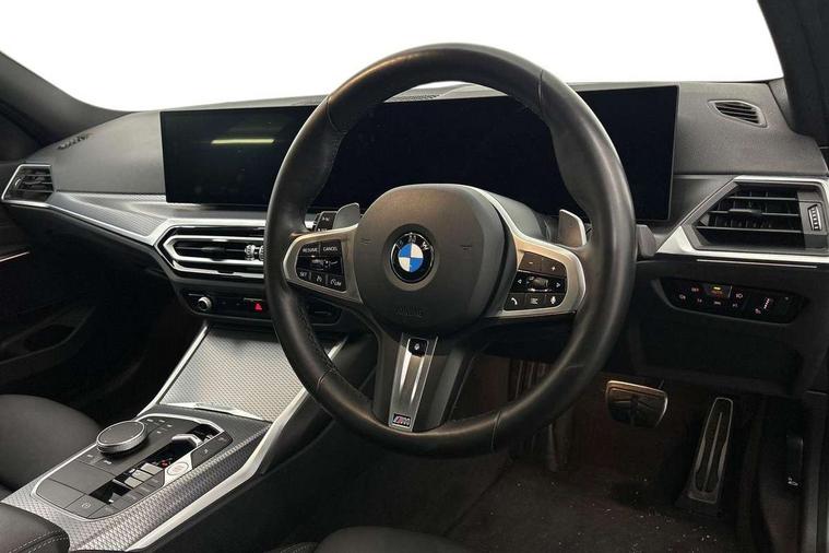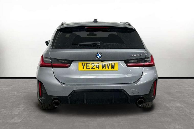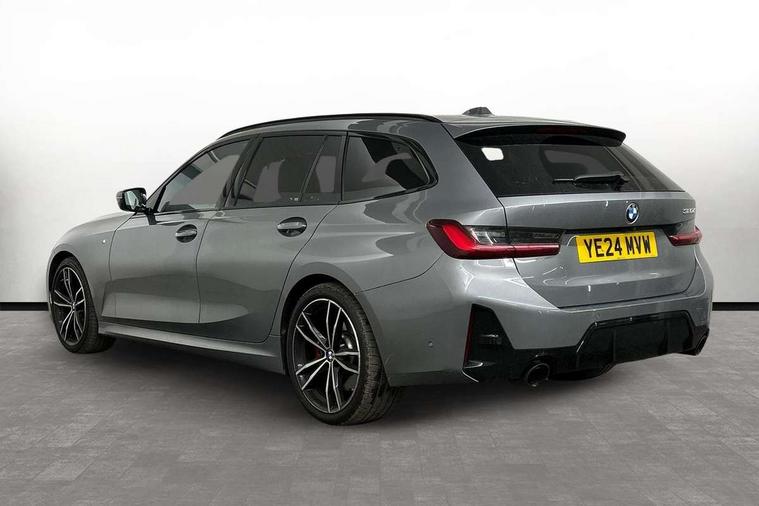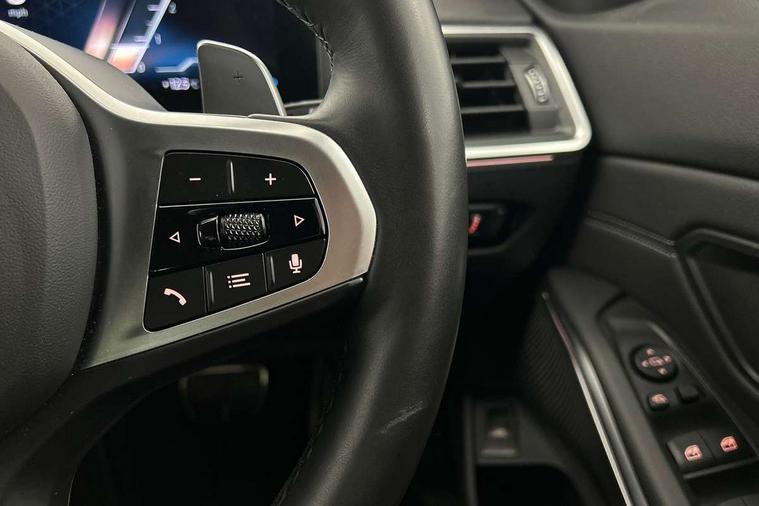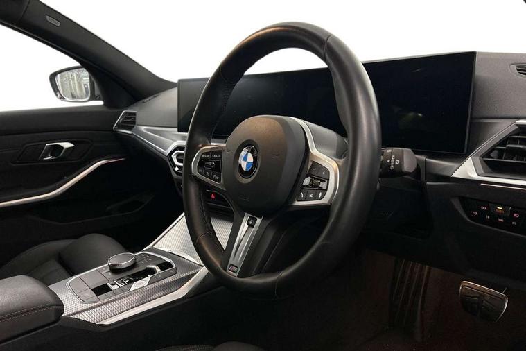 Active guard plus, Attentiveness assist, Automatic Start/stop button, BMW iDrive, BMW Teleservices, Condition based service, ConnectedDrive Services, Driving experience switch, Live cockpit plus with Navigation + 12.3" instrument display + 14.9" display, Intelligent voice assist, 2 USB, 4G LTE connect, Oil sensor for level and grade, Preparation for driver assistance, Shifting point display, Variable sport steering, 48V Mild hybrid technology, Double joint spring strut front axle, Fuel tank breather system, Larger capacity fuel tank, M sport suspension, Sport automatic transmission with steering-wheel mounted gearshift paddles and launch control, DAB tuner, 3rd brake light, Acoustic glazing, Automatic headlight beam throw control with load dependent regulating reaction, dynamic compensation of braking dive and acceleration squat, BMW emblem, engine compartment lid and tailgate, Body colour roof fin, Door sill strips, Electric windows - front and rear, with open/close fingertip control, anti-trap facility and comfort closing, Follow me home headlight function, Front and rear bumper system with replaceable deformation elements, Front apron plastic in body colour, Fuel filler flap - right rear in body colour, Heated washer jets, High gloss shadow line exterior trim, High gloss shadow line roof rails, Illuminated bow type door handles in body colour drivers side with door lock, Interior rear view electrochromatic mirror with automatic anti dazzle function, LED rear lights, Licence plate panel integrated into front bumper and tailgate, Matt black B-pillar finsher, Matt black window recess cover, Model designation on right side of tailgate, One piece front bumper cover including towing eye cover in body colour, Rain sensor with automatic headlight activation, Rear side wing doors, Rear wiper, Reversing lights, Side frame decorative moulding black matt, Visible exhaust tailpipe finisher, Welcome lights in interior and door handle area, 12V power socket in front storage compartment, 2 front cupholder in centre console with clamping elements and matt black inlay, 3 seat bench in 2nd row, 3 zone automatic air conditioning, 40:20:40 split folding rear seat with loading system, Ambient inside door handle light, Ambient light design projected onto the left and right entering and exiting area, Ambient lighting front and rear with 9 selectable colours, Ambient storage compartment lighting in the centre console, Anthracite headlining, Armrest integrated in front and rear door trim + front centre console armrest, BMW ID, Contour lighting in instrument panel and door trim panel, Cruise control operation in steering wheel, Driver backrest width adjustment, Folding rear centre armrest with 2 cupholders, Front and rear ambient footwell lighting, Front and rear door exit lighting (left / right), Front and rear headrests, Front and rear reading lights, Front and rear velour floor mats, Front sport seats, Heated front seats, Height adjustable mechanically and infinitely variable steering column, Illuminated armrest storage compartment, Illuminated glove compartment, Illuminated luggage compartment, Lashing eyelets in luggage compartment, M Sport multifunction leather steering wheel, Make-up mirror lights, Single front passenger seat, Standard seat for driver and passenger with manual adjustment, Sunvisors with vanity mirrors and ticket pocket, Toolkit located in luggage compartment, Connected pack professional - 3 Series Saloon/Touring, Interior and exterior mirror pack - 3 Series Touring/Saloon, M Aerodynamics package - 3 Series Saloon/Touring, M sport exterior styling pack - 3 Series Saloon/Touring, Storage compartment pack - 3 Series Saloon/Touring, 3x3 point rear seatbelts, BMW emergency call, Child locks on rear doors, Crash sensor activating of airbags, Unlocking doors, hazard warning lights, interior light, safety battery terminal, Driver and front passenger with seat occupancy detection for driver's and passenger side, Driver and passenger side airbags, body protection at side and airbags deploy from seat backrests, Dynamic brake control, Dynamic stability control + (DSC+) - Anti-lock Braking System (ABS) with brake assist and cornering brake control + Automatic Stability Control (ASC), Dynamic Traction Control - DTC, Electric parking brake including automatic hold function and automatic release of the parking brake when driving off, Electronic differential lock control (EDLC), Head airbags in 1st and 2nd row, head protection at side, curtain airbags open from headliner above 1st and 2nd row, Plastic fuel tank, Side impact protection, Tyre pressure monitoring with three level warning strategy, Ventilated front and rear disc brakes, Warning triangle and first aid kit, Alarm system, Centre lock switch, Closing system with central locking, Electronic vehicle immobiliser,