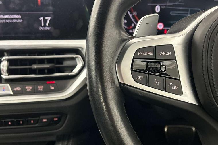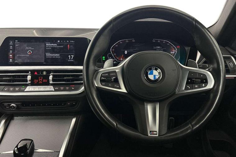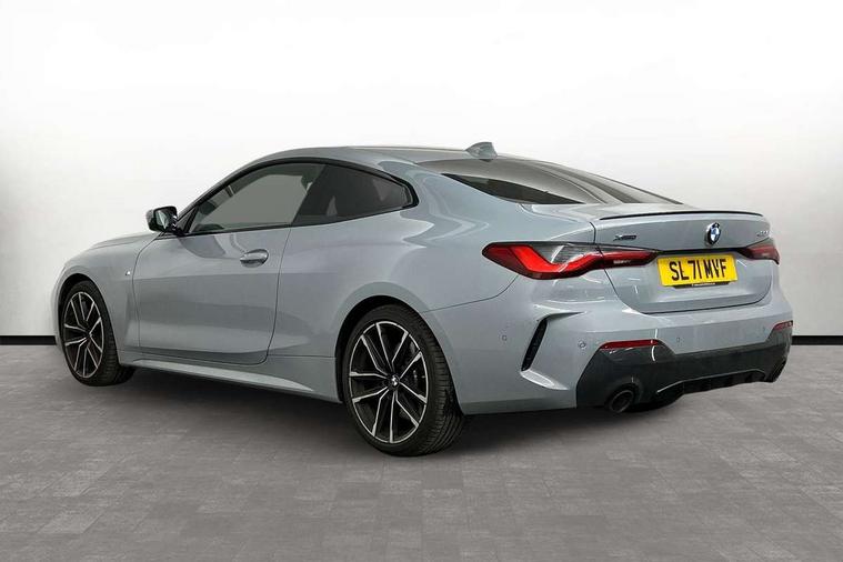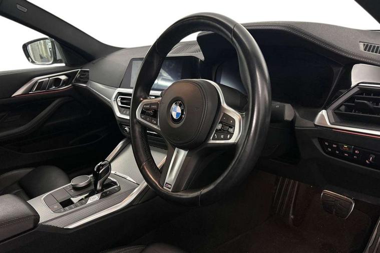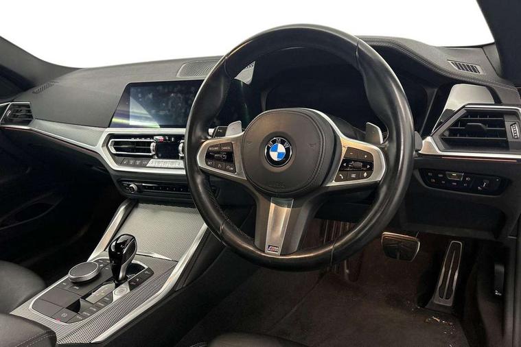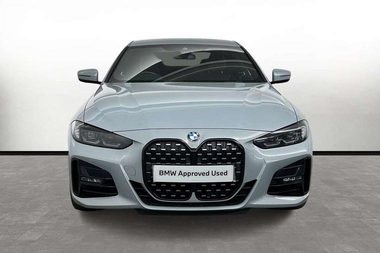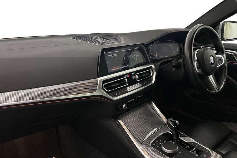 Active guard plus, Attentiveness assist, Auto start-stop, Bluetooth hands free facility with USB audio interface with audio streaming, BMW ConnectedDrive online services, BMW iDrive controller on centre console, BMW Live Cockpit Professional Nav with 12.3" instrument display + 10.25" display, Intelligent Voice Assist, BMW OS 7, HDD, 2USB, 4G LTE connect, BMW service history, BMW Teleservices, Brake pad wear indicator in front and rear, Check Control warning system for monitoring of lights and door/luggage compartment open warning, Condition based service, Cruise control with brake assist, Electric power steering with Servotronic steering optimised at all speed ranges, Gearshift time display in manual mode, Instrument cluster with speedometer with mph readout, tachometer, fuel gauge and oil temperature gauge, Integrated owners handbook, Oil sensor for level and grade, warning by check control system, On board computer - average speed, fuel consumption, outside temp display with acoustic warning, clock/date, service interval, odometer/trip meter, Optimum shift indicator, Variable sport steering, 8 speed automatic steptronic transmission with gearshift paddles, Balanced 50/50 weight distribution, Double VANOS, Drive performance control - ECO PRO, comfort and sport modes, High precision injection, Low centre of gravity, M sport suspension, Petrol Particulate Filter, Stroke dependent dampers, VALVETRONIC engine management, DAB tuner, Electronic service booklet, Acoustic glazing, Automatic headlight beam throw control with load dependent regulating reaction, dynamic compensation of braking dive and acceleration squat, Automatic windscreen wipers and automatic headlight, Automatically dimming electrochromatic rear view mirror, BMW emblem on engine compartment lid and tailgate, BMW kidney grille with mesh grille front side of the nuggets in matt aluminium and frame in chrome high gloss, Body colour fuel filler flap, Body colour M sport rear spoiler, Body colour roof fin, Brushed aluminium inserts in the front door sill finishers with BMW designation, Dynamic brake lights, Electric windows - front and rear, with open/close fingertip control, anti trap facility and comfort closing function all round, Exhaust tailpipe - split left and right, Exterior mirrors - electrically folding with anti-dazzle, Fading support, Front and rear bumper system, Front apron plastic in body colour, Green tinted heat protection glazing, High gloss shadow line exterior trim, Illuminated bow type door handles in body colour drivers side with door lock, Interior rear view electrochromatic mirror with automatic anti dazzle function, LED front fog lights, Licence plate panel integrated into front bumper and tailgate, Lightweight engineering, M designation on front side panels, left and right, Model designation on right side of tailgate, One piece front bumper cover including towing eye cover in body colour, Preparation for high beam assistant, Side frame decorative moulding black matt, Two part LED tailights in L-shape with components in smoked glass, brake light, LED turn indicator and rear fog light, Visible VIN plate, Welcome lights in interior and door handle area, Widened track and increased camber values for max transverse dynamics, agility and steering precision, Window recess cover black high gloss, Windscreen wipers with integrated washing jets, 12V power socket in front centre console, 2 front cupholder in centre console with clamping elements and matt black inlay, 2 Rear seat headrests, 3 spoke M sport leather multifunction steering wheel, 3 zone automatic air conditioning, 4 pieces lashing eyelets in luggage compartment, 40:20:40 split folding rear seat and rear centre armrest with two cupholders, Ambient lighting with welcome carpet light, Anthracite headlining, Armrest integrated in front and rear door trim + front centre console armrest, Four grab handles integrated in roof lining, Front and rear door exit lighting (left / right), Front and rear door pockets, Front and rear footwell lights, Front and rear reading lights, Front headrests, Front seat backrest width adjustment, Front sport seats, Heated driver and front passenger seats, Height adjustable mechanically and infinitely variable steering column, Illuminated armrest storage compartment, Illuminated glove compartment with separate small compartment, Luggage compartment light, Make-up mirror lights, Storage compartment in rear centre console, Sunvisors with vanity mirrors and ticket pocket, Toolkit located in luggage compartment, Velour front floor mats, Vernasca leather upholstery, Connected professional package - 4 Series, M sport exterior styling pack - 4 Series, Park assist pack without reversing assistant - 4 Series, 2 x 3-point rear seatbelts, Battery safety cut-off, BMW emergency call, Brake energy regeneration, Braking pre-tensioning, Child proof locking system in rear door, Child seat ISOFIX attachment for the two outer rear seats, Coasting in idle in ECO PRO mode, Cornering brake control (CBC), Crash sensor activating of airbags, Unlocking doors, hazard warning lights, interior light, safety battery terminal, Driver and front passenger side airbags, integrated in the door side seat backrest bolsters for all seat variants, Driver/Front Passenger airbags, Dry braking, Dynamic brake control, Dynamic stability control + (DSC+) - Anti-lock Braking System (ABS) with brake assist and cornering brake control + Automatic Stability Control (ASC), Dynamic Traction Control - DTC, Electric parking brake including automatic hold function and automatic release of the parking brake when driving off, Electronic differential lock control (EDLC), Front and rear ventilated brake disc, Front passenger manual airbag deactivation, Head airbags for all 4 outer seats, Hill start assistant, Seat belt security check for driver and front passenger, Seat belt with belt stopper, pyrotechnic belt tensioners and belt force limiters, Side impact protection, Tyre pressure moni