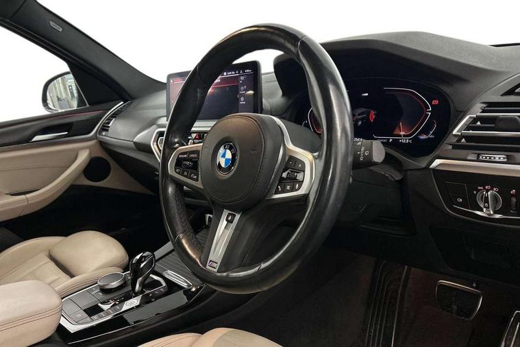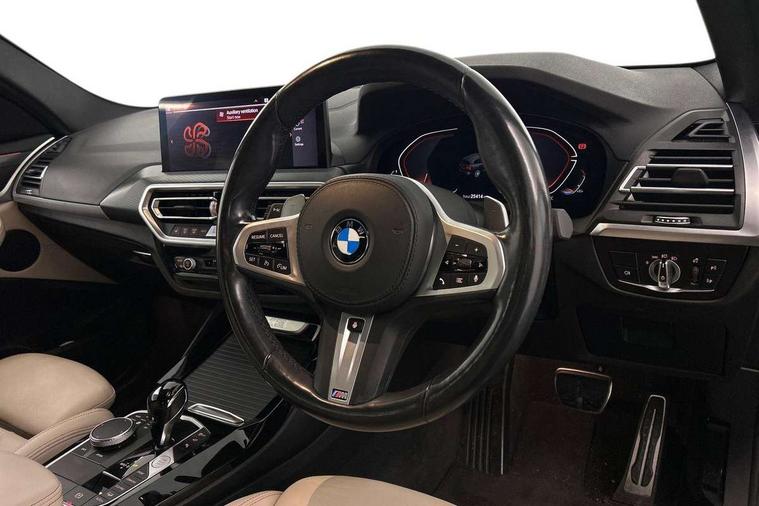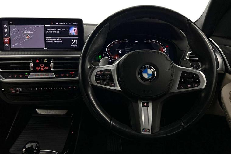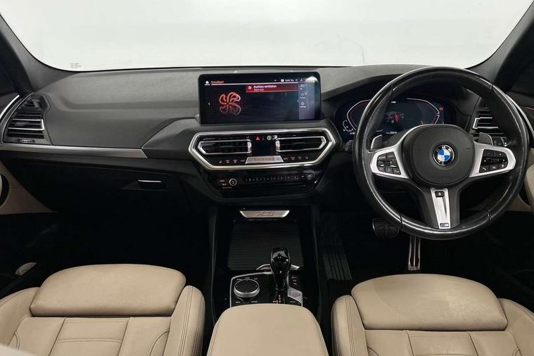 Active Guard, Attentiveness assist, Bluetooth hands free telephone connection with USB audio interface + audio streaming, BMW Live Cockpit Professional nav system including 12.3" instrument display + 12.3 high resolution control display, BMW Online services, BMW Teleservices, Brake pad wear indicator in front and rear, Check Control warning system for monitoring of lights and door/luggage compartment open warning, Condition based service - BMW service history, electronic service booklet, integrated owner's handbook, Connected drive services, Cruise control with brake function + speed limiter, Electric boot lid, Front/rear Parking distance control, iDrive Controller with 8 favourite buttons, Instrument cluster with speedometer with mph readout, tachometer, fuel gauge and oil temperature gauge, Lights on warning by audio warning signal when ignition is switched off, Oil sensor for level and grade, warning by check control system, On board computer - average speed+fuel consumption, service interval, clock/date, odometer/trip meter, outside temperature display and ice warning, Optimum shift indicator, Personal Profile - automatic lock when driving away selectable, Stop/start system, Variable sports power steering, Automatic transmission with gearshift paddles, Drive performance control with ECO PRO comfort + sport mode, Incorrect fuelling protection, M sport suspension, Multi-link rear suspension, Performance Control, 6 speakers, BMW professional radio/CD/MP3, DAB tuner, Acoustic glazing, Automatic windscreen wipers and automatic headlight, Black finish on B pillars, Body colour door handles, Body colour electric adjust heated aspherical door mirrors, Body colour roof mouldings, Body coloured bumpers, Direction indicator, side repeaters, integrated in exterior mirrors, Dynamic brake lights, Exhaust tailpipes - dual, round, split left and right with chrome finisher, Fingertip control / anti-trap function on electric window, Folding wing mirrors with auto dimming, Follow me home headlights, Front and rear bumper system with replaceable deformation elements, Front and rear electric windows, Gloss chrome tailpipes finishers, Green tinted heat insulating glass, Heated windscreen washer jets, High beam assistant, High gloss black shadow line roof rails, High gloss shadowline exterior trim in decorative moulding side frame/recess cover/guide rail/B, C pillars/mirror frame and triangle with mirror base, High level 3rd brake light incorporating LED Technology, Interior rear view electrochromatic mirror with automatic anti dazzle function, LED tail lights, Lightweight engineering, M aerodynamic bodystyling, Model designation, Rear side wing doors, Rear wing door, Rear wiper, Shark fin antenna, Side exterior M designation badges, Visible VIN plate, Welcome lighting, Windscreen wipers with adjustable interval, 12V power socket in front centre console, 3 rear headrests, 3 zone automatic air conditioning, 4 lashing points to secure luggage, 40:20:40 split folding rear seat with loading system, 5 seats, Ambient lighting, Anthracite headlining, Automatic interior light when door is opened/ignition switched off or via remote key, Foldable storage floor with compartment, Four grab handles integrated in roof lining, Front and rear bottle holders integrated into door trim storage compartments, Front and rear side armrests integrated into door trim, Front centre armrest with storage compartment, Front footwell lights, Front head restraints, Front sports seats, Front/rear courtesy lights with soft on/off dimming, Front/rear reading lights, Heated front seats, Isofix rear child seat preparation, Leather gear knob, Luggage area underfloor compartment, Luggage compartment lighting, M sport leather steering wheel, Multifunction steering wheel, Parcel shelf removeable and storable under boot floor, Reach and rake adjustable steering column, Rear centre armrest with 2 cupholders, Removable / retractable luggage cover, Seat backrest width adjustment, Slope adjustable rear seats, Storage compartment in rear centre console and front/rear door trims, Sun visors with vanity mirrors and ticket pocket, Toolkit located in luggage compartment, Two front cupholders with removable oddments tray/lid, Vernasca leather upholstery, Connected pro pack - X3, Driving assistant pack - X3, ADB - Automatic Differential Brake, Anti-lock braking system (ABS) with brake assist, Automatic Stability Control (ASC), Battery safety cut-off, BMW emergency call, Brake drying, Brake energy regeneration, Braking pre-tensioning, Child locks on rear doors, Cornering brake control (CBC), Crash Sensor - activation of central locking release, hazard warning light and interior lighting, Deactivation of fuel pump in the event of a crash, Driver and front passenger front and side airbags with passenger deactivation and ITS front and rear head airbags, DSC+, Dynamic brake control, Dynamic Traction Control - DTC, Electromechanical parking brake, Hill descent control, Hill start assist, Seatbelt security check for front seats, Side impact protection, Three point seatbelts to all seats with front and outer rear pyrotechnic belt tensioners and seat belt force limiters, Two tone horn, Tyre pressure sensor, Ventilated front and rear disc brakes, Warning triangle and first aid kit, Central locking switch for all doors, fuel filler cap and luggage compartment, Electronic engine immobiliser, Locking wheel nuts, Remote control including two integrated key - one button for open/close all lockable content, windows and separate button for open luggage compartment, Remote control Thatcham category 1 alarm, Start/stop button with Comfort Go keyless engine start and auto Start/stop deactivation button, Low rolling resistance tyres,