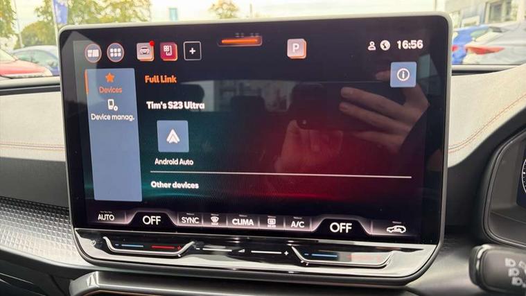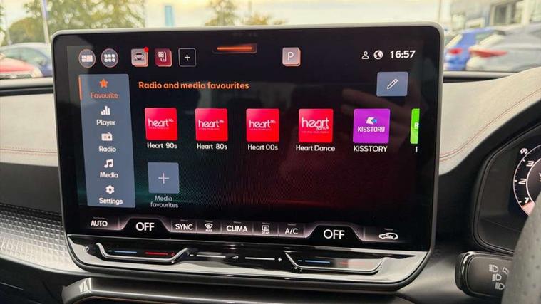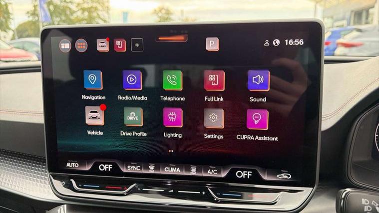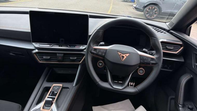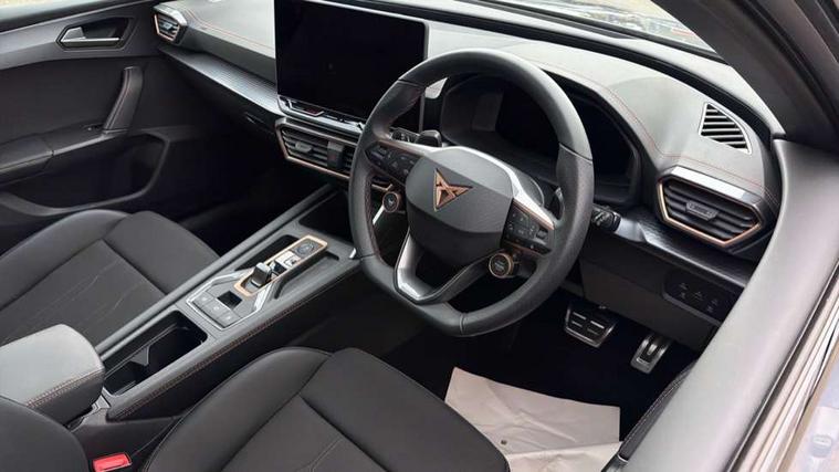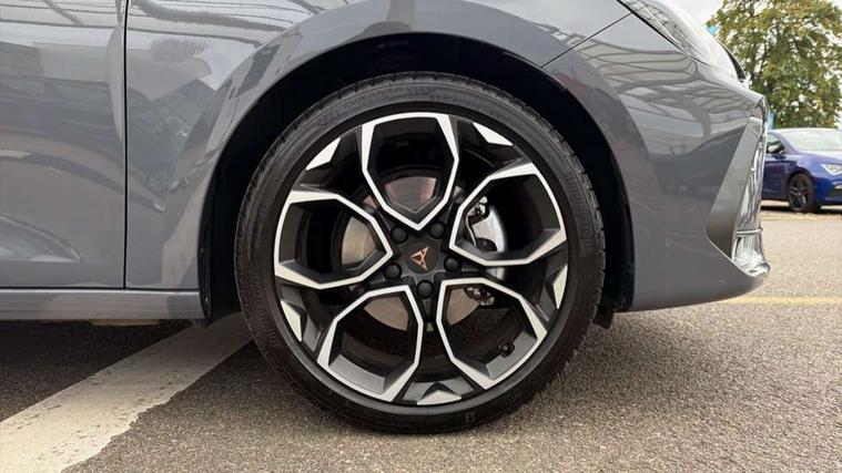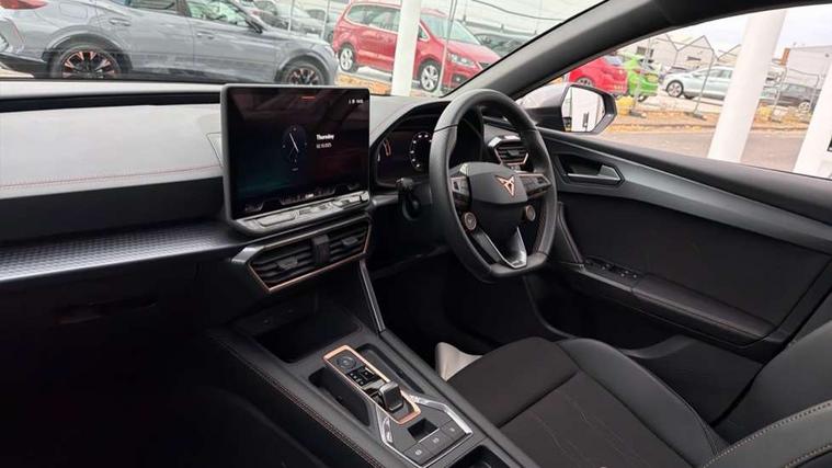 Adaptive cruise control with follow-to-stop and speed limiter, CUPRA drive profile selection with (Comfort/Sport/Individual), throttle response and gearshift mode, Digital cockpit, Dynamic road sign display, E-call, Four x USB Type C ports (2 in front and 2 in rear), Front and rear parking sensors, Front assist with forward collision warning braking reaction to vehicles, pedestrians and cyclists, Full link smartphone integration with Mirror Link, wireless Apple CarPlay and wired Google Android Auto, Lane assist, Lockable tailgate, PAS, RPM, trip computer, outside temp gauge, instrument light brightness, low fuel warning light, lights on reminder, gearshift indicator, Service interval indicator, Start/stop system with regenerative braking, Wireless phone charger, 7 speakers, Auxiliary input socket, Auto dimming rear view mirror, Body colour door handles, Body coloured bumpers, Cupra sports bumpers, Dark tinted rear windows, Electric front/rear windows, Electrically adjustable, heated and folding door mirrors, High beam assist, LED front fog lamps with cornering function, LED headlights with dynamic turn signals, tail lights, rear fog lights with rear coast to coast lighting, LED rear fog lamp, Rain sensing wipers, Rear side wing doors, Rear wash/wipe, Separate daytime running light with automatic headlight control and coming home feature, Third brake light, Welcome light with logo projector in door mirrors, 12v power supply in centre console, 3 seat bench in 2nd row, 5 headrests, 60/40 split rear bench seat with armrest, Ambient lighting with glovebox, footwell and single monocolour, Black headlining, Cloth/PVC upholstery, Cupra sports pedals, CUPRA Supersports, heated steering wheel with satellite buttons, Driver and passenger seat with manual height and lumbar adjustment, Folding boot cover, Front and rear reading lights X 4, Front centre armrest, Height/reach adjust steering wheel, Illuminated interior front door sills, ISOFIX points in outer rear seats with top tether anchorage points, Single front passenger seat, Storage pockets on rear of front seats, Sunvisors with illuminated mirror, Three zone climate control, Media system plus with 12.9" display + navigation pack - Leon Cupra, 3 point seatbelts on all rear seats, ABS, Brake control system - ESC and brake booster, Child proof door locks, Cupra black brake calipers, Driver and front passenger airbags with front passenger airbag de-activation, front side and curtain airbags, Electronic parking brake, Hill hold control, Rear disc brakes, Seat belt reminder for front and rear seats, Tiredness recognition system, Tyre pressure monitoring system, Anti theft alarm system with interior monitoring in cab, backup horn and towing protection, Central locking system Keyless Go, Locking wheel bolts, Chrome and copper interior detailing, 18" Windstorm machined sport black matt and silver alloy wheel with 92Y XL tyres, Tool kit,