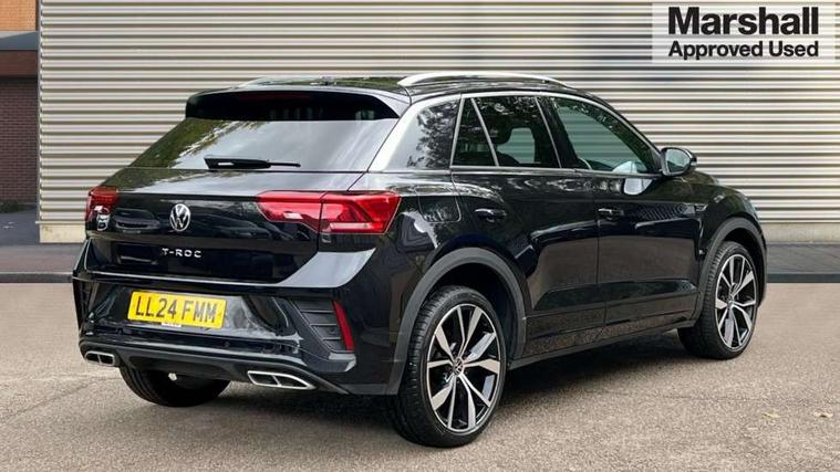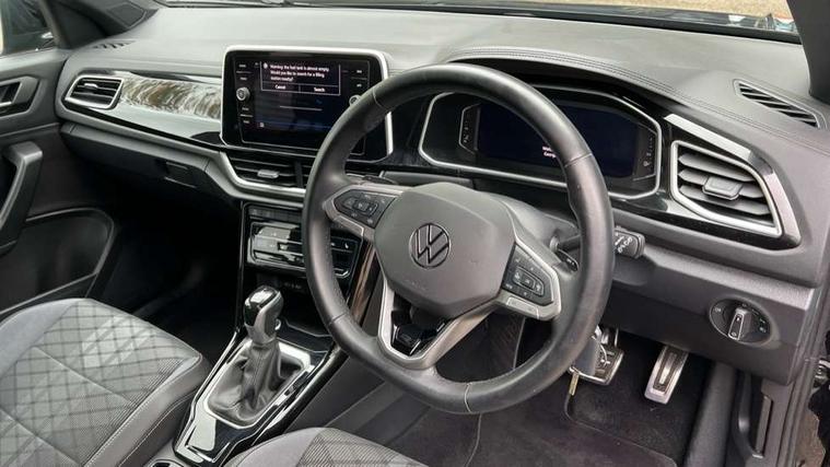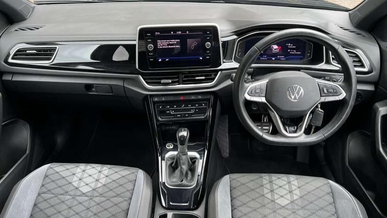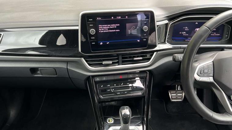 10.25" Digital cockpit pro, Advanced driver attention and drowsiness monitor, Bluetooth mobile phone interface, Emergency call service, Lane keeping system Lane Assist, Modified key software - reduce switch off time for key status change to Long no motion, Online services, Park assist including front and rear parking sensors, Service interval indicator, Tailgate/trunk lid release from outside, Think blue trainer driver tips and journey analysis, Warning sound and light for front seatbelts unfastened, Wireless app connect, Battery regeneration during braking, Start/stop function with battery regeneration, Diversity antenna for FM reception, Music playback - MP3, WMA and AAC files, Premium USB cable in choice of either Apple or Android smartphone compatibility, SD card slot, Simultaneous pairing of 2 compatible mobile devices, Title and cover art display, We Connect and We Connect Plus functionality, 3rd brake light, Auto dimming interior rear view mirror, Automatic hazard lights activation under emergency braking, Automatic headlight control with LED separate daytime running lights with coming/leaving home function, Electrically adjustable and heated door mirrors, Extended roof spoiler, Exterior mirrors aspherical on driver side, convex on front passenger side, External USB type C socket and charging sockets, Front windscreen wiper with intermittent wipe and 4 position delay, Heated rear window, LED rear combination lamps, LED rear number plate lights, Power windows with comfort operation and circuit breaker, R-Line design body coloured bumpers, Rain sensor, Rear exhaust tailpipe, Rear fog light on one side and reversing lights on both sides, Rear side wing doors, Rear wash/wipe with intermittent wipe setting, Remote electrically foldable door mirrors, puddle lights and reverse activated passenger's door mirror, 12V power socket in centre console, 3 rear head restraints, 3 seat bench in 2nd row, 4 load lashing points in luggage compartment, Air care climatronic air conditoning system with active combination filter and 2-zone temperature control, Black roof lining, Chrome plated radiator grille inserts, air vent surrounds and light switch surrounds, Door and side trim panel with leatherette insert, Front + rear carpet mats, Front centre armrest, Front cupholders x 2, Front footwell illumination, Front reading light, Front scuff plates with R Line logo, Front seat back storage pockets, Glove compartment door with light, Instrument lighting, white adjustable panel illumination, Interior ambient lighting and surround lighting, Interior light delay, Isofix child seat preparation, Leather gearshift handle, Load-through provision with cup holder when folded down ('Unsplit rear seat bench, split folding backrest, with centre armrest), Luggage compartment lighting, Single front passenger seat, Stainless steel pedals, Storage compartment in left and right luggage area, Storage compartment in rear doors, Storage compartments in driver and front passenger doors, Sunvisors with illuminated vanity mirrors, Variable boot floor, height adjustable and removable, Driver assistance pack without proactive passenger protection - T-Roc, 3 point height adj front seatbelts + pretensioners, 3 point seatbelts in outer rear with ECE label, ABS, Child locks on rear doors, City emergency braking and pedestrian monitoring, Driver and front passenger airbag with front passenger airbag deactivation, Driver and front passenger safety-optimised head restraints, Drivers seatbelt reminder, Electronic parking brake, Electronic Stability Control (ESC) inc EDL (Electronic Differential Lock) and ASR (Traction Control), Front and rear passengers curtain airbag system including front side airbags, Hill start assist, Predictive pedestrian protection, Rear disc brakes, Two tone horn, Tyre pressure loss indicator, Volkswagen roadside assistance, Anti-theft alarm system with interior monitoring, backup horn, and towing protection, Remote central locking with SAFELOCK, radio remote control with 2 remote control folding keys, Trims for alloy wheels,