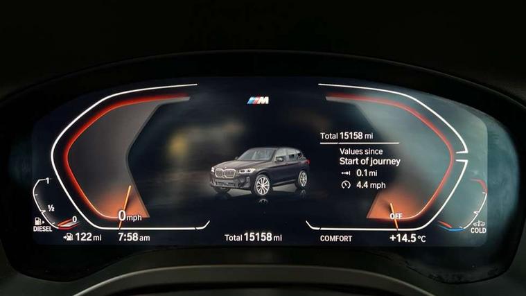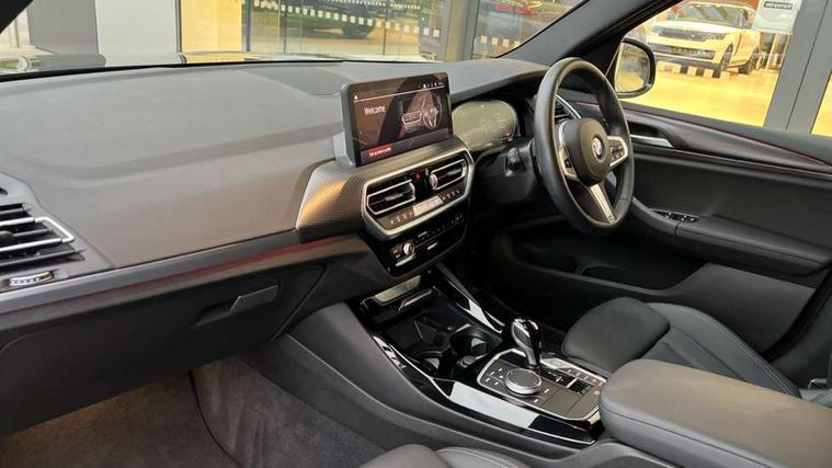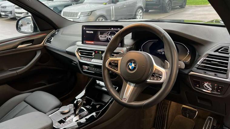 Active Guard, Attentiveness assist, BMW Live Cockpit Professional nav system including 12.3" instrument display + 12.3 high resolution control display, BMW Online services, BMW Teleservices, Brake pad wear indicator in front and rear, Check Control warning system for monitoring of lights and door/luggage compartment open warning, Condition based service - BMW service history, electronic service booklet, integrated owner's handbook, Connected drive services, Electric boot lid, Front/rear Parking distance control, iDrive touch controller with 8 favourite buttons, Instrument cluster with speedometer with mph readout, tachometer, fuel gauge and oil temperature gauge, Lights on warning by audio warning signal when ignition is switched off, Oil sensor for level and grade, warning by check control system, On board computer - average speed+fuel consumption, service interval, clock/date, odometer/trip meter, outside temperature display and ice warning, Optimum shift indicator, Personal Profile - automatic lock when driving away selectable, Run flat indicator, Stop/start system, Variable sports power steering with drive performance control Sport+ mode, Diesel particulate filter, Incorrect fuelling protection, Larger capacity fuel tank, M sport suspension, Multi-link rear suspension, Sport automatic transmission with gearshift paddles, BMW professional radio/CD/MP3, DAB tuner, Acoustic glazing, Automatic windscreen wipers and automatic headlight, Black finish on B pillars, Body colour door handles, Body colour electric adjust heated aspherical door mirrors, Body colour roof mouldings, Body coloured bumpers, Direction indicator, side repeaters, integrated in exterior mirrors, Dynamic brake lights, Exhaust tailpipes - dual, round, split left and right with chrome finisher, Fingertip control / anti-trap function on electric window, Folding wing mirrors with auto dimming, Follow me home headlights, Front and rear bumper system with replaceable deformation elements, Front and rear electric windows, Gloss chrome tailpipes finishers, Green tinted heat insulating glass, Heated windscreen washer jets, High beam assistant, High gloss black shadow line roof rails, High gloss shadowline exterior trim in decorative moulding side frame/recess cover/guide rail/B, C pillars/mirror frame and triangle with mirror base, High level 3rd brake light incorporating LED Technology, Interior rear view electrochromatic mirror with automatic anti dazzle function, LED tail lights, Lightweight engineering, M aerodynamic bodystyling, M Sport entry door sill strips, Model designation, Rain sensor, Rear side wing doors, Rear wing door, Rear wiper, Shark fin antenna, Side exterior M designation badges, Visible VIN plate, Welcome lighting, Windscreen wipers with adjustable interval, 12V power point in luggage area, 12V power socket in front centre console, 2 x USB Type C ports for charging and data transmission (front centre console) and 2 x USB Type C ports for charging (rear centre console), 3 rear headrests, 3 seat bench in 2nd row, 3 zone automatic air conditioning, 4 lashing points to secure luggage, 40:20:40 split folding rear seat with loading system, Ambient lighting, Anthracite headlining, Automatic interior light when door is opened/ignition switched off or via remote key, Floor mats in velour, Foldable storage floor with compartment, Four grab handles integrated in roof lining, Front and rear bottle holders integrated into door trim storage compartments, Front and rear side armrests integrated into door trim, Front centre armrest with storage compartment, Front footwell lights, Front head restraints, Front passenger seat, Front sports seats, Front/rear courtesy lights with soft on/off dimming, Front/rear reading lights, Heated front seats, Isofix rear child seat preparation, Leather gear knob, Lockable glove compartment, Luggage area underfloor compartment, Luggage compartment lighting, M sport leather steering wheel, Multifunction steering wheel, Parcel shelf removeable and storable under boot floor, Reach and rake adjustable steering column, Rear centre armrest with 2 cupholders, Removable / retractable luggage cover, Slope adjustable rear seats, Storage compartment in rear centre console and front/rear door trims, Sun visors with vanity mirrors and ticket pocket, Toolkit located in luggage compartment, Two front cupholders with removable oddments tray/lid, Connected pro pack - X3, ADB - Automatic Differential Brake, Anti-lock braking system (ABS) with brake assist, Automatic Stability Control (ASC), Battery safety cut-off, BMW emergency call, Brake drying, Brake energy regeneration, Braking pre-tensioning, Child locks on rear doors, Cornering brake control (CBC), Crash Sensor - activation of central locking release, hazard warning light and interior lighting, Deactivation of fuel pump in the event of a crash, Driver and front passenger front and side airbags with passenger deactivation and ITS front and rear head airbags, Driver and front passenger knee airbag, DSC+, Dynamic brake control, Dynamic Traction Control - DTC, Electromechanical parking brake, Hill descent control, Hill start assist, Seatbelt security check for front seats, Side impact protection, Three point seatbelts to all seats with front and outer rear pyrotechnic belt tensioners and seat belt force limiters, Two tone horn, Tyre pressure sensor, Ventilated front and rear disc brakes, Warning triangle and first aid kit, Central locking switch for all doors, fuel filler cap and luggage compartment, Electronic engine immobiliser, Locking wheel nuts, Remote control including two integrated key - one button for open/close all lockable content, windows and separate button for open luggage compartment, Remote control Thatcham category 1 alarm, Start/stop button with Comfort Go keyless engine start and auto Start/stop deactivation button, Low rolling resistance tyres,
