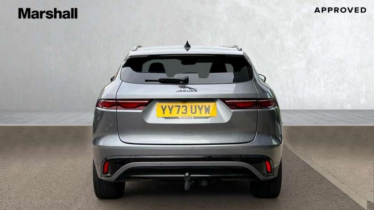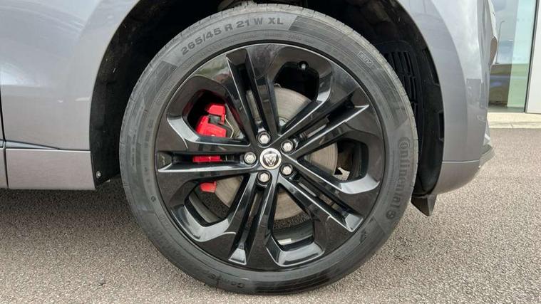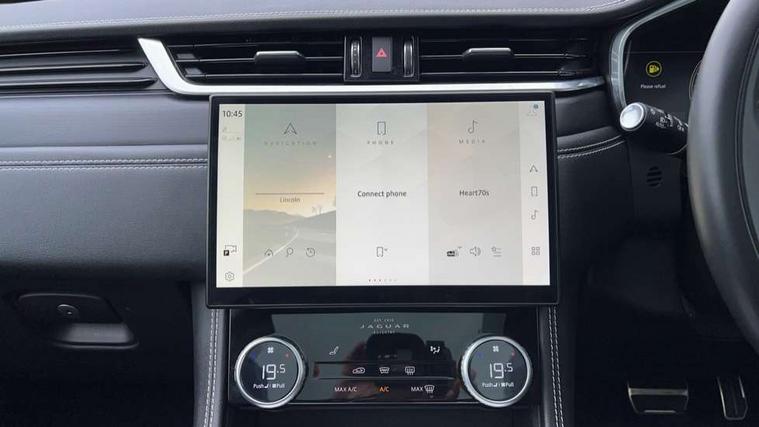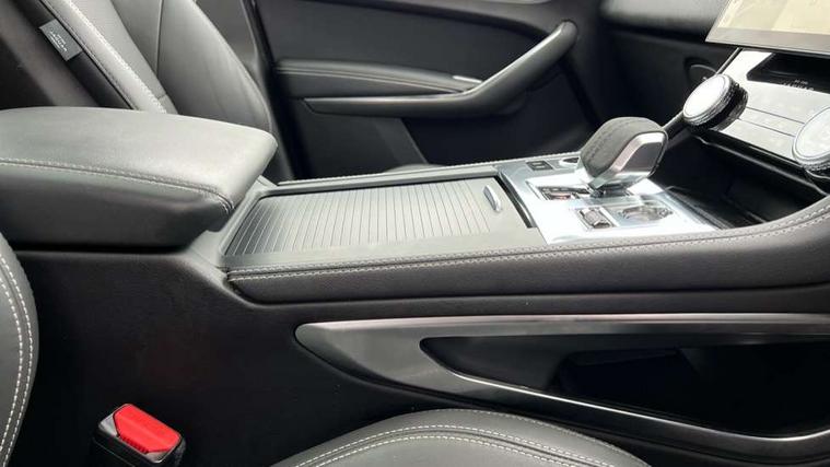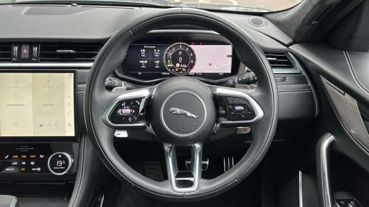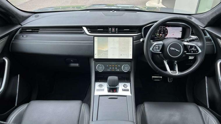 11.4" touchscreen, Adaptive cruise control with steering assist, Android Auto, Apple car play, Blind spot assist, Bluetooth connectivity, Clear exit monitor, Driver alert system, Driver condition monitor, eCall emergency call system, Eco driving style assistant, Electric power assisted steering, InControl remote, Interactive driver display digital with 12" TFT display, Jaguar Toggle shift selector, Lane departure warning system, Lane keep assist, Outside temperature gauge, Personalisation profile management, Pivi pro connected navigation system with app interface and media storage, Pro services and wifi hotspot, Push button starter, Rear collision monitor, Rear traffic monitor, Service interval indicator, Speed proportional steering, Start up sequence with movement in dials and lighting, Traffic sign recognition with adaptive speed limiter, Trip computer, Voice control system, Wireless device charging, 7 kW onboard charger, 8 speed automatic transmission, AC/DC charging, Adaptive dynamics, All terrain progress control, All Wheel Drive (AWD), Configurable dynamics, Home charging cable, Open differential with torque vectoring by braking, Public charging cable, AM/FM radio, Bluetooth streaming, DAB Radio (Digital Audio Broadcasting), Dynamic volume control, InControl apps, InControl protect, iPod integration, 3 flash lane change indicators, AHBA and animated directional indicators, Approach Illumination, Auto dimming rear view mirror, Automatic headlights, Electric heated/power fold memory door mirrors with approach lights and auto dimming driver side, Electric windows with one touch open/close and anti trap, F-Pace and R Dynamic badge, Green tinted glass, Heated front windscreen + heated washer jets, Heated rear window with timer, Illuminated metal tread plates with Jaguar script, Jaguar script and leaper, LED High level third brake light, LED tail lights, Metal load space scuff plates, Non acoustic front windscreen, P400e AWD badge, Privacy glass (rear side windows and rear screen), R Dynamic badge on side door, Rain sensor windscreen wipers, Rear fog lights, Rear metal tread plates, Rear side wing doors, Rear wiper, Trailer stability assist, Variable front intermittent wipers, 12V power point front, 3 rear headrests, 3 seat bench in 2nd row, Additional power sockets - Two additional USB sockets in rear centre console and one 12V socket in trunk, Air distribution speed, Bright metal foot pedals, Centre armrest console, Centre console with side storage, Configurable cabin lighting, Deletion loadspace storage rails, Door sill tread plates, Ebony suede cloth headlining, Electrically adjustable steering column, Fold flat front seats, Front centre armrest with storage compartment, Front door storage space, Glovebox finisher with jaguar script, Heated steering wheel, Hooks in loadspace, Illuminated glovebox, Interior front door handles with separate locking switches, ISOFIX on outer rear seats, Jaguar sense, Leather steering wheel, Luggage tie downs in loadspace, Mist sensing, Multifunction steering wheel, Overhead lighting console, Overhead stowage for sunglasses, Passive front head restraints, Premium carpet mats, Rear air vents, Rear armrest with twin cupholders, Rear centre headrest, Rear door storage space, Reversible boot floor, Satin chrome gearshift paddles, Shopping bag hook, Single front passenger seat, Sunvisors with illuminated vanity mirrors, Twin front cupholders with cover, Online Pack with data plan - F-Pace, 380mm front brakes and 325mm rear brakes, 3x3 point rear seatbelts, ABS, All surface progress control (ASPC), Brake pad warning light, DSC - Dynamic Stability Control, Electric parking brake (EPB), Emergency brake assist, Front airbags with passenger seat occupant detector, Front and rear seatbelt reminder, Front side airbags, Full length side window curtain airbag, Hill launch assist, Power operated child locks, Traction control, Tyre pressure monitoring system, Immobiliser, Keyless entry, Keyless Start, Locking wheel nuts, Perimeter alarm, Remote central locking, Valet mode,