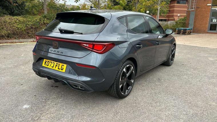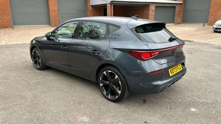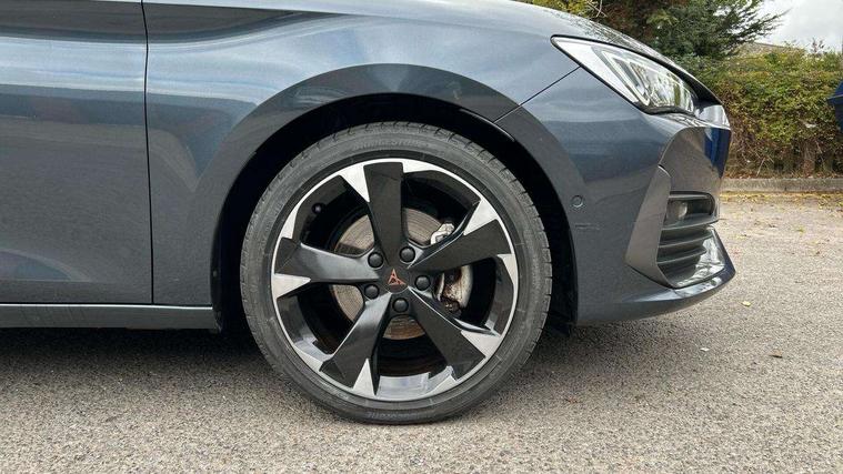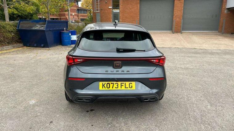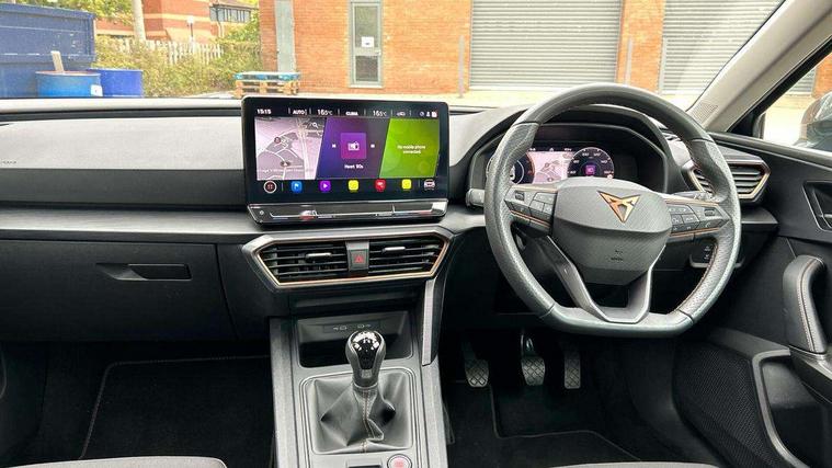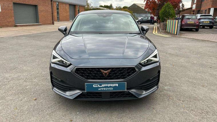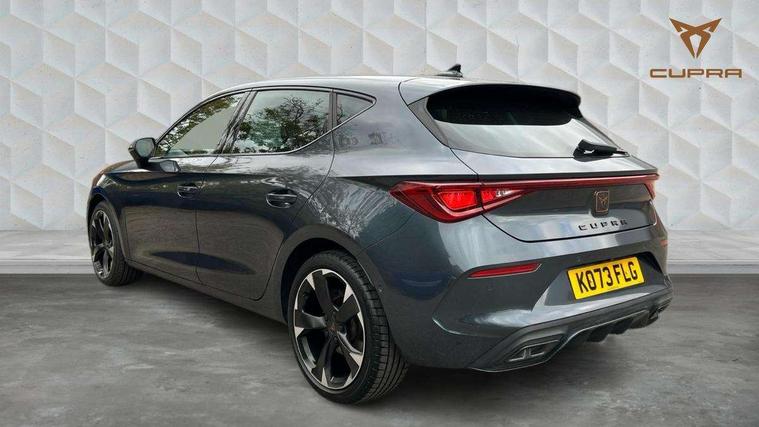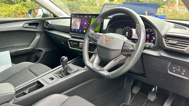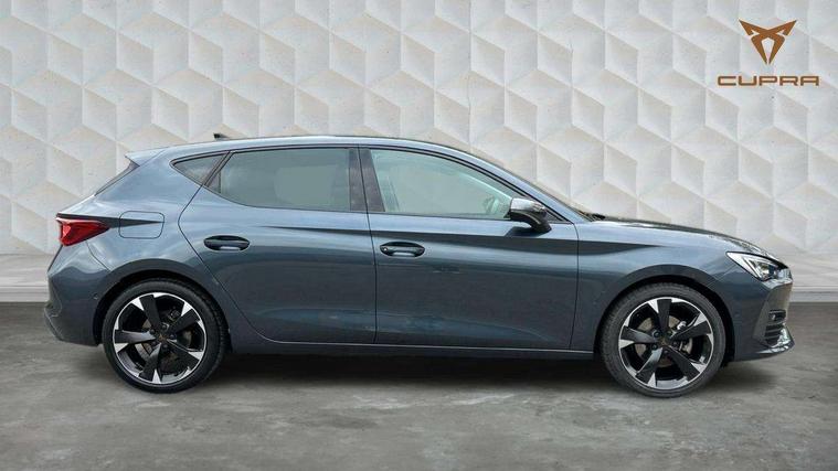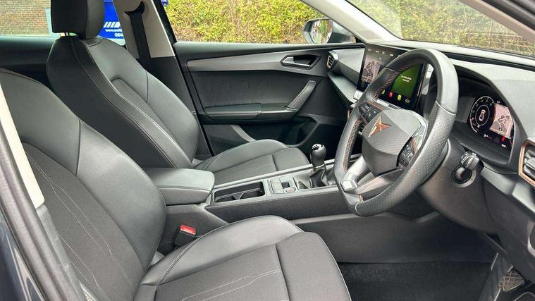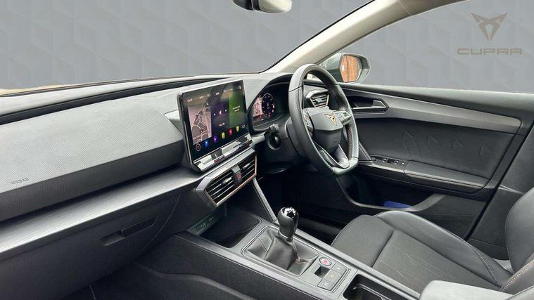 CUPRA drive profile selection with (Comfort/Sport/Individual), throttle response and gearshift mode, Digital cockpit, E-call, Electro mechanical speed sensitive power steering, Four x USB Type C ports (2 in front and 2 in rear), Front assist with forward collision warning braking reaction to vehicles, pedestrians and cyclists, Full link smartphone integration with Mirror Link, wireless Apple CarPlay and wired Google Android Auto, Lane assist, Lockable tailgate, Park assist (inc front/rear parking sensors), Rear view camera, RPM, trip computer, outside temp gauge, instrument light brightness, low fuel warning light, lights on reminder, gearshift indicator, Service interval indicator, Start/stop system with regenerative braking, Wireless phone charger, Sports suspension, Auxiliary input socket, Auto dimming rear view mirror, Body colour door handles, Body coloured bumpers, Cupra sports bumpers, Dark tinted rear windows, Electric front/rear windows, Electrically adjustable, heated and folding door mirrors, LED front fog lamps with cornering function, LED headlights with dynamic turn signals, tail lights, rear fog lights with rear coast to coast lighting, Rain sensing wipers, Rear diffuser with twin exhaust pipe on each side, Rear side wing doors, Rear wash/wipe, Separate daytime running light with automatic headlight control and coming home feature, Third brake light, 12v power supply in centre console, 3 seat bench in 2nd row, 5 headrests, 60/40 split rear bench seat with armrest, Ambient lighting with glovebox, footwell and single monocolour, Cupra Leather flat bottomed, perforated steering wheel, Driver/passenger manual seat height adjustment, Folding boot cover, Front and rear reading lights X 4, Front centre armrest, Front seats manual lumbar adjustment, Grey headlining, Height/reach adjust steering wheel, Illuminated interior front door sills, ISOFIX points in outer rear seats with top tether anchorage points, Jack and tool kit, PVC/Cloth upholstery with copper stitching, Single front passenger seat, Sports seats, Sunvisors with illuminated mirror, Three zone climate control, Media system plus with navigation pack - Leon Cupra, Safety and driving pack (M) - Cupra leon, 3 point seatbelts on all rear seats, ABS, Brake control system - ESC and brake booster, Child proof door locks, Cupra black brake calipers, Driver and front passenger airbags with front passenger airbag de-activation, front side and curtain airbags, Electronic parking brake, Extended safety system - seat belt tensioner, window closure and hazard lights, Hill hold control, Rear disc brakes, Seat belt reminder for front and rear seats, Tiredness recognition system, Tyre pressure monitoring system, Anti theft alarm system with interior monitoring in cab, backup horn and towing protection, KESSY Advanced - Keyless start, keyless entry, Locking wheel bolts, Chrome and copper interior detailing, 18" Machined sport black and silver alloy wheels with 92Y tyres,