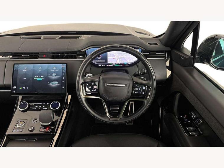 13.1" Touchscreen, 3D 360 degree surround camera with wade sensing, Adaptive cruise control with steering assist, Android Auto, Apple car play, Blind spot assist, Bluetooth connectivity streaming, Driver condition response, Eco mode, Electric power assisted steering (EPAS), Interactive Driver display instrument cluster, Lane departure warning system, Lane keep assist, Push button start, Rear collision monitor, Rear traffic monitor, Remote, Traffic sign recognition with adaptive speed limiter, Trip computer, Wireless device charging with phone signal booster, 8 speed automatic transmission, Adaptive dynamics, All wheel drive system, Automatic access height, Home charging cable, Public charging cable, Terrain Response 2, Twin speed transfer box, DAB Radio (Digital Audio Broadcasting), Incontrol protect - SOS emergency call with automatic collision detection, optimised assistance call and Incontrol remote app essential, Pivi pro connected, USB/aux input socket, Adaptive brake lights, Automatic headlight levelling, Automatic headlights, Centre high mounted stop light, Electric heated/power fold memory door mirrors with approach lights and auto dimming driver side, Electric windows with one touch open/close and anti trap, Flush deployable exterior door handles, Follow me home lighting, Front and rear recovery eyes, Headlight power wash, Heated rear window, Heated washer jets, Heated windscreen, Integrated twin tailpipes, LED tail lights, No badges, Rain sensing windscreen wipers, Rear animated directional indicators, Rear fog lights, Rear side wing doors, Rear wash/wipe, Remote window closing, Side repeater indicators in mirror, Trailer stability assist, Winter wiper park position, 3 seat bench in 2nd row, 60:40 seats with power recline and loadthrough, Air quality sensor, Auto air recirculation, Bright metal foot pedals, Centre console with armrest, Customer configurable single point entry, Driver's footrest, Easy boot loading, Ebony console door armrests and seatbelts, Electric adjustable steering column, Front and rear cupholders, Front door storage space, Front head restraints, Front map lights, Front seat back map pockets, Front stowage pocket, Front/rear passenger grab handles, Gearshift paddles, Heated steering wheel, Isofix child seat preparation, Loadspace cover, Loadspace Hook, Loadspace light, Loadspace mounting provisions, Lockable glovebox, Luggage tie-downs in loadspace, Multifunction steering wheel, Pollen filter, Power socket, Rear centre armrest, Rear head restraints, Rear ISOFIX, Single front passenger seat, Three 12V accessory power outlets, Upper secondary glovebox, Online pack with data plan - Range Rover Sport, 3 point seatbelts on all seats, Anti-lock braking system (ABS), Brake pre-fill technology, Configurable autolock, Cornering brake control (CBC), DSC - Dynamic Stability Control, EBD - Electronic brakeforce distribution, Electric parking brake, Electronic traction control, Emergency braking, Front seatbelt pretensioners, Front side airbags, Height adjustable front seatbelts, Hill descent control, Hill launch assist, Low traction launch, Occupant protection assist, Passenger seat occupant detector with front airbags, Power operated child locks, Roll stability control, Seatbelt warning, TPMS (Tyre pressure monitoring system), Immobiliser, Intrusion sensor, Keyless entry, Locking wheel nuts, Perimetric and volumetric anti theft alarm, Remote locking, Moonlight noble chrome interior finishers,