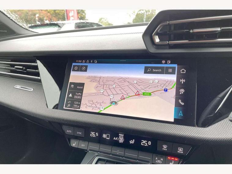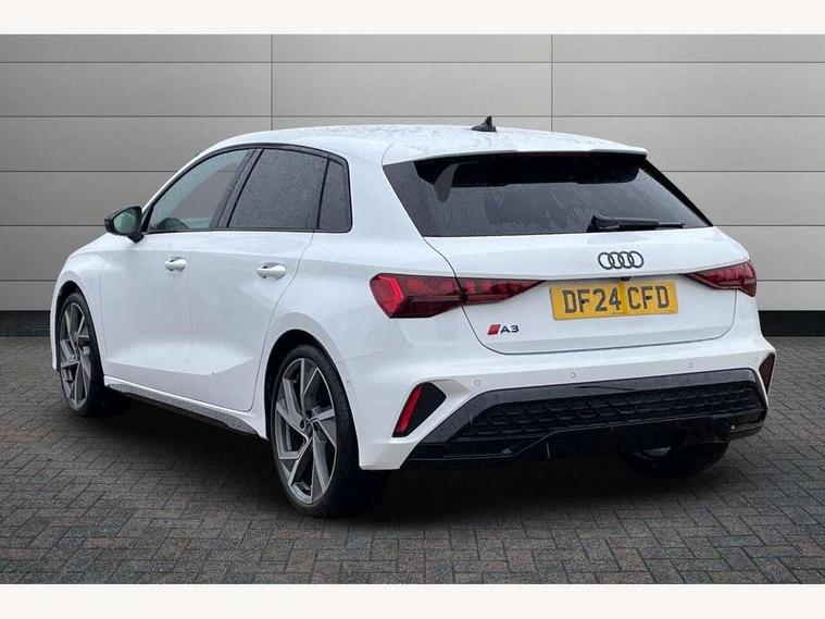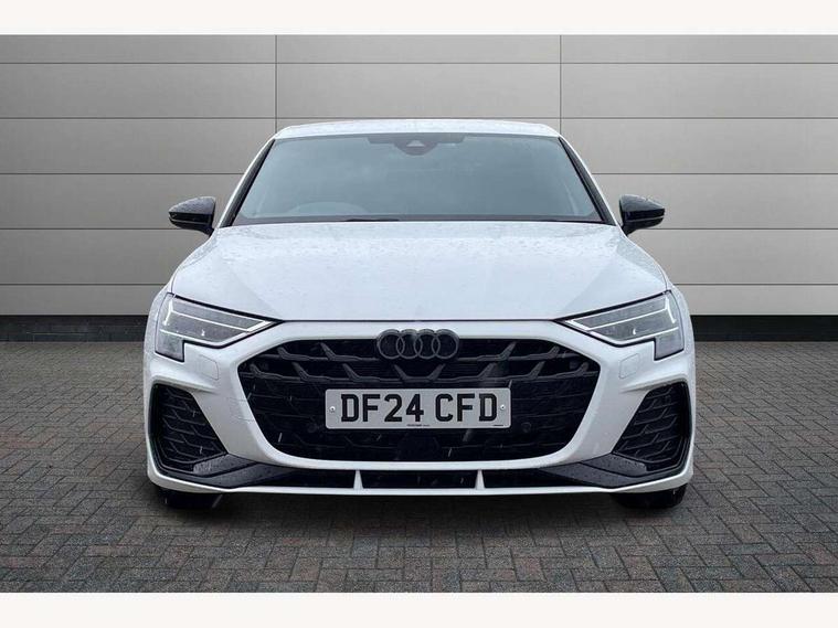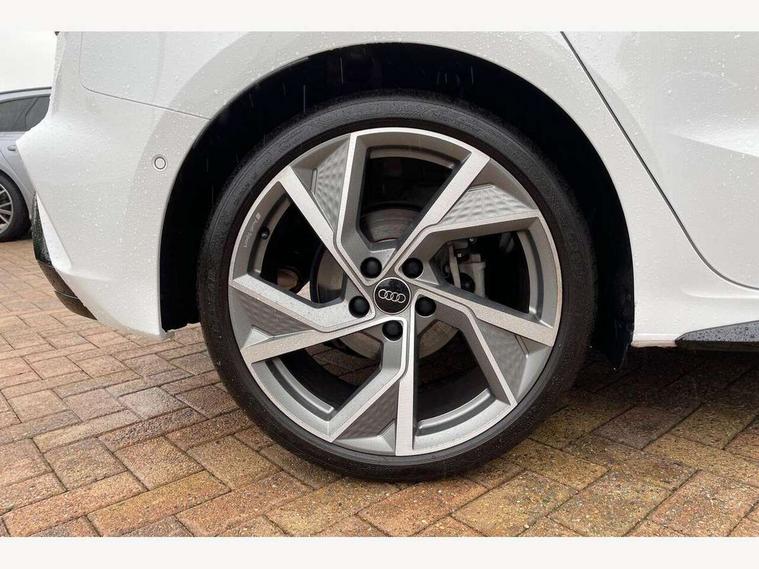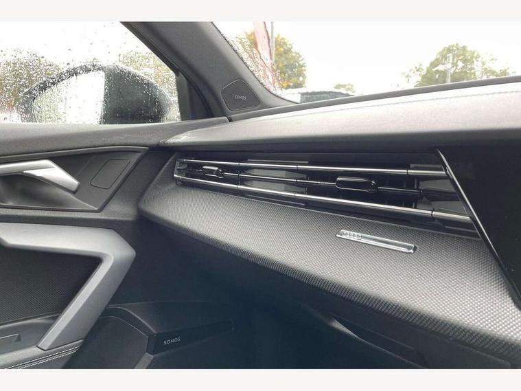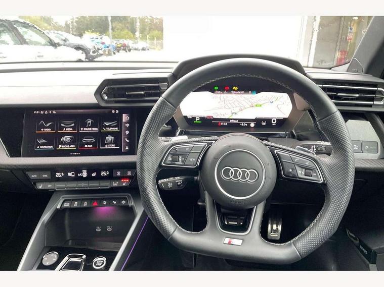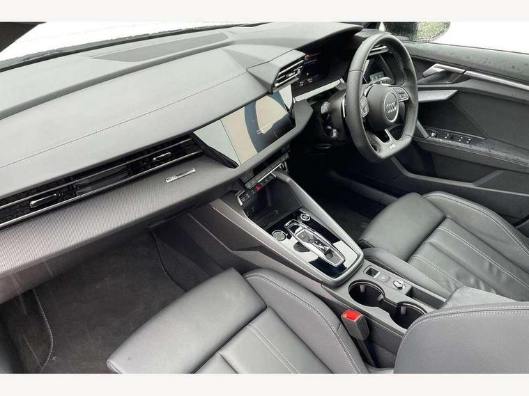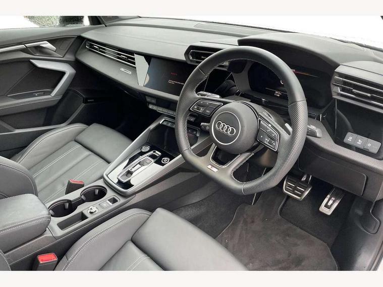 Adjustable speed limiter, Audi drive select, Audi smartphone interface with app store includes wireless Apple carplay, Android auto and Amazon alexa integration, Audi virtual cockpit plus - 12.3" full HD resolution dynamic digital instrument cluster, Automatic start/stop system with recuperation, Bluetooth interface, Camera based traffic sign recognition, Collision avoidance assistant, Cruise control, Distraction and Fatigue warning, e-Call (emergency call), Electromechanical power speed sensitive steering, Lane departure warning system, MMI Navigation Plus with high resolution 10.1" colour touch screen display, Park Assist with parking system Plus, Service indicator, Tailgate, Trip computer, Voice control system with natural language interaction, Sports suspension, Audi Phonebox light with wireless charging, Audi sound system - 10 loudspeakers including centre loudspeaker and subwoofer, DAB Digital radio, USB ports with charging function in the rear, Acoustic glass windscreen, Anthracite grey Audi rings (front and rear), Audi beam uses LEDs to project the Audi logo onto the ground as you exit your A3, Auto dimming frameless rear view mirror, Black accents front and rear bumpers, Black accents in the area of the Audi single frame grille, Black accents window trims strips, Electrically adjustable/heated/folding/auto dimming door mirrors with integrated LED indications + kerb view function for passenger side, Exterior model badging, Front electric windows, Heat insulating glass windscreen, Illuminated door sills with aluminium inserts at the front with S logo, LED 3rd brake light, LED daytime running lights, LED headlights with LED rear lights and dynamic rear indicators, Light and rain sensors, Privacy glass - dark tinted rear window, rear door and side windows, Rear electric windows, Rear side wing doors, Rear wiper, S roof spoiler, 12V socket and storage compartment in front centre console, 3 seat bench in 2nd row, 3 spoke flat bottomed leather multifunction sport steering wheel with gear shift paddles, 3-zone deluxe automatic air conditioning, 4 way electrically adjustable lumbar support for driver and front passenger, 40/20/40 split folding rear seat bench, Black cloth headlining, Front and rear centre armrest in artificial leather, Front and rear headrests, Front/rear floor mats, Heated front seats, Height and reach adjustable steering wheel, Manual boot compartment lid, Manually adjustable front seats, S badging on the steering wheel, Seat side bolsters, Single front passenger seat, Stainless steel pedals and front footrest in black, Twin leather upholstery with front sports seats S embossed logo, Aluminium interior elements pack - A3 Sportback, Multi-coloured LED interior lighting pack - A3, 3x3 point rear seat belts, Driver and front passenger airbag with passenger airbag deactivation, Electronic Stabilisation Control (ESC) including ABS, ASR and EDL, First aid kit with warning triangle and 2 safety vests, Front side airbags with head airbags and interaction airbag, Hill hold assist, Pre-sense front with pedestrian and cyclist detection, Seatbelt monitoring, Tyre pressure loss indicator, Anti theft alarm, Anti-theft wheel bolts, Electronically operated child locks, Immobiliser, Remote control central locking, Inlays in black Impressum woven textile,