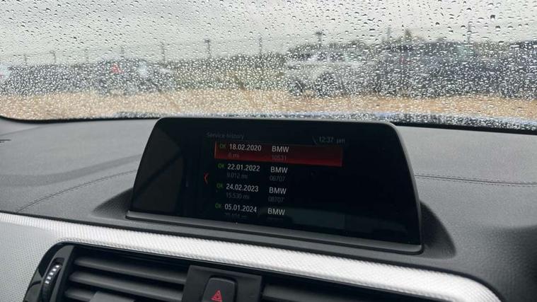 Auto start-stop, BMW Online services, BMW remote services, BMW Teleservices, Door/boot open warning, Front and rear Brake pad wear indicator, Instrument cluster with speedometer with miles per hour read out, tachometer and fuel gauge, Lights on warning by audio warning signal when ignition is switched off, Oil sensor for level and grade, warning by check control system, Oil temperature gauge, On board computer, Optimum shift indicator, Outside temperature display, Personal Profile, Real time traffic information, Service interval indicator, Speed limiter, 8 speed automatic transmission with electronic selector lever and steptronic sequential manual mode, Battery age recognition function, Diesel particulate filter, Incorrect fuelling protection, Oil dipstick, BMW professional radio/CD/MP3, DAB Digital radio, 2 speed adjustable intermittent wipers with wash/wipe function, Automatic headlight beam throw control, Automatically dimming rear view mirror, Body colour bumpers, Body colour door handles, Body colour door mirrors, Body colour roof mouldings, Chrome exhaust tailpipe, Clear lenses direction indicator lights, Darkened rear lights with LED light bars, Daytime running lights, Direction indicator side lights integrated exterior mirrors, Door mirror integrated indicators, Door sill finishers with M designation, Dynamic brake lights, Electric front and rear windows with fingertip open/close + anti-trap all round, Follow me home headlights, Front air inlet with high gloss black finish, Green tinted heat protection glazing, Heated, electrically adjustable exterior mirror aspheric on driver side, convex on passenger side, High gloss shadow line, High level third brake light, LED front fog lights, Lightweight engineering, M aerodynamic body styling, M logo designation in chrome on left and right front wings, Model specific design elements, Rain sensor with automatic headlight activation, Rear fog lights, Reversing light in rear light cluster, Visible VIN plate, Welcome lighting, 12V sockets in front centre console and passenger footwell, 2 lashing eyes in luggage compartment at sill, 4 grab handles, Anthracite Velour front floor mats, Folding storage compartment with glasses holder + coin tray, Front and rear side armrests integrated into door trim, Front cupholders x 2, Front door storage bins, Front head restraints, Front sliding armrest, Front sports seats manual seat height, backrest, tilt and headrestrain height adjustable + electric adjustable for backrest side bolster, Gearshift lever with M designation, Glove box handle with chrome surround and locking key, Glovebox with lid, Interior light in front centre interior mirrors and rear centre auto interior light activation when door is opened when ignition switched off, Leather gearknob and handbrake lever, Luggage compartment access via BMW roundel, M Sport multifunction leather steering wheel, Manual steering wheel column adjustment, Rear centre armrest, Rear head restraints, Storage compartment in rear centre console, Central locking switches door, fuel filler flap and luggage compartment, 2 rear 3 point safety belts, Active differential brake (ADB), electronic differential lock in DSC-OFF mode, Anti-lock braking system (ABS) with brake assist, Automatic Stability Control (ASC), Battery safety cut-off, BMW emergency call, Brake drying, Brake energy regeneration, Braking readiness, Child seat ISOFIX attachment for the two outer rear seats, Cornering brake control (CBC), Crash Sensor - activates hazard/interior lighting + unlocks doors, Driver/Front Passenger airbags, DSC+, Dynamic brake control, Dynamic Traction Control - DTC, Front passenger manual airbag deactivation, Front pyrotechnic belt tensioners and belt force limiter, rear coaded belt buckles, Front seat belts warning, Front seatbelt force limiters, Front seatbelt pretensioner, Front side airbags, Hill start assist, Rear disc brakes, Seatbelt security check for driver and front passenger, Side impact protection, Twin horns, Tyre pressure monitoring system, Ventilated front disc brakes, Warning triangle and first aid kit, Blue remote control with integrated key inset, Drive away door locking, Electronic immobiliser, Locking wheel bolts, Remote control including two integrated key - one button for open/close all lockable content, windows and separate button for open luggage compartment, Remote control Thatcham category 1 alarm, Start/stop button with comfort go keyless engine start and auto start stop deactivation button, Reduced rolling resistance tyres,