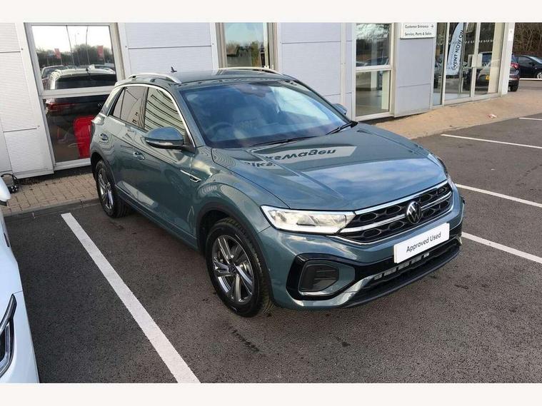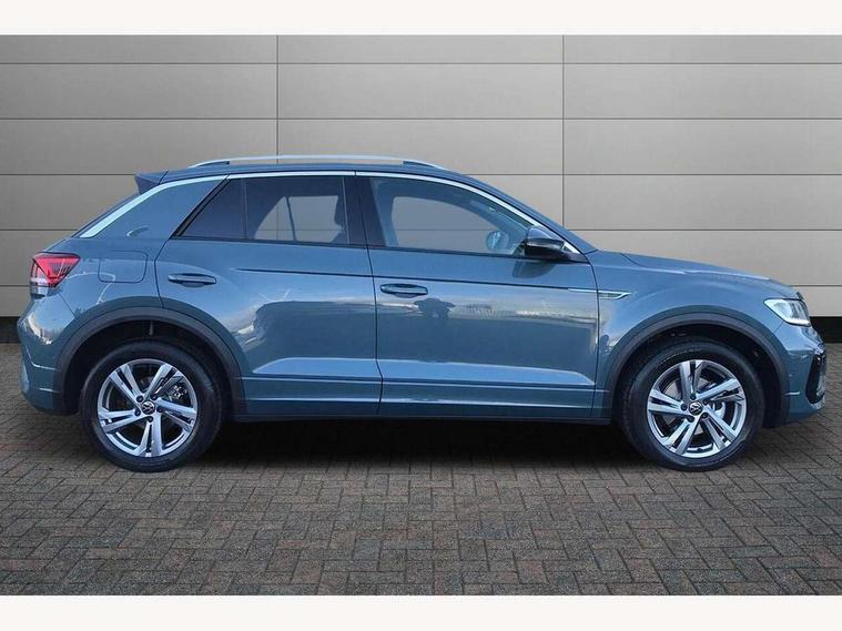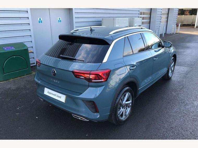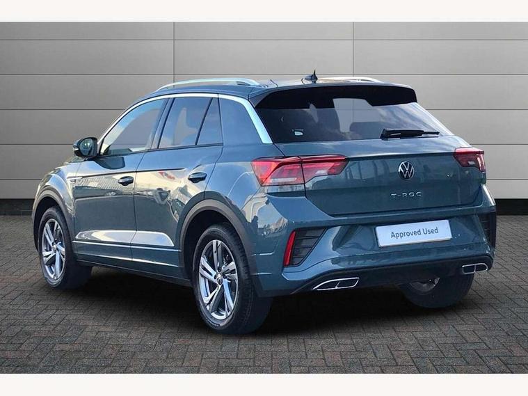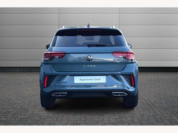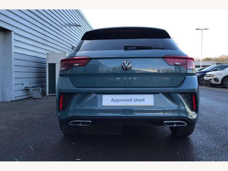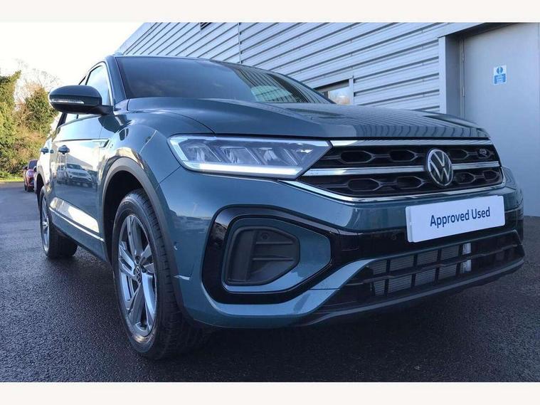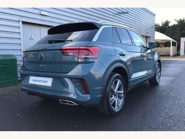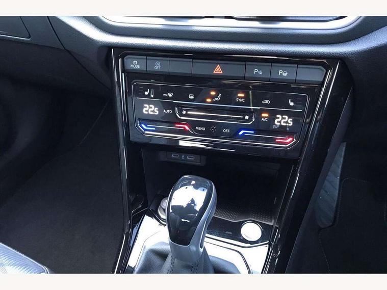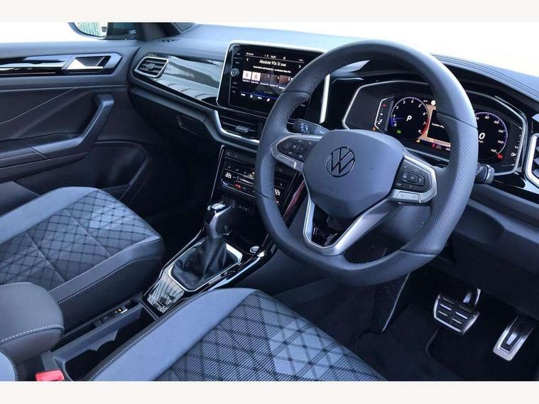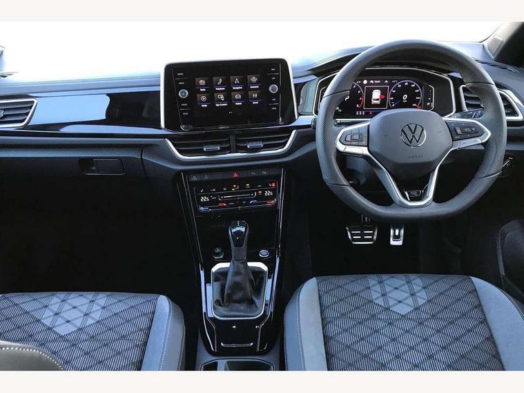 10.25" Digital cockpit pro, Advanced driver attention and drowsiness monitor, Emergency call service, Lane keeping system Lane Assist, Mobile phone interface, Modified key software - reduce switch off time for key status change to Long no motion, Online services, Park assist including front and rear parking sensors, Service interval indicator, Tailgate/trunk lid release from outside, Think blue trainer driver tips and journey analysis, Warning sound and light for front seatbelts unfastened, Wireless app connect, Battery regeneration during braking, Start/stop function with battery regeneration, DAB Digital radio, Diversity antenna for FM reception, Front and rear 6 speakers, Music playback - MP3, WMA and AAC files, Premium USB cable in choice of either Apple or Android smartphone compatibility, SD card slot, Simultaneous pairing of 2 compatible mobile devices, Title and cover art display, We Connect and We Connect Plus functionality, Auto dimming interior rear view mirror, Automatic hazard lights activation under emergency braking, Automatic headlight control with LED separate daytime running lights with coming/leaving home function, Body coloured exterior mirror housings and door handles, Electrically adjustable and heated door mirrors, Extended roof spoiler, Exterior mirrors aspherical on driver side, convex on front passenger side, External USB type C socket and charging sockets, Front windscreen wiper with intermittent wipe and 4 position delay, Heated rear window, LED 3rd brake light, LED rear combination lamps, LED rear number plate lights, Power windows with comfort operation and circuit breaker, Privacy glass for rear side windows and rear window, R-Line design body coloured bumpers, Rain sensor, Rear exhaust tailpipe, Rear fog light on one side and reversing lights on both sides, Rear side wing doors, Rear wash/wipe with intermittent wipe setting, Remote electrically foldable door mirrors, puddle lights and reverse activated passenger's door mirror, 12V power socket in centre console, 3 rear head restraints, 3 seat bench in 2nd row, 4 load lashing points in luggage compartment, Air care climatronic air conditoning system with active combination filter and 2-zone temperature control, Black roof lining, Chrome plated decorative trims, Chrome plated radiator grille inserts, air vent surrounds and light switch surrounds, Door and side trim panel with leatherette insert, Front + rear carpet mats, Front centre armrest, Front cupholders x 2, Front footwell illumination, Front reading light, Front scuff plates with R Line logo, Front seat back storage pockets, Glove compartment door with light, Instrument lighting, white adjustable panel illumination, Interior ambient lighting and surround lighting, Interior light delay, Isofix child seat preparation, Leather gearshift handle, Load-through provision with cup holder when folded down ('Unsplit rear seat bench, split folding backrest, with centre armrest), Luggage compartment lighting, Single front passenger seat, Stainless steel pedals, Storage compartment in left and right luggage area, Storage compartment in rear doors, Storage compartments in driver and front passenger doors, Sunvisors with illuminated vanity mirrors, Variable boot floor, height adjustable and removable, Driver assistance pack without proactive passenger protection - T-Roc, 3 point height adj front seatbelts + pretensioners, 3 point seatbelts in outer rear with ECE label, ABS, Child locks on rear doors, City emergency braking and pedestrian monitoring, Driver and front passenger airbag with front passenger airbag deactivation, Driver and front passenger safety-optimised head restraints, Drivers seatbelt reminder, Electronic parking brake, Electronic Stability Control (ESC) inc EDL (Electronic Differential Lock) and ASR (Traction Control), Front and rear passengers curtain airbag system including front side airbags, Hill start assist, Predictive pedestrian protection, Rear disc brakes, Two tone horn, Tyre pressure loss indicator, Volkswagen roadside assistance, Piano black decorative inserts in dashboard and front door trim panels, Trims for alloy wheels,