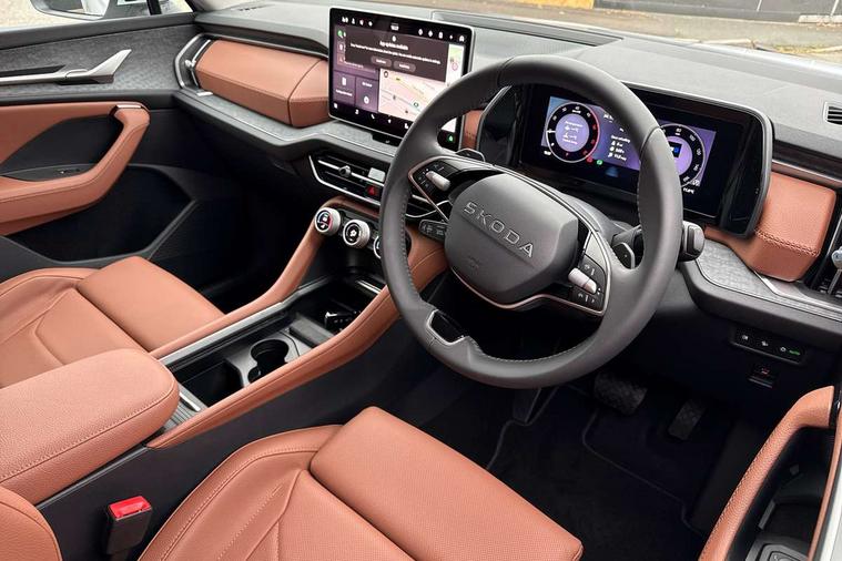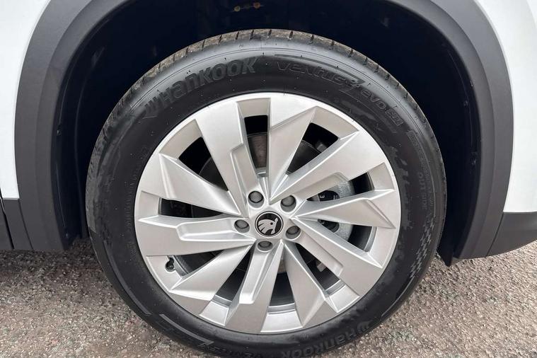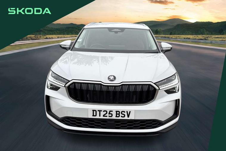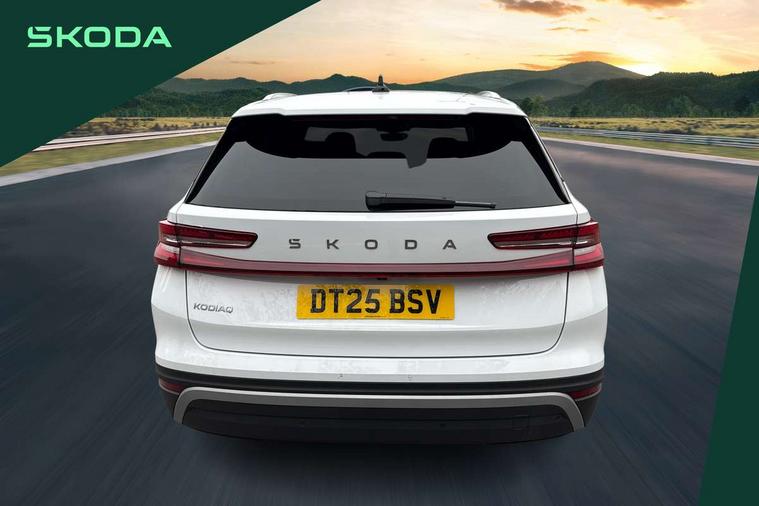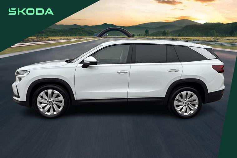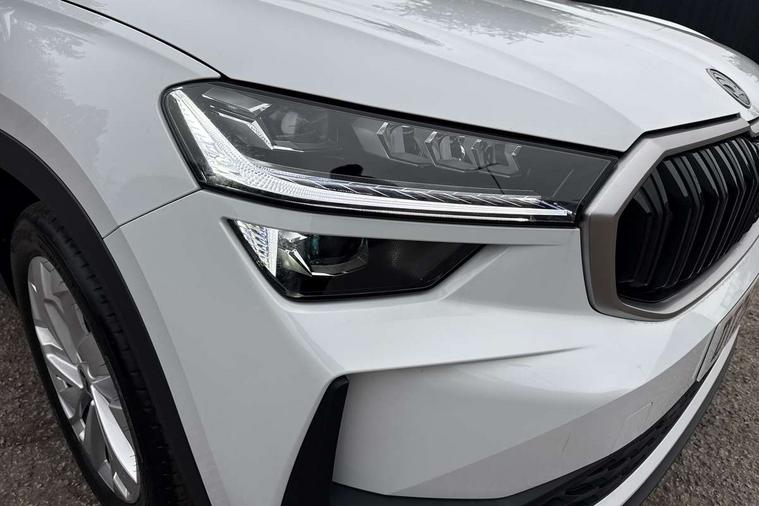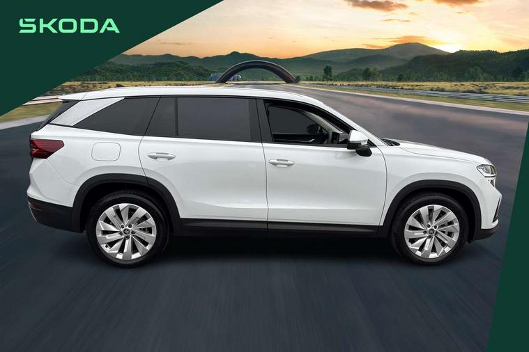 13" satellite navigation touchscreen display, Blind spot detection with door exit warning, Bluetooth system, ChatGPT functionality, Driver alert - Fatigue and drowsiness monitor, Dry display cleaner, Emergency call, Front and rear parking sensors, Front cross traffic assist, Lane assist, PAS, Rear traffic assist, Tailgate unlocking from outside, Traffic sign recognition, USB C Port x 2 in front centre console, Virtual Cockpit - 10.25" digital display, Voice control system, Wireless charging for two smartphones (15W) with cooling function, Wireless SmartLink for Apple CarPlay and Android Auto, Stop/start function, 2x USB-C in the rear, DAB Digital radio, Aero front windscreen wipers with intermittent function, Auto dimming rear view mirror, AWL (all weather lighting) and all weather light with cornering function, Black wheel arch surrounds, Body colour bumpers, Body colour door mirrors and handles, Cornering light and poor weather light, Electric folding /adjustable/separted heated/folding door mirrors, auto dimming with boarding sports and memory function, Electric front and rear windows, Exterior black decorative trims, Heat insulating glass in windshield, Heated rear window, Ice scraper in fuel tank cap, Invisible tailpipe, LED daytime running lights, LED third brake light in rear spoiler, Light assistant with automatic headlight control and coming home feature, Logo projection in door mirrors, Privacy glass, Rear roof spoiler, Rear side wing doors, Rear window wiper, Red decorative strip between rear LED lights, Safety reflectors on front and rear doors, Unique dark chrome design logo on alloy wheels, Window control switches with black trim, Windscreen wipers with rain sensor, Without engine designation, 1.5l bottle holder points in all door, 1x centre rear reading light, 2 seat bench in 3rd row, 3 configurable smart dials with 32mm coloured display, 3 seat bench in 2nd row, 4 foldable roof handles with rear coat hooks, Ambient interior lighting - Dashboard, front-door stowage compartments, front and rear door panels and footwell lighting, Automatic gear selector on steering column, Chrome interior door handles, Driver/front passenger reading lights, Fabric headlining, Fixed bench 40:60:40 split folding backrests, Front and rear floor mats, Front centre armrest with jumbo box storage compartment, cup holder and 12V socket, Height adjustable front headrests, Isofix child seat fittings in outer middle row rear seats and front passenger with top tether, Manually adjustable steering column, Pollen filter, Rear centre armrest with cupholders, Rear seat boot backrest release, Single front passenger seat, Skoda lettering on steering wheel, Storage pocket including mobile phone pockets on the backs of the front seats, Sunvisors with illuminated vanity mirrors, Three rear height adjustable headrests, Ticket holder on A Pillar, Tri zone climate control, Umbrella in door panel x1 made from sustainable materials, Upper and lower glovebox with card holder and coin compartment, USB C port by rear view mirror for charging only (15W), Exterior styling pack - Kodiaq, Auto door release and activation of warning lights in the event of an accident, Driver and front passenger airbag with knee airbag and front passenger airbag deactivation, Electric child locks, Electronic parking brake, ESC (incl. ABS+EMD+MSR+ASR+EDL+HBA+DSR+RBS+ESBS+MCB+TSA+XDS), Front assist with braking reaction to vehicles, pedestrians and cyclists, Front disc brakes, Fuel cut off safety device, Height adjustable front 3 point seatbelts + pretensioners, Hill hold assist, Junction assist with automatic emergency braking, Rear disc brakes, Safety vest holder in door, Seat belt reminder for all seats, Three point rear seat belts, Two tone horn, Tyre pressure monitor, Anti-theft wheel bolts, Immobiliser, Remote central locking with 2 keys,