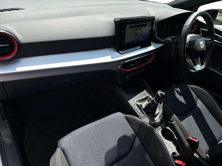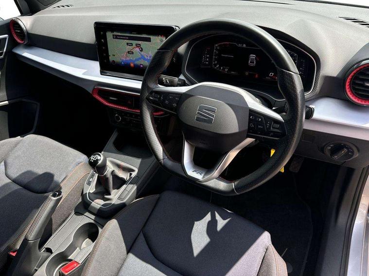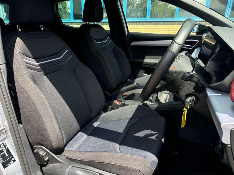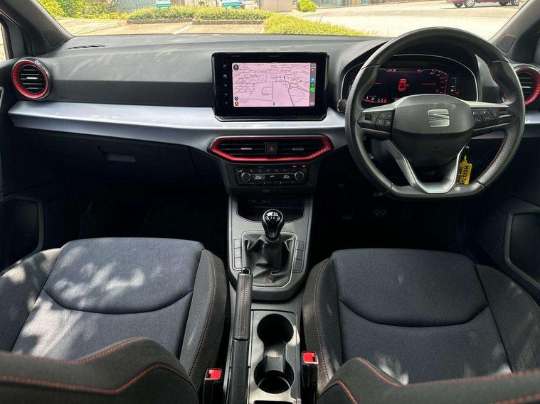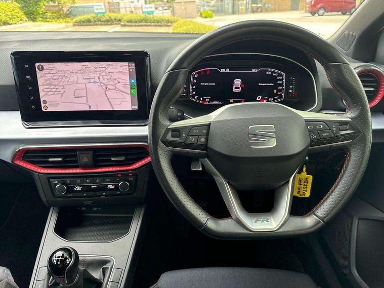 'Lights On' Reminder warning buzzer, 8" Digital cockpit, 9.2" touchscreen navigation system with type C USB socket, Voice control and DAB/AM/FM radio, Auto start and stop system, Bluetooth audio streaming with handsfree system, Digital clock, E-call, Full link smartphone integration with mirror link, wireless apple carplay, Google android auto + USB Type C cable for apple and android devices, Lane assist, Low fuel warning light, Outside temperature gauge, Power Steering, Seat connect with safety, service, remote and online, SEAT drive profiles and ECO function, SEAT logo boot release, Speed limiter, Trip computer, Sports suspension, Auxiliary input socket, Radio/MP3 player, SD card slot, Steering wheel mounted controls, Anti theft roof antenna, Auto dimming rear view mirror, Automatic rain sensing wipers, Black door mirrors, Body colour bumpers, Body colour door handles, Brilliant black window surrounds, Dark tinted rear windows, Electric adjustable/heated/folding door mirrors, Electric front windows, Electric headlight adjustment, Electric rear windows, Front/rear fog lights, FULL LED automatic headlights with dynamic headlight range control, coming and leaving home, LED daytime running lights, LED tail lights, Rear side wing doors, Rear spoiler with FR twin exhausts, Rear wiper, Third brake light, 3 seat bench in 2nd row, 60/40 split folding rear seat, Ambient interior lighting, Chrome detailing and black headlining, Cloth upholstery, Dual zone climate control with combination filter, Front courtesy lights, Front cupholders x 2, Front reading lights, Gear shift indicator, Glovebox, Height adjustable front and rear headrests (five), Height adjustable front seats, Height/reach adjust steering wheel, Illuminated air vent surrounds, Illuminated boot, Instrument lighting with brightness control, Isofix, Leather multifunction flat bottomed sports steering wheel, Passenger sunvisor, Single front passenger seat, Sports seats, Sunvisors with mirror and driver side card holder, 3 point seatbelts on all 3 rear seats, ABS, Active front headrests, Child locks on rear doors, Electronic stability control, Energy recovery system, Front assist forward collision warning and autonomous emergency braking, Front driver and passenger side airbags with curtain airbag and front passenger airbag deactivation, Hill hold control, Multi-Collision braking, Seat belt reminder for front and rear seats, Tiredness recognition system, Tyre pressure monitoring system, Electronic engine immobiliser, Locking wheel bolts, Perimeter alarm and interior monitoring with backup horn and tow away protection, Remote central locking + deadlocks, 17" alloy wheels in Brilliant silver,