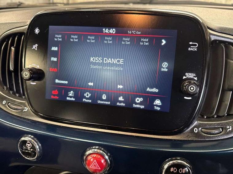 Apple car play/Android Auto, Cruise control, E-call, External temperature gauge, Power assist steering, Rear parking sensor, Speed limiter, Stop/start system, Trip computer, 4 speakers, 7" HD Touchscreen Radio, Bluetooth, USB and DAB, Rear speakers, 3rd brake light, Auto headlights, Body colour bumpers, Body coloured electrically adjustable door mirrors, Chrome plated exterior door handles, Dolcevita badge on fender, Dusk and rain sensors, Electric front windows, Fixed glass sunroof with sunblind, Front fog lights, Halogen headlamps, Heat insulated glass, Heated rear windows with wash wipe, LED daytime running lights, Rear side wing doors, Rear wiper, 1 passenger grab handle, 2 seat bench in second row, 50/50 split folding rear seats with height adjustable rear headrests, Air conditioning, Auxilliary 12V power socket, Chrome kit, Front headrests, Height adjustable drivers seat, Height adjustable steering wheel, Isofix child seat preparation, Single front passenger seat, Techno leather steering wheel with audio controls, 7 airbags - Driver, passenger, side, window and drivers knee airbags, ABS/EBD, ESC + ASR/MSR + HBA + Hill holder, Passenger airbag deactivation system, Traction control, Tyre pressure monitoring system, Automatic door locking, Immobiliser, Locking fuel filler cap, Remote central locking, 15" Alloy wheels,