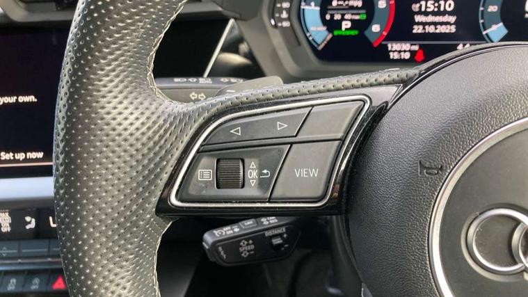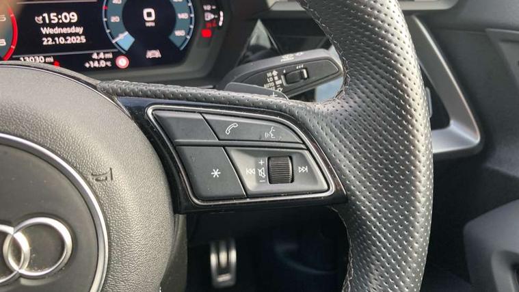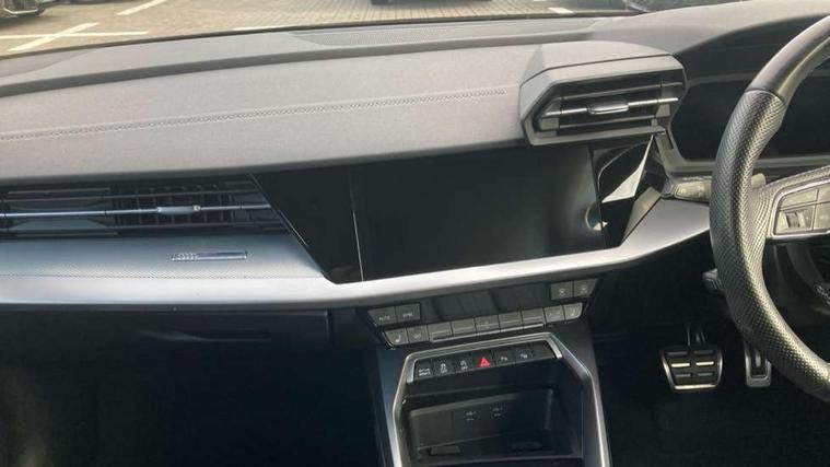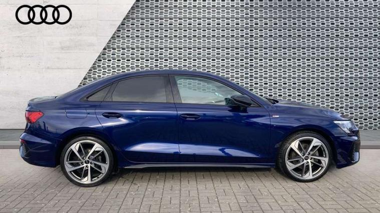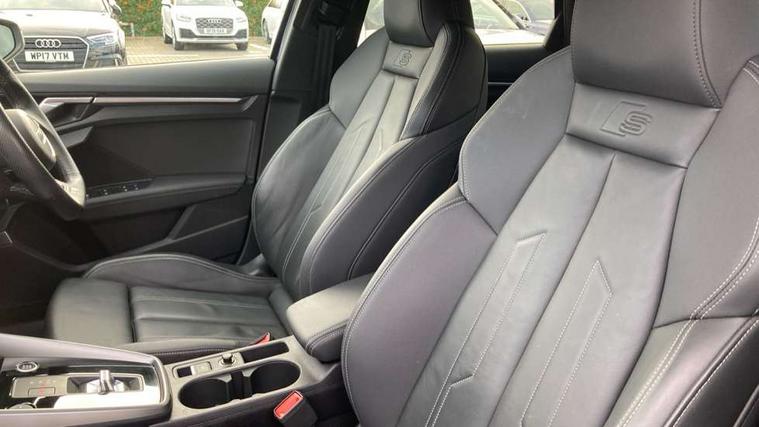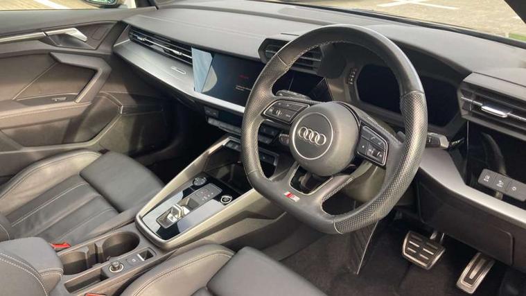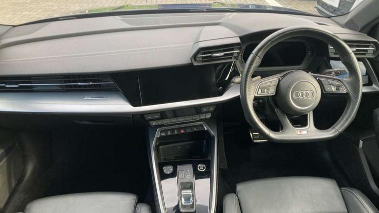 Audi drive select (Auto, Comfort, Dynamic, Efficiency and Individual), Audi smartphone interface, Audi Virtual Cockpit - 10.25" digital and colour instrument cluster, Automatic start/stop system with recuperation, Bluetooth interface, Camera based traffic sign recognition, Collision avoidance assistant, e-Call (emergency call), Electromechanical power speed sensitive steering, Lane departure warning system, MMI Navigation Plus with high resolution 10.1" colour touch screen display, Service indicator, Trip computer, Voice control system with natural language interaction, Diesel particulate filter, Sports suspension, 2xUSB-C connection with data and charging functions, 6 passive loudspeakers, CD player, DAB Digital radio, 3rd brake light, Acoustic glass windscreen, Audi beam uses LEDs to project the Audi logo onto the ground as you exit your A3, Auto dimming frameless rear view mirror, Electrically adjustable/heated/folding/dimming door mirrors with kerb view includes integrated LED indications + kerb view function for passenger side, Front electric windows, Illuminated door sills with aluminium inserts at the front with S logo, LED daytime running lights, LED headlights with LED rear lights and dynamic rear indicators, Light and rain sensors, Model and engine designation badges at rear, Privacy glass - dark tinted rear window, rear door and side windows, Rear boot, Rear electric windows, Rear side wing doors, S roof spoiler, 12V socket and storage compartment in front centre console, 3 seat bench in 2nd row, 3 spoke flat bottomed leather multifunction sport steering wheel with gear shift paddles, 4 way electrically adjustable lumbar support for driver and front passenger, 60/40 split folding rear seat bench, Black cloth headlining, Dual zone electronic climate control, Front and rear centre armrest in artificial leather, Front and rear headrests, Front/rear floor mats, Height and reach adjustable steering wheel, Interior lighting - glove compartment light and right hand side, Luggage compartment floor covering, Manual boot compartment lid, Single front passenger seat, Stainless steel pedals and front footrest in black, Twin leather upholstery with front sports seats S embossed logo, Aluminium interior elements pack - A3 Saloon, Black styling pack - A3 Saloon/Black edition, LED interior lighting pack - A3 Saloon, 3x3 point rear seat belts, Driver and front passenger airbag with passenger airbag deactivation, Electronic Stabilisation Control (ESC) including ABS, ASR and EDL, First aid kit with warning triangle and 2 safety vests, Front side airbags with head airbags and interaction airbag, Pre-sense front with pedestrian and cyclist detection, Seatbelt monitoring, Tyre pressure loss indicator, Anti theft alarm, Anti-theft wheel bolts, Electronically operated child locks, Immobiliser, Remote control central locking, Aluminium air vent surrounds, Dark spectrum aluminium inlays, accent surfaces in the dashboard and centre console in platinum grey silk effect paint finish, 19" 5 arm trapezoid design alloy wheels in matt grey with diamond cut finish,
