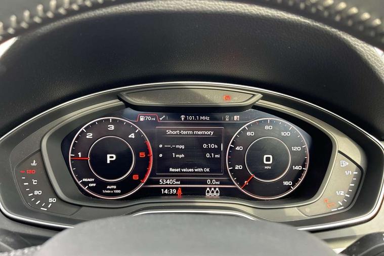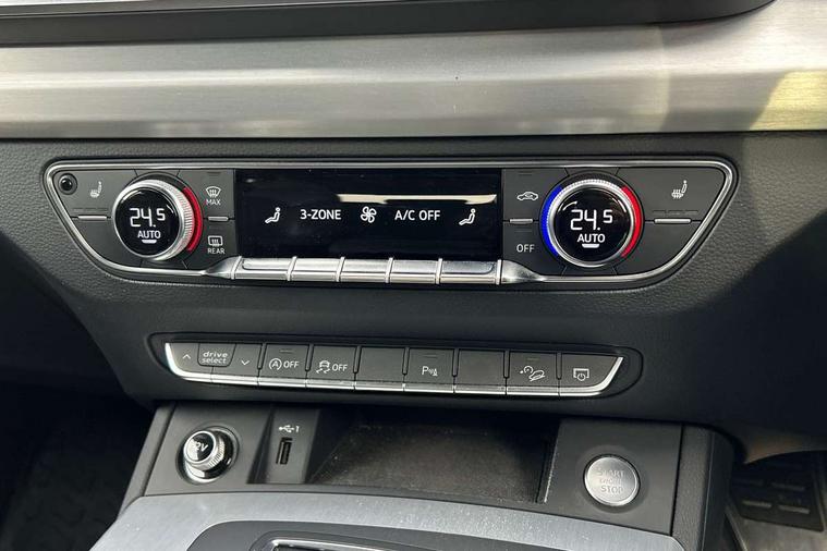 Audi connect, Audi drive select, Audi smartphone interface, Driver information centre with colour display in instrument panel, Electric power steering, Power tailgate, Remote electric boot opening/closing, SD card based MMI navigation, Service interval indicator, Voice control system, Diesel particulate filter, 2 USB ports, Audi sound system, Auxiliary input socket, CD player, DAB Digital radio, MMI radio plus with 7" colour MMI screen and MMI controller, Acoustic windscreen, Aluminium roof rails, Aluminium sill plates, Auto dimming rear view mirror, Black high gloss front air inlet in matt aluminium effect, Body colour bumpers, Body colour door mirrors, Body colour rear diffuser insert, Chrome exhaust tailpipe, Electric headlight adjustment, Electrically adjustable and heated door mirrors, Front and rear electric windows, Front fog lights, Headlight range control, Headlight washers, Honeycomb side air inlet in titan black, Light and rain sensor for auto activation of lights and windscreen wipers, Loading sill protector in stainless steel, Privacy glass with front acoustic glazing, Rear diffuser strip in matt aluminium silver, Rear spoiler, Rear wiper, S Line side skirts, Selenite silver underbody guard, Twilight grey matt radiator grille with matt aluminium horizontal chrome struts, 3 rear headrests, 3 zone climate control, 4 way electric lumbar support for driver and front passenger, 40:20:40 split folding rear bench seat, Black cloth headlining, Front centre armrest with 12v socket, Front sports seats, Front/rear floor mats, Height adjustable driver's seat, Height adjustable front head restraints, Illuminated door sills, Isofix front passenger and rear seat preparation, Jack and tool kit, Load compartment cover, Luggage compartment carpet, Matt selenite silver door inserts, Perforated leather gearknob, Reach + rake adjustable steering column, Removable luggage compartment floor, Removable net partition, Roller blind loadspace cover, Stainless steel pedals, Sunvisors with vanity mirrors, Non Smokers pack, 3 point seatbelts on all seats, ABS, Curtain airbags, Driver and passenger airbags, Driver and passenger side airbags, Electromechanical parking brake, ESC with ASR, ESP, First aid kit, Front passenger airbag deactivation, Hill descent control, Seat belt force limiter, Seatbelt warning lamp, Traction control, Tyre pressure monitor, Warning triangle, Keyless Go access/ignition system, Locking wheel bolts, Remote central locking, Thatcham category 1 alarm + immobiliser, Contrast stitching,