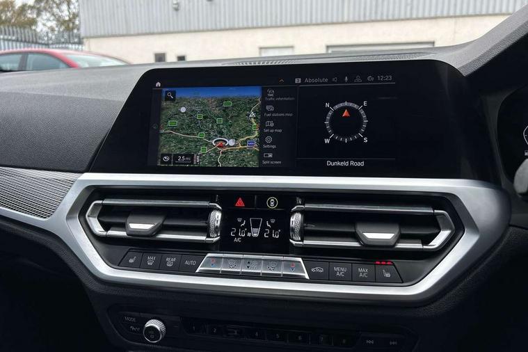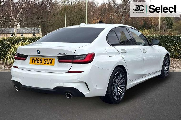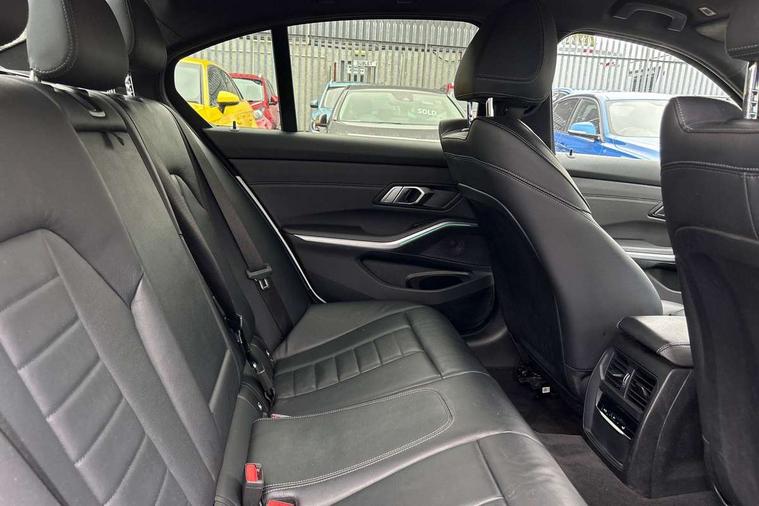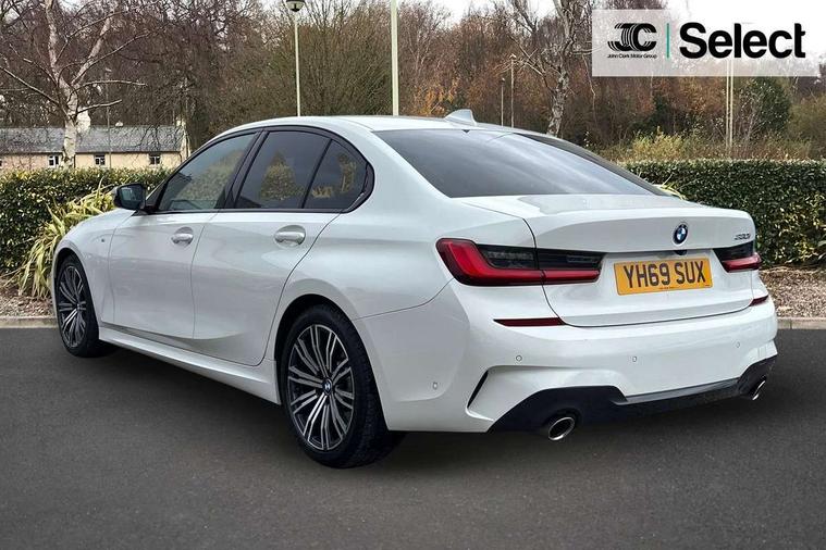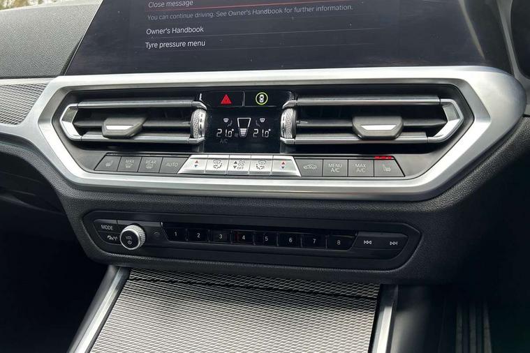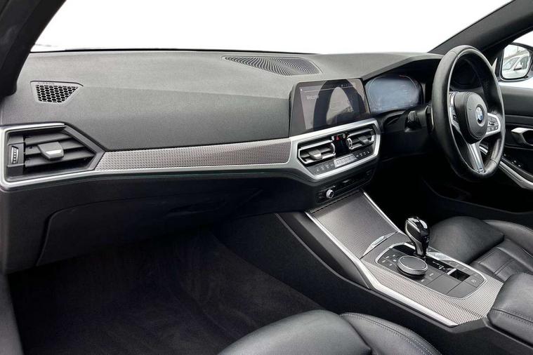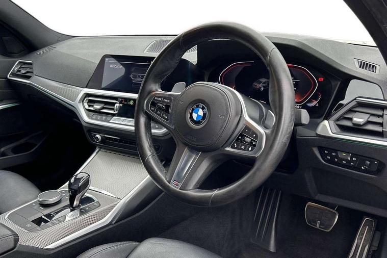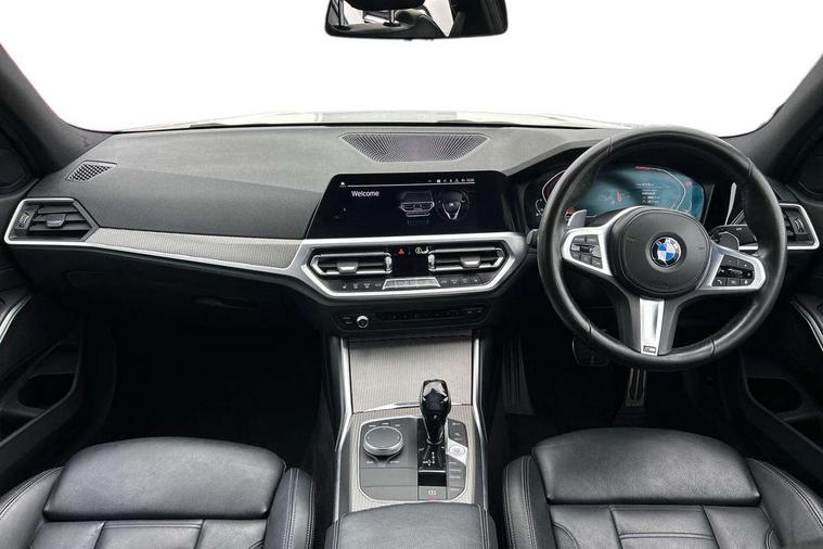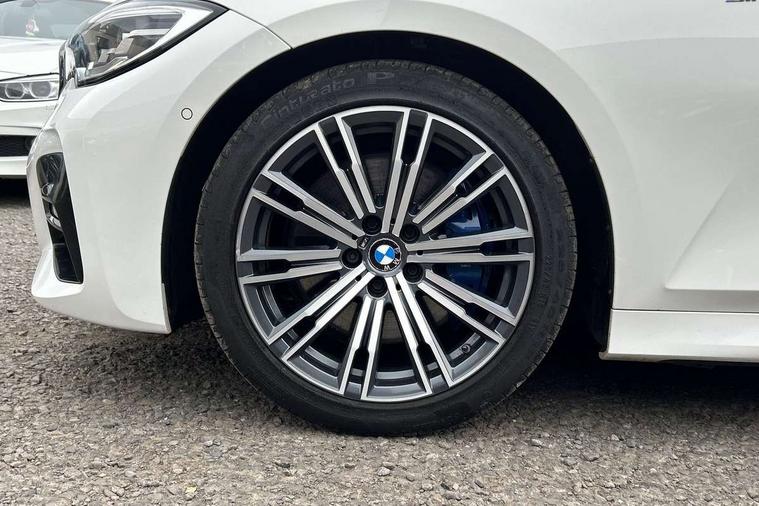 Active guard plus, Attentiveness assist, Auto start-stop, BMW iDrive controller on centre console, BMW Live Cockpit Professional sat nav system including 10.25" high resolution display and Intelligent Voice Assistant, BMW Online services, BMW Teleservices, Brake pad wear indicator in front and rear, Check Control warning system for monitoring of lights and door/luggage compartment open warning, Condition based service, Instrument cluster with speedometer with mph readout, tachometer, fuel gauge and oil temperature gauge, Oil sensor for level and grade, On board computer - average speed+fuel consumption, service interval, clock/date, odometer/trip meter, outside temperature display and ice warning, Optimum shift indicator, Personal Profile, Variable sport steering, Battery cut-out switch, Double VANOS, Drive performance control with ECO PRO comfort and Sport+ mode, Electronic differential lock, High precision injection, Larger capacity fuel tank, M sport suspension, Petrol Particulate Filter, Sport automatic transmission with steering-wheel mounted gearshift paddles and launch control, Stroke dependent dampers, DAB tuner, Acoustic glazing, Active airstream chrome frame kidney grille with 8 high gloss black vertical slats, Automatic headlight beam throw control with load dependent regulating reaction, dynamic compensation of braking dive and acceleration squat, Black roof mouldings, Body colour - fuel filler flap, front and rear bumpers, door handles and mirror caps with integrated turn indicator + bottom segment in matt black, Dynamic brake lights, Extended LED headlights, Exterior mirrors - electrically folding with anti-dazzle, Front and rear bumper system with replaceable deformation elements, Front and rear electric windows with open and close fingertip control, anti trap facility and comfort closing, Front black door sill finishers with BMW designation, Green tinted heat protection glazing, High gloss shadow line exterior trim, Interior rear view electrochromatic mirror with automatic anti dazzle function, LED front fog lights, Left and right split exhaust tailpipes, Lightweight engineering, M aerodynamic body styling, M designation on left and right front side panels, M designation side badges, Matt black exterior B pillar, Model designation on right side of tailgate, Rain sensor with automatic headlight activation, Shark fin antenna, Two part LED tailights in L-shape with components in smoked glass, brake light, LED turn indicator and rear fog light, Visible VIN plate, Welcome lights in interior and door handle area, Windscreen wipers with integrated washing jets, 12V power socket in front storage compartment, 2 front cupholder in centre console with clamping elements and matt black inlay, 3 rear seats with non folding headrests with 3 point seat belts, 3 spoke M leather steering wheel, 4 pieces lashing eyelets in luggage compartment, 40:20:40 split folding rear bench seat, Ambient lighting, Anthracite headlining, Armrest integrated in front and rear door trim + front centre console armrest, Centred top Luggage compartment lights, Four grab handles integrated in roof lining, Front and rear door pockets, Front and rear velour floor mats, Front head restraints, Front sport seats, Heated driver and front passenger seats, Height adjustable mechanically and infinitely variable steering column, Illuminated glove compartment with separate small compartment, Interior lighting - front centre over interior mirror with soft light, rear centre and front and rear footwell lighting, Rear centre armrest with 2 cupholders, Rear centre console with storage compartment and ventilation grille, Steering column length adjustment lever, Sunvisors with vanity mirrors and ticket pocket, Three zone automatic air conditioning, Through loading system with 40/20/40 split folding rear seat, Toolkit located in luggage compartment, Connected pack professional - 3 Series Saloon/Touring, M Aerodynamics pack - 3 Series Saloon/Touring, 2 tone horn, ABS, Automatic Stability Control (ASC), BMW emergency call, Brake assist function, Brake drying, Brake energy regeneration, Braking pre-tensioning, Child proof locking system in rear door, Child seat ISOFIX attachment rear outer seats, Cornering brake control (CBC), Crash sensor activating of airbags, Unlocking doors, hazard warning lights, interior light, safety battery terminal, Driver and front passenger side airbags, integrated in the door side seat backrest bolsters for all seat variants, Driver/Front Passenger airbags, Dynamic brake control, Dynamic Traction Control - DTC, Electromechanical parking brake with automatic drive away release and auto hold function, Front passenger manual airbag deactivation, Head airbags for all 4 outer seats, Hill start assist, M Sport braking system, Seat belt security check for driver and front passenger, Side impact protection, Three 3 point seat belts on all seats including front belt stopper, pyrotechnic belt tensioners and belt force limiters, Tyre pressure monitoring with three level warning strategy, Ventilated front and rear disc brakes, Warning triangle and first aid kit, Alarm system (Thatcham 1) with remote control and electronic engine immobiliser, Central locking switch for all doors, fuel filler cap and luggage compartment, Remote control with integrated key one button open/close vehicle and windows, sole opening of the luggage compartment lid and panic mode, Selectable automatic lock when driving away, Start/stop button with Comfort Go keyless engine start and auto Start/stop deactivation button, Vehicle key with M specific designation, Reduced rolling resistance tyres,