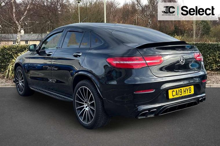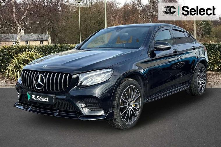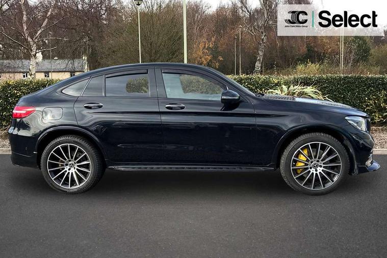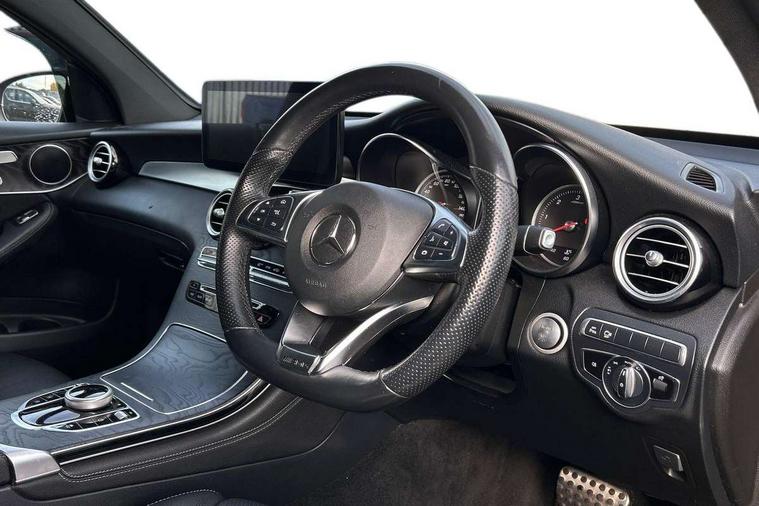 Active park assist with parktronic system, Attention assist, Bluetooth interface for hands free telephone, Collision prevention assist plus, Crosswind Assist, DYNAMIC SELECT with a choice of driving modes (ECO, Comfort, Sport, Sport+ and Individual), Garmin Map Pilot navigation system with SD card, touchpad and voice control, High resolution 7 inch multimedia colour display, Instrument cluster with 5.5-inch TFT multi-function display, Mercedes connect me with remote online services, Multi function trip computer, Outside temperature gauge, Power opening/closing tailgate, Remote boot release, Service indicator (ASSYST), Diesel particulate filter, 5 speakers, DAB Digital radio, Frontbass loudspeakers, Mercedes Audio 20 radio/single CD + telephone keypad, USB connection, Adaptive brake lights, AMG bodystyling front and rear aprons, side skirts, Automatic headlights, Body coloured bumpers, Chrome exterior trim, Chrome pins diamond radiator grille with integrated stars, Electric sliding glass sunroof, Electric windows one touch open/close, Electrically adjustable and heated door mirrors, Exhaust tailpipe finisher, LED daytime running lights, LED rear lamps, Privacy glass (to rear of B post), Rain sensor windscreen wipers, Range adjustable headlights, Rear wiper, Tinted glass all round, 2 cupholders in front centre console, 2 way rear head restraints, 3 spoke flat bottom multi-function AMG steering wheel in black nappa leather with chrome inserts, 4 way adjustable front head restraints, 4 way electric lumbar support for driver and front passenger, 40:20:40 split folding rear seats, Ambient lighting, AMG floor mats, AMG sports seats, Auto Mercedes-Benz child seat recognition sensor, Automatic climate control, Black roof lining, Dividing net - rear, Electric front seat height adjustment, Front armrest with storage box, Front door sills with Mercedes Benz lettering, Gearshift paddles, Heated front seats, Height/reach adjustable steering column, Lockable/illuminated glovebox, Rear top tether child seat ISOFIX attachment, Sports pedals with stainless steel surfaces and rubber studs, Sunvisors with illuminated vanity mirrors, Easy-pack load compartment cover, Interior lighting pack - GLC, Memory pack - GLC, Mirror pack - GLC, Storage pack - GLC, 3 rear 3 point seatbelts, ABS with Brake Assist, Active bonnet, Adaptive brake system, ASR, Black seat belts, Brake calipers with Mercedes-Benz lettering + perforated brake discs, Child proof door locks, Drivers knee airbag, Dual stage driver/passenger airbags, Electronic parking brake, ESP curve dynamic assist, Front and rear seatbelt reminder, Front passenger seat occupancy sensor, Front side airbags, Hill hold function, Tyre pressure monitoring system, Warning triangle and first aid kit, Window airbags, Alarm system/interior protection/immobiliser, Automatic door locking, Keyless entry and keyless start, Remote central locking, Tyre inflation kit,
