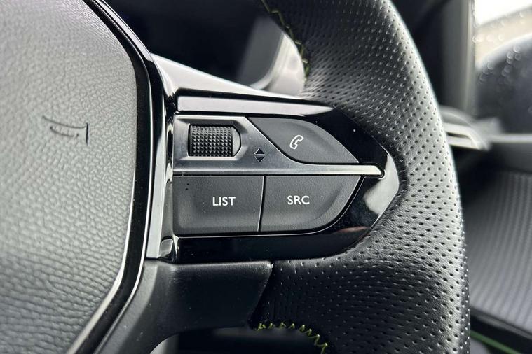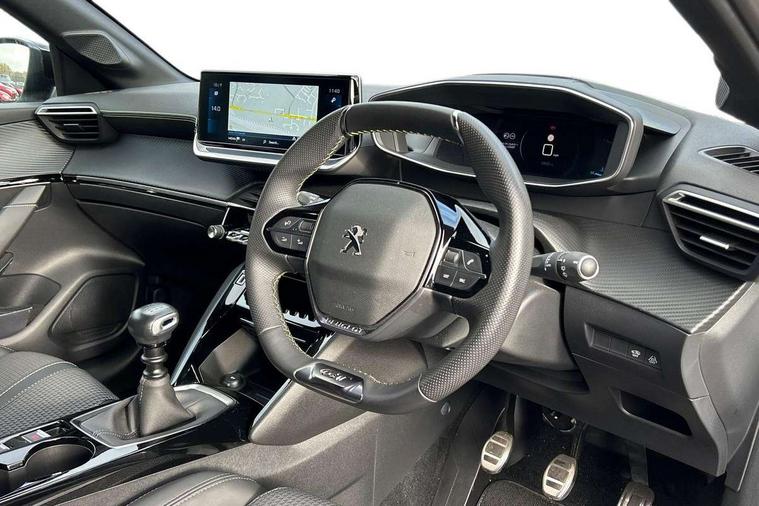 10" Capacitive colour touchscreen with connected 3D navigation, Bluetooth telephone facility, Driver attention warning, Exterior temperature indicator with ice warning, Lane keep assist, Mirror screen with mirror link, apple carplay and android auto, Multi function trip computer, PEUGEOT i-Cockpit with compact steering wheel, PEUGEOT i-Cockpit with configurable 3D headup instrument panel, PEUGEOT SOS and assistance, Push button start, Smart phone docking station, Speed limit recognition and recommendation, Start/stop system, Visio park assist 180 with colour reversing camera + front and rear parking sensor, 2 front USB socket with USB-C, 2x USB sockets in rear, 6 speakers radio with mp3 compatible, DAB Digital radio, Voice recognition for radio, navigation and telephony features, 2 X Rear number plate lights, Automatic hazard light activation upon heavy brake application, Automatic lights, Automatic windscreen wipers, Body coloured exterior door handles, Dark tinted rear side and tailgate windows, Diamond black rear spoiler (roof), Diamond Black roof, Electric front windows + one touch + anti-pinch, Electric rear windows with one touch/anti-pinch, Electrically adjustable, heated and power folding door mirrors, Follow me home headlights, Frameless electrochrome interior rear view mirror, Full LED headlights with smartbeam assist, Gloss black finish on B pillar, Gloss black rear cluster connecting strip, Gloss black wheel arch extensions, Gloss black window surround, GT model designation badging on C pillar, GT model designation badging on tailgate, Headlights left on audible warning, LED daytime running lights with 3 claw headlight with distinctive tooth design, LED side indicator lights integrated into door mirrors, LED third brake light, Model designation badges front and rear, Nera black door mirror shells, Peugeot scuff plates, Radiator grille - Dark chrome chequered and gloss black edge trim, Rear bumper with gloss black finish, Rear full LED 3D peugeot signature claw effect lights with daylight function, Rear lower bumper diffuser effect trim in gloss black, Rear reversing lights, Rear side wing doors, Rear windscreen wiper triggered automatically in reverse gear, Roof mounted aerial with fin design, Roof spoiler, Single chrome exhaust tailpipe, Tailgate with heated rear windscreen and wiper blade, Variable front intermittent wipers, 1/3 to 2/3 split folding rear seats, 12V socket, 3 seat bench in 2nd row, 8 Colour personalisable ambient lighting, Aluminium pedals and foot rest, Automatic air conditioning, Driver and front passenger seat manual adjustment in longitudinal and back rest angle, Driver and front passenger seat mechanical height adjustment, Driver and front passenger sport seats, Electric power steering with reach and rake adjustable steering column, Front and rear carpet mats in black with lime green stitch detail, Front centre armrest with storage compartment, Front LED interior light with 2 reading spotlights and rear interior light with timer, Gear shift indicator, High centre console with 2 cup holders, ISOFIX child seat mounting points on passenger seat, Lime green contrast stitching to armrest, front centre console, door panels and dashboard facia, Map pockets on the backs of the front seats, Mistral full grain perforated leather steering wheel with aikinite stitch detail and satin chrome 'GT' emblem, Piano keys gloss black plated toggle switches to access main functions of the vehicle, Piano keys gloss black plated toggle switches to access touchscreen functions, Rear centre headrest, Roof lining - Mistral black, Satin chrome gear lever with black stitching, Seatbelt unfastened on the move audible and visual alert for front and rear seats, Single front passenger seat, 3 rear 3 point seatbelts, ABS (Anti-lock Braking System) with EBD (Electronic Brakeforce Distribution) and EBA (Emergency Braking Assistance), Active safety brake with night function/cyclists/pedestrians, Adaptive driver and front passenger airbags with passenger airbag deactivation function, Child locking functionality on rear doors, Driver/front passenger side airbags, Electric parking brake, ESP with Hill Assist, Front and rear curtain airbags, Front and rear disc brakes, Front optimised safety headrests and 3 x rear retractable headrests with height adjustable, Front three point retractable seatbelts with force limiters, Tyre pressure sensor, Acoustic vehicle alert system (AVAS), Automatic door locking when moving off, Deadlock, Electronic code immobiliser, Remote central locking, Thatcham cat. 1 alarm with anti lift sensor, Carbon effect Dashboard, front and rear door panel finish, 17" Bronx two-tone alloy wheels, Space saver spare wheel,