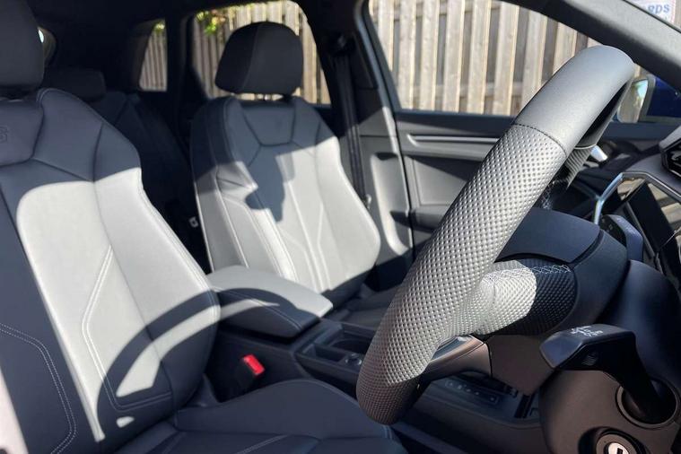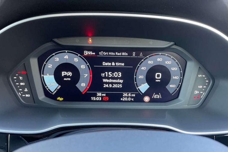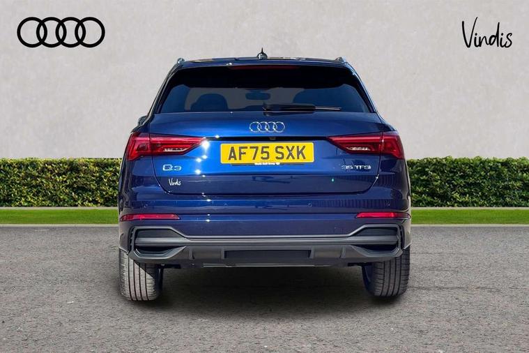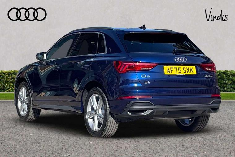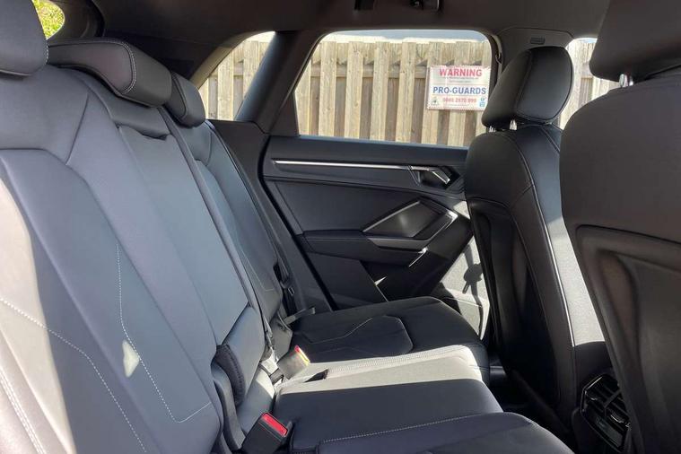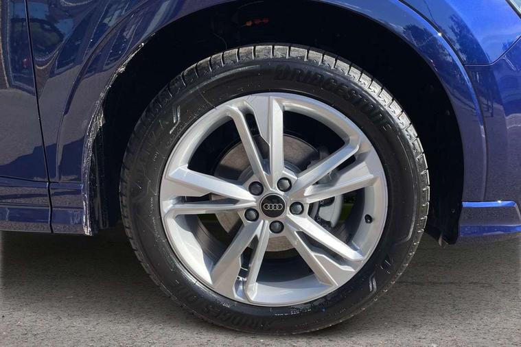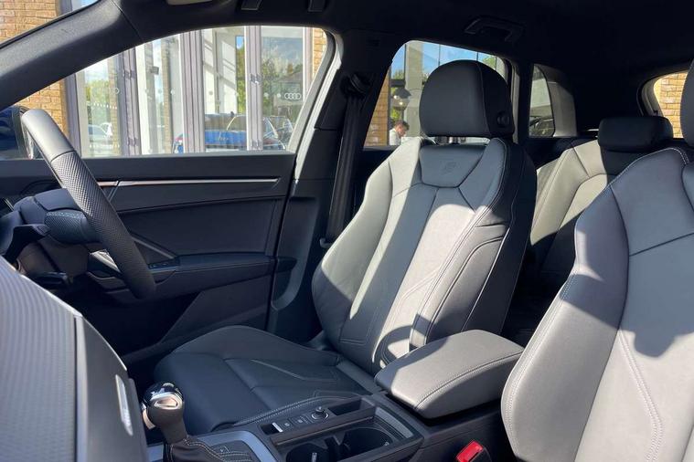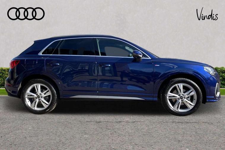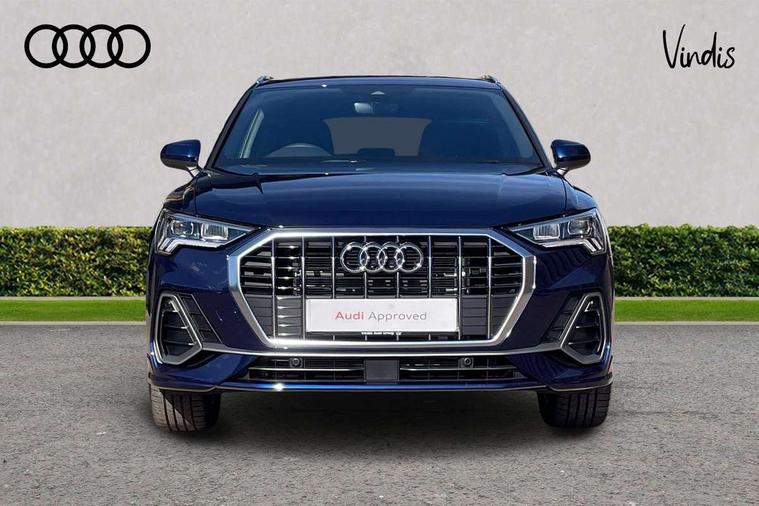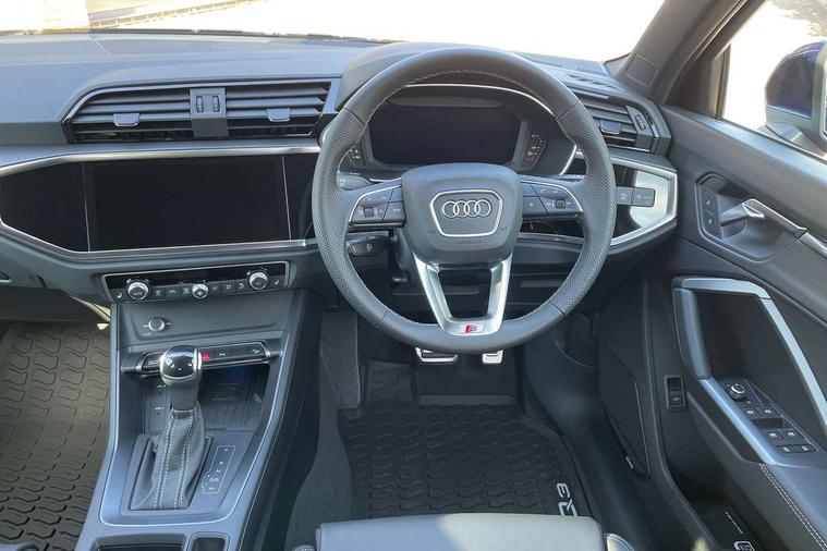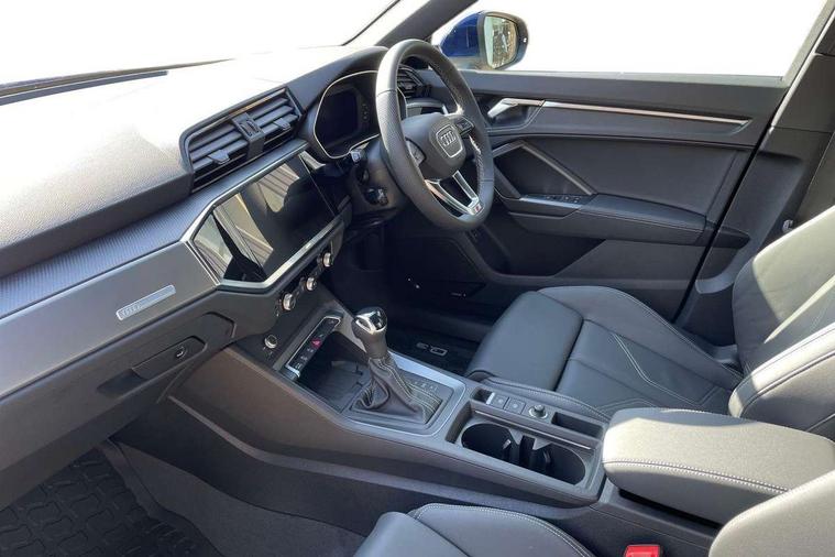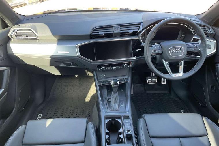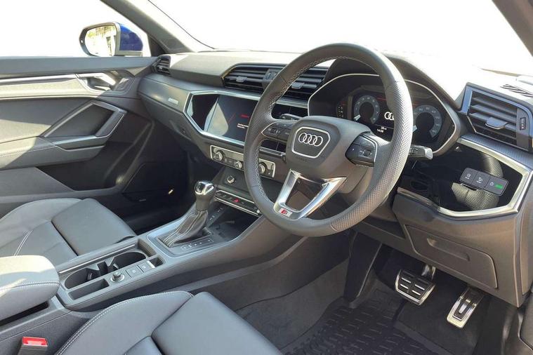 Amazon alexa Integration, Audi connect safety and service, Audi drive select, Audi lane departure warning, Audi Virtual Cockpit - 10.25" display, Bluetooth interface, Camera based traffic sign recognition, Distraction and Fatigue warning, Legal emergency call, MMI Navigation Plus with high resolution 10.1 inch touchscreen colour display, Power operated tailgate, Progressive steering, Service interval indicator, Smartphone interface includes wireless Apple carplay/Android Auto, Start stop system with recuperation, Voice control system with natural language interaction, Sports suspension, 2 USB-C ports with charge and data functions, 6 passive loudspeakers, DAB digital radio module, Acoustic windscreen, Aluminium roof rails, Aluminium window trim, Anthracite black radiator grille, Auto dimming door mirrors, Auto dimming frameless rear view mirror, Body colour front spoiler blade, Electrically folding, adjustable and heated door mirrors with integrated LED side indicators and kerb view function for passenger side, Front and rear electric windows, Front fog lights, Front side air inlets in matt platinum grey, Grille vertical bars in aluminium silver/Matt, High gloss black finish B and C pillars, LED Dynamic rear indicators, LED headlights with LED daytime running lights, LED rear lights, LED third brake light, Privacy glass dark tinted rear and rear-side windows (from B-pillar backwards), Rain and light sensors, Rear diffuser grille in grained matt black, Rear diffuser strip in matt anthracite black, Rear side wing doors, Rear wiper, S line badges on front wings, S Line front and rear bumpers and side skirts, Side skirt insert in matt Platinium grey, Variable front intermittent wipers, 12V socket in rear centre console, 3 seat bench in 2nd row, 3 spoke leather multifunction steering wheel features S badging and grips in perforated leather with contrast stitching, 40:20:40 folding with manual adjustment for 60:40 forwards/backwards position and backrest angle, Adjustable rear seat bench/backrest with centre armrest and cupholder, Black carpet mats, Black cloth headlining, Dual zone electronic climate control, Electric lumbar support, Front and rear black floor mats with contrast stitching in rock grey, Front and rear headrests, Front centre armrest, Height and reach adjustable steering wheel, Horizontal trim strip in matt platinum grey, Illuminated door sill trims with S logo, ISOFIX child seat mounting for front passenger with airbag deactivation and outer rear seat including top tether attachment point for outer rear seats, Luggage compartment sill protection in stainless steel, Manual front seats with height adjustment, Perforated leather gearknob, Single front passenger seat, Stainless steel pedals, Twin leather upholstery with front sport seats + S embossing, Non smoking pack - Q3, 3x3 point rear seatbelts, 6 airbags - Driver, front passenger, curtain and side windows, Audi pre-sense front with pedestrain and cyclist recognition, Electrically operated child locks on rear doors, Electromechanical parking brake, Electronic stabilisation control including ABS, ASR and EDL, Front seatbelt reminder, Hill descent control, Hill hold assist, Pre sense basic, Seatbelt monitoring, Tyre pressure warning, Warning triangle and first aid kit, Anti theft wheel bolts, Immobiliser, Remote central locking, Thatcham approved category 1 anti theft alarm, Aluminium look interior elements, Dark matt brushed aluminium inlay, Detail dashboard around MMI touch colour display in glass look, black with surround in aluminium look, Leatherette door armrest,