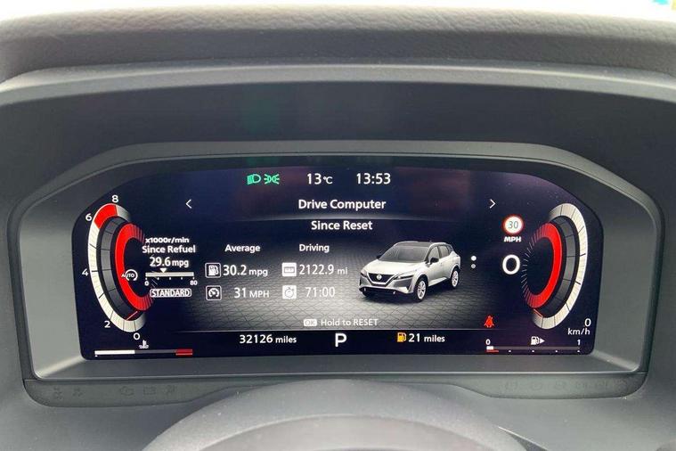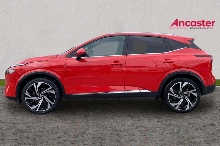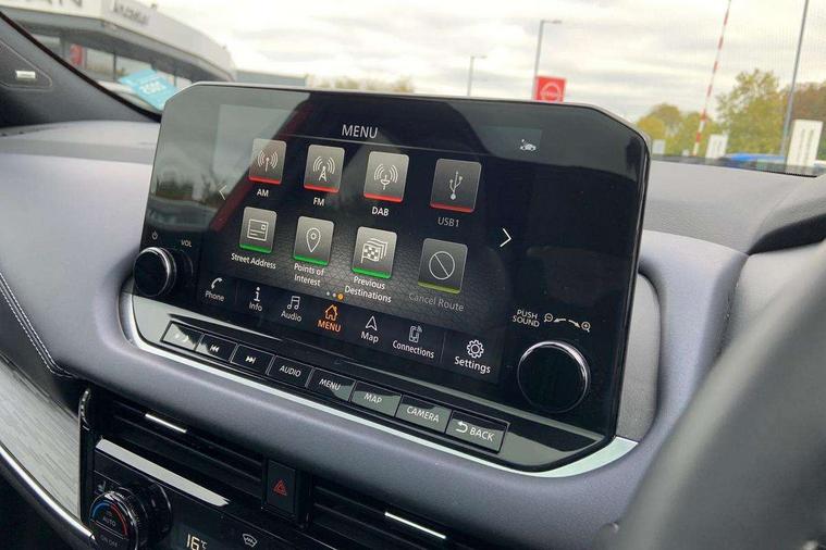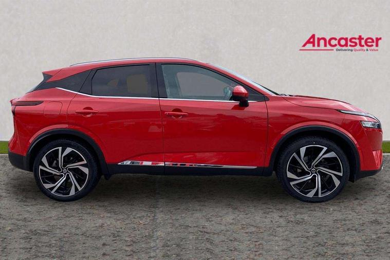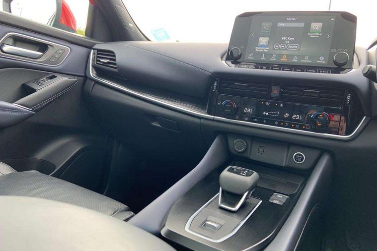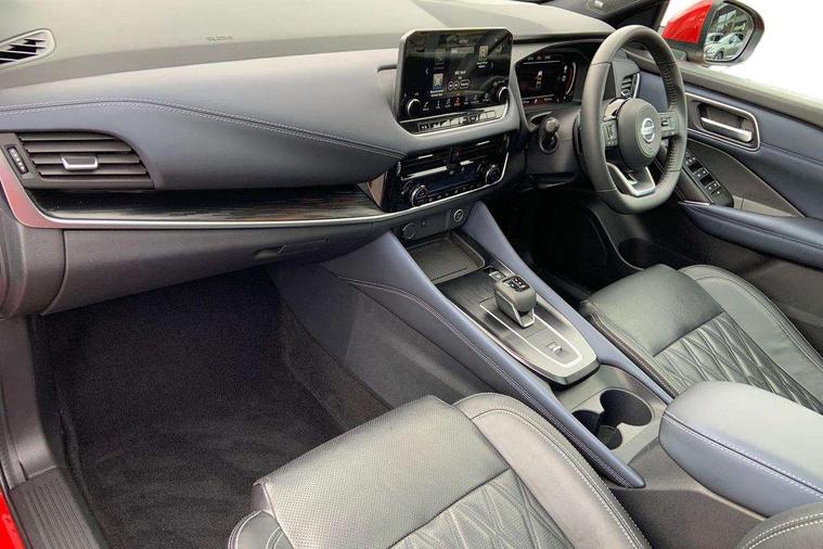 Blind spot warning, Drive modes (sport, normal, eco), Electric speed sensitive power steering, Emergency and breakdown call, Front and rear parking sensors, Full Digital 12.3" TFT Digital Combimeter, Google maps services - search, weather, 3D maps and Google street view, Hands free power tailgate, Idle stop/start system, Intelligent around view monitor, Intelligent Cruise control (ICC), Intelligent driver alert system, Intelligent forward collision warning, Intelligent lane intervention, Lane departure prevention, Lane departure warning system, Moving object detection, Nissan connect 9" touchscreen infotainment system, Nissan connect navigation, Push button starter, Rear cross traffic alert, Remote control services - door locks, lights, horn and car locator, Telematics - notifications and connectivity services, TomTom live traffic services, Traffic sign recognition with legal speed adjustment, Trip computer, Virtual personal assistant and firmware over the air capability, Wireless Apple CarPlay and wired Android Auto, Wireless charging pad, 10 Bose speakers - 2 tweeters, 6 high and medium frequency door speakers and 2 in subwoofer, AM/FM audio system with DAB, Bluetooth audio streaming, Bose acoustimass bass box, Digital amplifier, Front USB connections (Type-A and Type-C), Rear USB charging only ports (Type-A and Type-C), Auto dimming rear view mirror, Auto rear wiper when reversing, Body colour mirror caps, Body coloured door handles, Bodyside mouldings, Chrome side window finisher, Door handle with button, Door mirror memory, Dusk sensor, Electric auto folding door mirrors, Electrically adjustable and heated door mirrors with LED turn indicator, Fixed panoramic glass roof with electric sunshade, Follow me home headlights, Front and rear LED turning signals, Intelligent auto headlights, LED daytime running lights, LED rear lights, One touch front and rear electric windows with remote opening and closing, Privacy glass, Rear roof spoiler, Rear side wing doors, Rear styling plate, Reverse tilting door mirrors, Roof rails, Shark fin antenna, Splash free rain sensing wipers, Super UV and infrared cut glass, Three blink turn signal, 12v power socket in dashboard and luggage, 2x Rear coat hooks, 3 bench rear seats in 2nd row, 3 rear headrests, 4 folding assist grip, 6 Luggage hooks - 4 on floor, 2 on side, 60/40 split folding rear seat bench, 8 way electric adjustable driver seat with massage and memory function, 8 way electric adjustable passenger seat with massage and memory function, Ambient lighting around centre console, Ambient lighting in front doors, Centre console storage tray, Chrome interior door handles, Dark headlining, Driver and front passenger sunvisors with illuminated vanity mirrors, Driver seat back pocket, Dual zone automatic climate control with pollen filter, Electric 4-way lumbar support for drivers seat, Electric adjustable 4 way lumbar support for passenger seat, Front and rear door storage, Front cupholders x 2, Front door with bottle holders, Glovebox with light, Hard trunk cover, Height adjustable front headrests, Leather steering wheel, Luggage board system, Luggage space lighting, Multifunction steering wheel, Passenger seat back pocket, PVC front centre console and armrest, Quilted premium leather upholstery, Rear armrest with 2 cupholders, Rear door bottle holders, Single front passenger seat, Soft PVC kneepad, Steering wheel gearshift paddles, Steering wheel switches, Tilt/telescopic adjustable steering wheel, Two rear isofix child seat anchorage points with top tether, Welcome light and doors with console tray ambient lighting, Heat pack - Qashqai, Tech Pack (ProPILOT + HUD), 3x3 point rear seatbelt pretensioners + load limiters, ABS, ESP, EBD and brake assist, Active brake limited slip, Auto hold function, Child locks on rear doors, Curtain and front side, far side airbags, Driver and passenger airbags, Driver, passenger and 2nd row rear seat belt reminder, Electronic parking brake, Front seatbelt pretensioners + load limiters, Height adjustable front seatbelts, Hill start assist, Intelligent blind spot intervention, Intelligent front emergency braking with pedestrian, cyclist recognition and junction assist, Intelligent rear automatic braking, Tyre pressure monitoring system, Vehicle dynamic control, Advance intelligent key with driver memory storage (seats, mirrors, audio), Capless fuel filler, Engine immobiliser, Rear bumper with silver insert, Remote central door locking with deadlocking, Thatcham Cat.1 alarm, 20" Alloy wheels,
