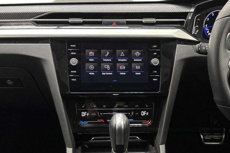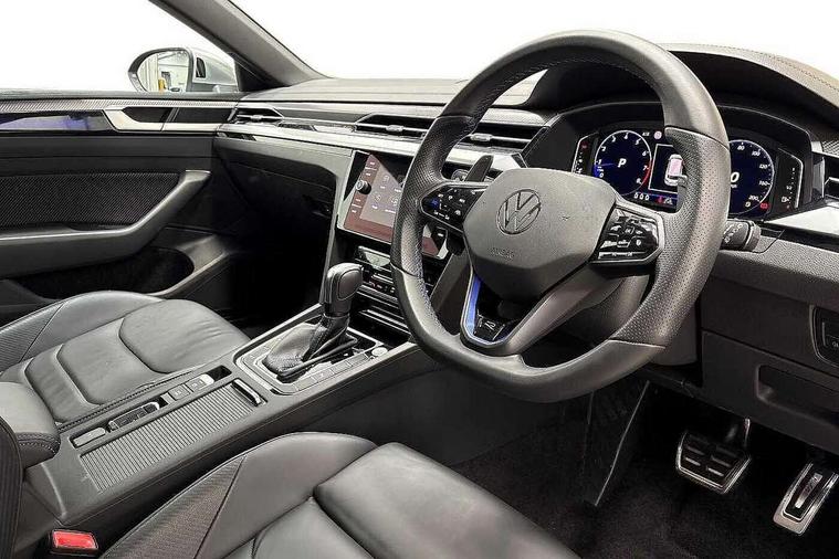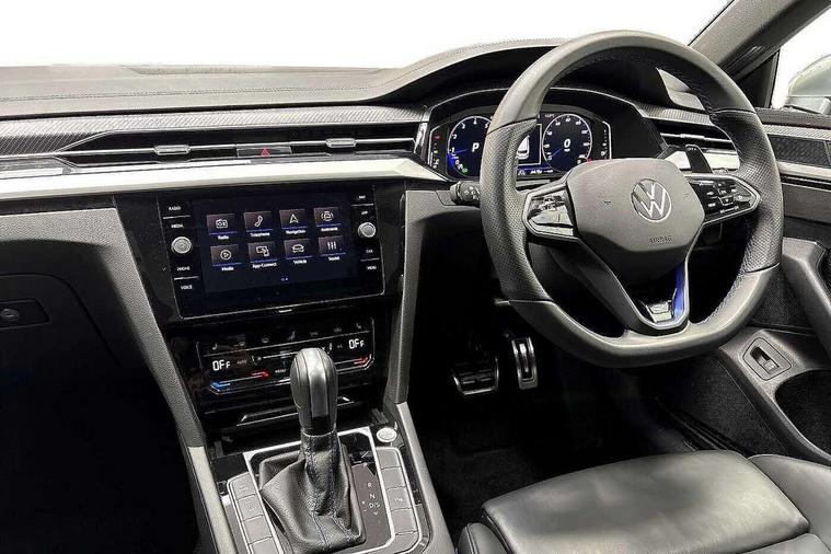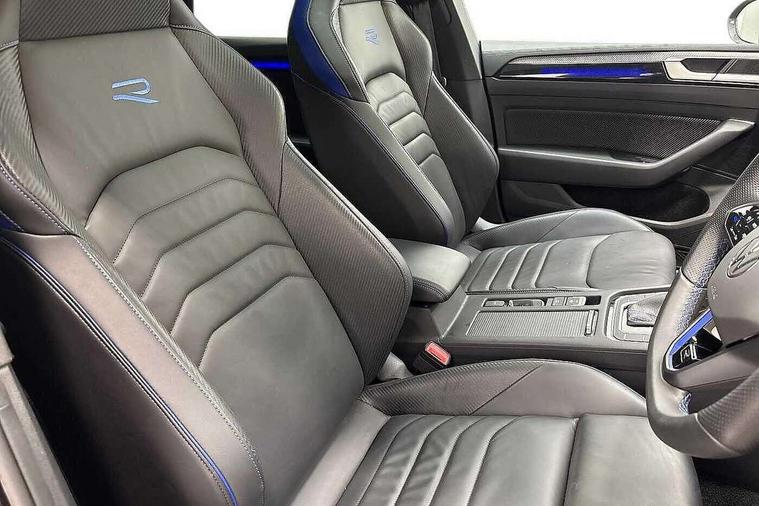 Adaptive cruise control (ACC) with speed limiter, front assist (reacting vehicles pedestrian and cyclists) and follow to stop, Advanced driver attention and drowsiness monitor, App connect including wireless Apple CarPlay, Camera for warning system, Digital cockpit with 10.25" high resolution TFT display screen with customisable menus and information, Driver profile selection including ECO function, Dynamic road sign display, eCall - Emergency call service for SOS calls to emergency response, Emergency assist, Hands free boot opening, Press and drive key, Progressive steering, R driving mode button on steering wheel, Side scan lane change assist including rear cross traffic alert, Speedo and rev counter, electronic odometer, trip, service interval display and exterior temperature gauge, Tailgate, Travel assist - Lane keeping assist and traffic jam assist, Voice activation for telephone and navigation, All wheel drive - 4Motion, Start/stop function with battery regeneration, XDS electronic differential lock, External, USB type C data sockets with increased charging performance front (45 Watt), Premium USB cable in choice of either Apple or Android smartphone compatibility, Auto dimming interior rear view mirror, Automatic coming/leaving home lighting function, Automatic headlights, Body colour door handles, Body colour side skirt, Body coloured top and matt black lower door mirrors with integrated indicators, Chrome side window surrounds, Dynamic headlight range control, Electric folding door mirror, adjustable, heated with front passenger exterior mirror lowering function, Front and rear electric windows, Front and rear stainless steel door sill protection, Front windscreen washers and wipers with 4x interval delay, Heat insulating side and rear windows, Heated rear windscreen, Heated windscreen washer jets, LED 3rd brake light, LED rear combination lamp with dynamic indicators, LED rear number plate lights, Left and right chrome effect twin trapezoid exhaust tailpipe surrounds, Panoramic sunroof with tilting and sliding including integrated roller blind, R Line design body coloured bumpers, R logo light projection, R logo on radiator grille, side panels and rear, R specific radiator grille, R specific rear bumper and R specific diffusor in black, Rain sensor, Rear fog lamp on one side and reversing lamp on both sides, Rear side wing doors, Rear tinted glass from B pillar backwards, approx 65% tinted, Rear windscreen washer and wiper with interval delay, Roof spoiler, 12V socket in front centre console, 12V socket on rear of front centre armrest, 14way electric adj front seats with lumbar + ergoComfort driver seat with memory/massage, comfort entry, integrated front headrest + door mirror memory, 3 rear head restraints, 3 seat bench in 2nd row, 30 colours options interior ambient lighting, 60:40 split folding rear seat backrests with centre armrest, Air care climatronic 3 Zone electronic air conditioning with automatic air recirculation, Chrome trim on upper and lower air vents extending across cockpit, Driver and front passenger sunvisor with vanity mirror, Front cupholders x 2, Front footwell illumination, Glovebox, Heated front seats, Height/reach adjust steering wheel, Isofix child seat preparation easy fit for two outer rear seats, Luggage compartment lighting, Nappa leather upholstery with side bolster and headrest, Pedals and footrest in stainless steel, Premium sports seats with R-logo, R performance leather wrapped heated multi-function sports steering wheel with touch controls and larger shifting paddles, blue stitching and R-logo, R specific floor mats with R-logo and stitching, Removable luggage compartment cover, Single front passenger seat, Split folding front seat backrest with front centre armrest, Titanium black roof lining, Two LED front reading light, 18" performance brakes, 3 rear three point seatbelts, ABS+EBD+Brake assist, Child locks on rear doors, Driver airbag and front passenger airbags with deactivation switch including driver knee airbags, Electronic parking brake, Electronic stability control (ESC) and Electromechanical brake booster, Front disc brakes, Front side airbags with curtain airbags, Hill start assist, Pro active occupant protection to detect critical situations with elevated accident potential from the front, R performance torque vectoring, R specific blue brake calipers, Rear disc brakes, Three point height adjust front seatbelts + pretensioners, Two tone horn, Tyre pressure monitor, Warning buzzer for seatbelts if unfastened, Warning triangle, Alarm with interior protection with deactivation via infotainment system, Electronic engine immobiliser, Keyless entry system including start/stop button on centre console, Remote central locking, Aluminium decorative inserts, Chrome trim on lower doors in front and rear, Leatherette insert on door and side trim panel in foam film, Piano black decorative inserts in centre console, R specific decor inlay aluminium black carbon,