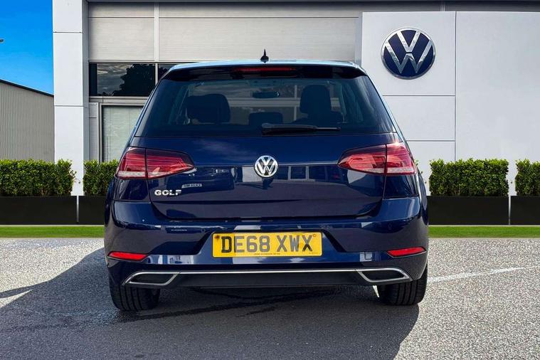 'Lights On' Reminder warning buzzer, 8" colour touch screen, ACC - Adaptive cruise control with front assist, forward collision warning, distance monitoring, city emergency brake and speed limiter, App-Connect, Bluetooth telephone and audio connection for compatible devices, Brake pad wear indicator warning light, Driver alert system, Driver profile selection, Driving Mode Selection with four preset modes - Eco, normal, sport or individual modes, Front assist, radar sensor controlled distance monitor, city emergency braking + predictive pedestrian protection, Front assistant collision mitigation, Instrument cluster in white, Multifunction computer with visual gear change recommendation for fuel consumption, Power assisted speed sensitive electro-mechanical steering, Speedo, rev counter, electronic odometer, trip, service interval display, exterior temperature and fuel gauge, Stop/start system, Ultrasonic front and rear optical and audible parking sensors, Warning buzzer and light for front seatbelts unfastened, Battery regeneration during braking, Lowered sports suspension, XDS electronic differential lock, 8 Speakers, CD/MP3/WMA, USB and SD card reader, aux-in, Composition media system, DAB Digital radio receiver, Multi device interface (MDI) with USB connection, SMS Functionality, Automatic coming/leaving home lighting function, Automatic dimming rear view mirror/rain sensor, Black front air intake and radiator grille with chrome insert, Black rear diffuser, Body colour bumpers, Body colour door handles, Body colour door mirrors with integrated indicators, Chrome grille surround, Chrome trimmed front air intake surrounds, Electric front windows, Electric rear windows, Electrically adjustable and heated door mirrors, Glavanised body, Heated rear windscreen, High level 3rd brake light incorporating LED Technology, LED front fog lights with static cornering light function, Range adjustable headlights via infotainment system with LED daytime running lights, Rear number plate lights incorporating LED technology, Rear tinted glass 65% light absorbing from B pillar backwards, Rear window aerial, Rear window wash/wipe with intermittent wipe, Reflectors in all doors, Remote electrically foldable door mirrors, door mirror puddle lights and reverse activated kerb-view adjustment on passengers door mirror, Tailgate with integrated rear roof spoiler, Windscreen wipers/ intermittent wipe + 4 position delay, 12V socket in luggage compartment, 3 rear headrests, 4 load lashing points in luggage compartment, 60/40 split folding rear seat backrest, Bag hook in luggage compartment x 2, Cooled glovebox, Dust/pollen filter, Front + rear carpet mats, Front centre armrest with storage compartment and two rear air vents, Front seat back storage pockets, Grab handles front x 2, rear x 2 with integrated coat hooks, Height and reach adjustable steering wheel, Illuminated vanity mirrors, Instrument lighting white adjustable panel illumination, Interior light delay, Isofix preparation for 2 rear child seats, LED front and rear reading lights, Load through provision with rear centre armrest and cupholders x2, Luggage compartment light, Multifunction leather steering wheel with leather trimmed gear knob, Overhead storage box, Pearl grey headlining, Storage box in luggage compartment, Storage compartment in roof console with cover, Storage compartments in front doors, Storage compartments in rear doors, Stowable luggage compartment cover, Sun visors, Three spoke multi-function leather trimmed steering wheel and gearknob, Variable boot floor, height adjustable and removable, Ambient lighting pack - Golf, Mirror pack - Golf, 3 rear three point seatbelts, Airbags - Driver's and front passenger's, curtain airbag, Driver's knee, front side impact and passenger's airbag deactivation switch, Anti-lock Braking System (ABS) with Hydraulic Brake Assist (HBA), Automatic post collision braking system, Child locks on rear doors, Driver/Passenger optimised head restraints, Electronic parking brake with auto hold, Electronic stability control (ESC) including Electronic differential lock (EDL) and ASR (Traction control) with deactivation via infotainment system, Pre crash preventive occupant protection, Three point height adjustable front seatbelts with tensioners, Tyre pressure loss indicator, Alarm with interior protection, Electronic engine immobiliser, Remote central locking with 2 remote folding keys, Chrome plated air vent surround, Chrome plated electric mirror adjustment light switch surround, Piano black decorative inserts in centre console, Tumbler decorative inserts, Steel space saver spare wheel,
