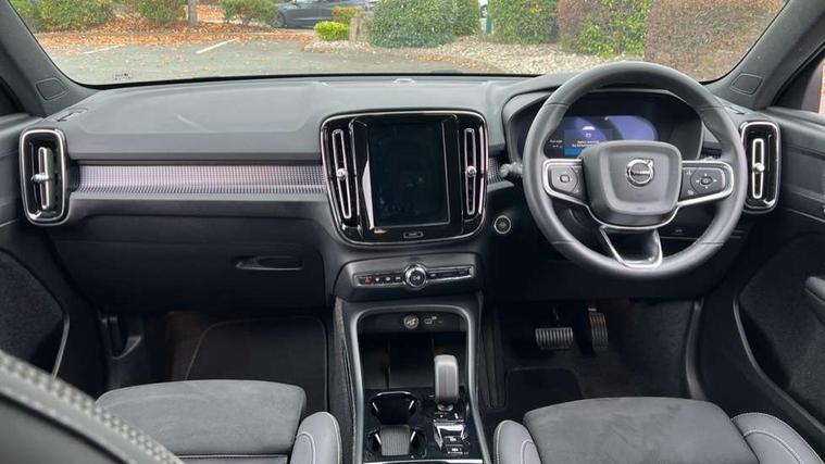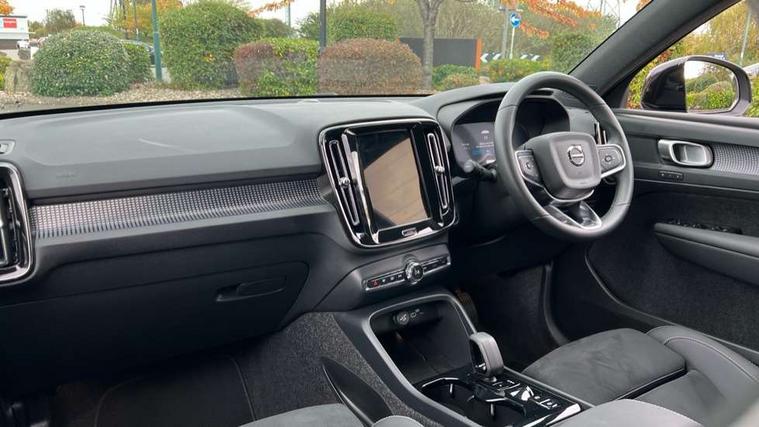 12.3" Progressive Driver Display, 9" centre console portrait touch screen, Adjustable steering wheel force, Android auto (Wired), Apple carplay (wired), Bluetooth handsfree system, Driver alert control, Driver assistance (pilot assist and adaptive cruise control), Driver awareness - Blind spot information system with steer assist, cross traffic alert with autobrake and rear collision warning and mitigation, E-call, Front park assist, Google automotive services - Enabled entertainment apps, navigation with google maps, voice recognition with google assistant, Hands free power tailgate, Intelligent speed assistance, Lane keeping aid, Oncoming Lane Mitigation, Rear park assist, Speed sensitive steering, Volvo cars services with app - Driving journal, emergency and breakdown call, engine remote start, remote door locking/unlocking and vehicle dashboard, Wireless/Inductive Mobile Phone Charging, Automatic transmission with start/stop and manual change functions, Dynamic chassis, DAB Digital radio, Steering wheel mounted remote controls, Adaptive brake lights with high level LED brake lights, Auto dimming feature for exterior door mirrors, Auto dimming interior mirror, Automatic headlamp levelling, Automatic LED Headlights + Active high beam incorporating daytime running lights, Front aluminium tread plates, Front and rear electric windows, High gloss black front and rear skid plate, High gloss black front bumper deco, High gloss black mesh front grille with high gloss black surround, High gloss black window trim, Home safe and approach lighting, Integrated roof rails in high gloss black, LED front fog lights, Puddle lights, Rain sensor with automatic windscreen wiper activation, Rear side wing doors, Rear wiper, Roof antenna, Roof spoiler, Visible VIN plate, 12V socket in front tunnel console and luggage compartment, 2-Zone electronic climate control with CleanZone air quality system and pollen filter, 3 seat bench in 2nd row, 3 Spoke tailored steering wheel with chrome trim, 60/40 versatile split folding rear seat, Centre console cupholders and storage, Charcoal headlining, Connect textile/microtech upholstery, Flexible load floor and grocery bag holder, Floor mats, Front cabin courtesy lights, Front door pocket, front cupholder, ambient front door, rear reading, rear courtesy, instrument panel and tailgate lighting, Front footwell illumination, Front headrests, Front reading lights, Front seat cushion extensions, Front side step illumination (under door), Glovebox bag hook, Heated front seats, Height adjustable passenger seat, Height/reach adjustable steering column, High gloss centre tunnel deco, Illuminated glovebox, Illuminated luggage compartment, Illuminated vanity mirrors + ticket holder, Integrated waste bin, Isofix attachments on outer rear seats, Load cover, Load protection net, Multi directional lumbar support for driver and passenger seat, Power driver seat with memory + exterior mirrors memory, Rear armrest with cupholders, Rear headrests, Single front passenger seat, Underfloor cargo storage, Climate pack without heated front seats - XC40, 3x3 point rear seatbelts, City safety with steering support with Pedestrian + cyclist + front collision warning with full auto brake and rear auto brake, Driver and passenger airbags, Drivers knee airbag, Electronic parking brake with auto hold, First aid kit, Front and outer rear seatbelt reminder and pretensioners, Front seats SIPS airbags, Hill descent control, Hill start assist, Inflatable curtain, Passenger airbag cut-off device, Power child locks on rear doors, Road sign information display, Run off Road Protection, SIPS (Side Impact Protection System), Slippery road and hazard light alert, Stability and Traction Control with Spin control, Engine Drag Control and Corner Traction Control, Tyre pressure monitoring system, Vehicle deceleration control with Anti-lock Brake System, Electronic Brake Distribution and Emergency Brake Assist, Warning triangle, WHIPS whiplash protection system - front, 2 x Key integrated remote control central locking including with deadlocking system and auto open/close windows, Anti-theft alarm including immobiliser/volume sensor + level sensor, Keyless drive includes keyless entry and keyless start, Locking wheel nuts,