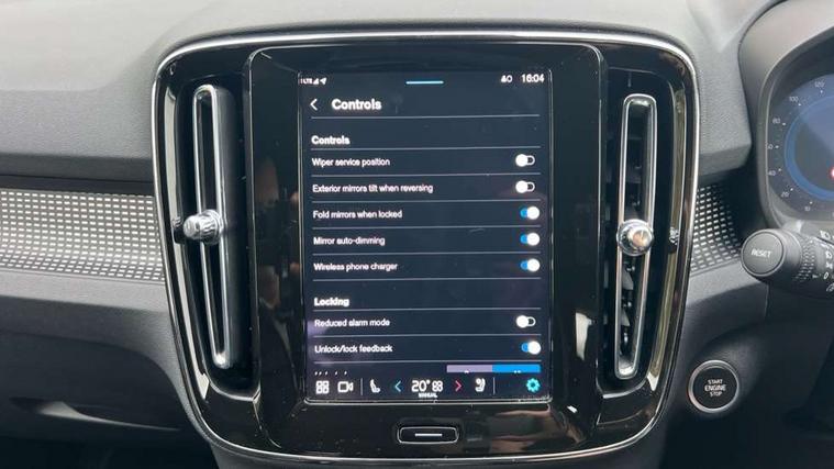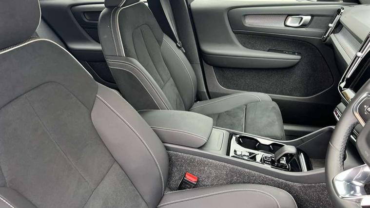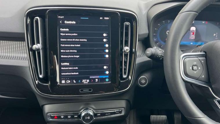 12.3" Progressive Driver Display, 9" centre console portrait touch screen, Adjustable steering wheel force, Apple carplay (wired), Bluetooth handsfree system, Cruise control, Driver alert control, E-call, Front park assist, Google automotive services - Enabled entertainment apps, navigation with google maps, voice recognition with google assistant, Hands free power tailgate, Intelligent speed assistance, Lane keeping aid, Oncoming Lane Mitigation, Rear park assist, Rear park assist camera, Speed sensitive steering, Volvo cars services with app - Driving journal, emergency and breakdown call, engine remote start, remote door locking/unlocking and vehicle dashboard, Wireless/Inductive Mobile Phone Charging, Automatic transmission with start/stop and manual change functions, Dynamic chassis, DAB Digital radio, Steering wheel mounted remote controls, Adaptive brake lights with high level LED brake lights, Auto dimming interior mirror, Automatic headlamp levelling, Automatic LED Headlights + Active high beam incorporating daytime running lights, Front aluminium tread plates, Front and rear electric windows, High gloss black front and rear skid plate, High gloss black front bumper deco, High gloss black mesh front grille with high gloss black surround, High gloss black window trim, Home safe and approach lighting, Integrated roof rails in high gloss black, LED front fog lights, Puddle lights, Rain sensor with automatic windscreen wiper activation, Rear side wing doors, Rear wiper, Roof antenna, Roof spoiler, Visible VIN plate, 12V socket in front tunnel console and luggage compartment, 2-Zone electronic climate control with CleanZone air quality system and pollen filter, 3 seat bench in 2nd row, 3 Spoke tailored steering wheel with chrome trim, 60/40 versatile split folding rear seat, Centre console cupholders and storage, Flexible load floor and grocery bag holder, Floor mats, Front cabin courtesy lights, Front door pocket, front cupholder, ambient front door, rear reading, rear courtesy, instrument panel and tailgate lighting, Front footwell illumination, Front headrests, Front reading lights, Front seat cushion extensions, Front side step illumination (under door), Glovebox bag hook, Heated front seats, Height adjustable passenger seat, Height/reach adjustable steering column, High gloss centre tunnel deco, Illuminated glovebox, Illuminated luggage compartment, Illuminated vanity mirrors + ticket holder, Integrated waste bin, Isofix attachments on outer rear seats, Load cover, Load protection net, Multi directional lumbar support for driver and passenger seat, Power driver seat with memory + exterior mirrors memory, Rear armrest with cupholders, Rear headrests, Single front passenger seat, Underfloor cargo storage, Climate pack without heated front seats - XC40, 3x3 point rear seatbelts, City safety with steering support with Pedestrian + cyclist + front collision warning with full auto brake and rear auto brake, Driver and passenger airbags, Drivers knee airbag, Electronic parking brake with auto hold, First aid kit, Front and outer rear seatbelt reminder and pretensioners, Front seats SIPS airbags, Hill descent control, Hill start assist, Inflatable curtain, Passenger airbag cut-off device, Power child locks on rear doors, Road sign information display, Run off Road Protection, SIPS (Side Impact Protection System), Slippery road and hazard light alert, Stability and Traction Control with Spin control, Engine Drag Control and Corner Traction Control, Tyre pressure monitoring system, Vehicle deceleration control with Anti-lock Brake System, Electronic Brake Distribution and Emergency Brake Assist, Warning triangle, WHIPS whiplash protection system - front, 2 x Key integrated remote control central locking including with deadlocking system and auto open/close windows, Anti-theft alarm including immobiliser/volume sensor + level sensor, Keyless drive includes keyless entry and keyless start, Locking wheel nuts,