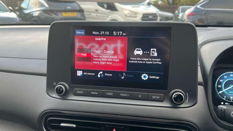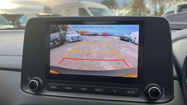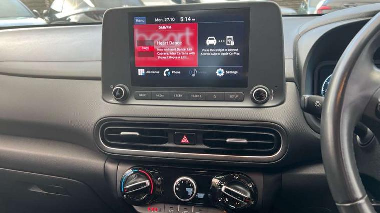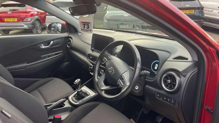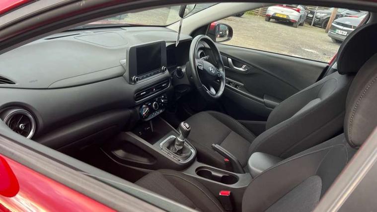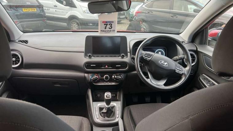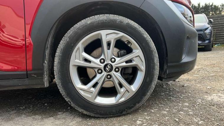 8" Touchscreen display audio + smart device integration, Bluetooth connectivity, Cruise control + speed limiter, Digital clock, Driver attention warning, Driver supervision instrument cluster with 10.25" LCD display, eCall emergency call system, Forward collision avoidance assist with pedestrian detection, Lane follow assist, Lane keep assist, Leading vehicle departure alert (LVDA), Parking system with rear camera and guidance system, PAS, Phone connection with apple carPlay and android auto, Rear parking sensor, Roadside assistance, Windscreen washer fluid sensor and warning indicator, 6 speed intelligent manual transmission, 6 speakers (2 front, 2 tweeters, 2 rear), Front USB ports, RDS and Digital DAB, Steering wheel mounted audio/phone controls, Automatic headlights with dusk sensor, Body colour door mirrors and handles, Door mirror integrated indicators, Electric front/rear windows with drivers one touch/anti-trap, Electrically adjustable and heated door mirrors, Halogen headlights, Halogen rear lights, LED daytime running lights, Positioning Lights - LED, Rain sensor, Rear roof spoiler with integrated LED brake light, Rear side wing doors, Rear wiper, Roof rails, Tinted glass with front door glass and windscreen with shade band, 12V power outlet in front console, 3 seat bench in 2nd row, 60/40 split folding rear seat, Adjustable head restraints, Air conditioning, Centre interior light, Cloth upholstery, Door scuff plate, Driver's seat height adjustment, Driver/passenger sunvisors and illuminated vanity mirrors, Front interior light, Front passenger seat manual adjustments, Height/reach adjustable steering column, Isofix rear child seat fastenings, Leather wrapped steering wheel and gear knob, Luggage compartment lighting, Luggage hooks, Metal paint effect interior door handles, Parcel shelf, Rear centre console with air vents, Single front passenger seat, Sunglasses holder, Vertical adjustment rear head restraints, Trailer wiring package - Kona, Airbags - front, front side and curtain airbags, Anti-lock brake system (ABS), Childproof rear door locks, Downhill brake control, EBD + Brake Assist, Electronic stability control, Fasten seatbelt reminder, Fixed 3 point for second row centre passenger seatbelt, Front seatbelt pretensioners, Height adjustable front seatbelts, Hill start assist control (HAC), Manual parking brake, Passenger airbag deactivate switch, Rear seat alert, Traction control, Tyre pressure monitoring system, Alarm/immobiliser, Deadlocks, Folding key, Locking wheel nuts, Remote central locking, 17" Alloy wheels,