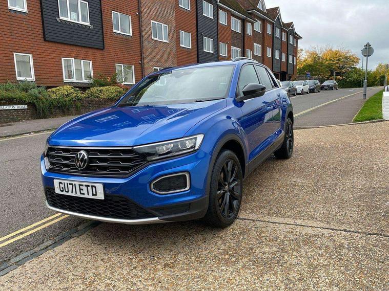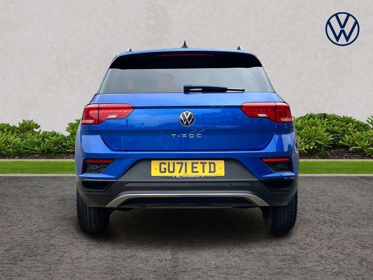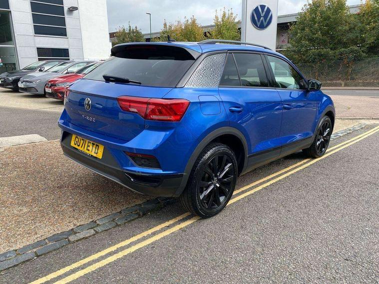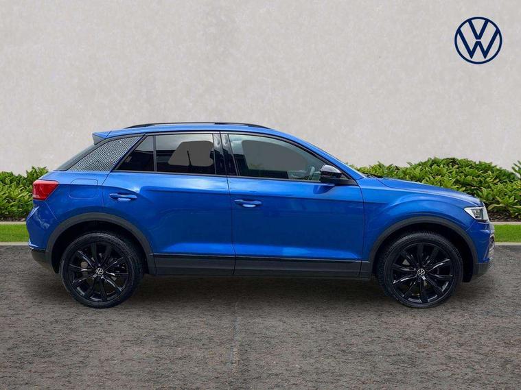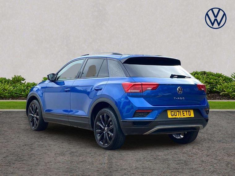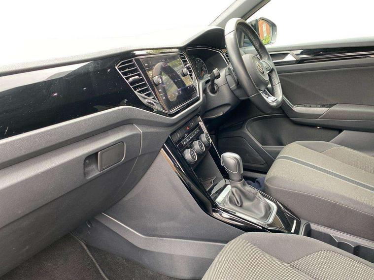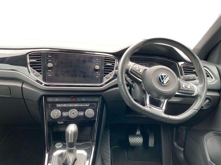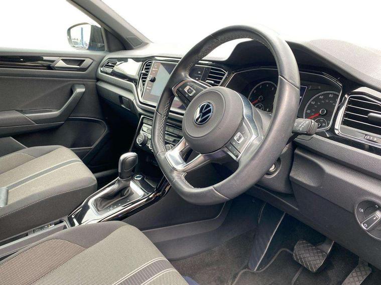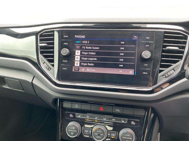 'Lights On' Reminder warning buzzer, Adaptive cruise control, Bluetooth telephone and audio connection for compatible devices, Car information display, Driver tips and journey analysis, Emergency call service, Lane assist with warning text instrument cluster, Modified key software - reduce switch off time for key status change to Long no motion, Multifunction camera, Multifunction computer with visual gear change recommendation for fuel consumption, Service interval indicator, Think blue trainer driver tips and journey analysis, Warning sound and light for doors and tailgate open, Warning sound and light for front seatbelts unfastened, Wireless app connect for apple carPlay, Battery regeneration during braking, Start/stop function with battery regeneration, DAB Digital radio, Diversity antenna for FM reception, Multi device interface (MDI) with USB connection, Music playback - MP3, WMA and AAC files, Premium USB cable in choice of either Apple or Android smartphone compatibility, SD card slot, Simultaneous pairing of 2 compatible mobile devices, Single CD player, glovebox mounted, SMS functionality - read, compose and send SMS messages using touch-screen display, Storage compartment with longitudinal and height adjustable in armrest and two rear air vents, Title and cover art display, USB-C Interface and USB charging socket, Auto dimming interior rear view mirror, Automatic coming/leaving home lighting function and daytime running lights, Automatic hazard lights activation under emergency braking, Black grained lower door protectors, Black grained wheel arches, Black roof rails, Body colour door handles, Body colour sports bumpers with silver metallic underbody fascia, Body coloured bumpers and radiator grille with chrome trim and front fog lamps with chrome bezel, Chrome trim on upper and lower radiator grille, Dusk sensor, Electrically foldable, adjustable and heated door mirrors with puddle lights and reverse activated kerb-view adjustment on passenger's door mirror, Exhaust tailpipes in black, External USB type C socket and charging sockets, Front and rear electric windows, Front windscreen wiper with intermittent wipe and 4 position delay, Fully galvanised body, Heated rear window, High level 3rd brake light, LED headlamps with automatic range adjustment and unique signature LED separate daytime running lights, LED rear number plate lights, LED tail lamp rear comination lamps, Privacy glass, Rain sensor, Rear tinted glass from B-pillar backwards approx 65% tinted, Rear wash/wipe with intermittent wipe setting, Trim strips on grille and vehicle side, Volkswagen roundel, 12V socket in centre console storage area, 3 rear head restraints, 4 load lashing points in luggage compartment, Black roof lining, Climate control - 2 zone electronic air conditioning with automatic air recirculation and allergy filter, Door and side trim panel, Drawer under drivers seat, Front centre armrest, Front cupholders x 2, Front seat back storage pockets, Glovebox, Height adjustable front seats, Height/reach adjust steering wheel, Instrument lighting, white adjustable panel illumination, Interior light in footwell, Isofix easy fit child seat preparation for 2 outer rear seats, Leather gearshift knob, Leather multi function sport steering wheel with gear change selection via paddle shift on steering wheel, LED interior light with switch off delay/dimmer and 2 front/rear LED reading lights, Load through provision with single cup holder when folded down, Luggage compartment cover, removable, Luggage compartment lighting, Split folding rear seat backrests with centre armrest, Storage compartment in left and right luggage area, Storage compartment in rear doors, Storage compartments in driver and front passenger doors, Sunvisors with illuminated vanity mirrors, White ambient lighting, Black decal on C-pillar pack - T-Roc, 3 rear three point seatbelts, ABS, Curtain airbags, Driver and front passenger safety-optimised head restraints, Drivers and front passengers airbags with passengers deactivation switch, Drivers seatbelt reminder, Electronic parking brake with auto hold, Electronic stability control (ESC) includes ASR, EDL, EDTC and trailer stabilisation function, Front assist with city emergency braking and pedestrian monitoring, Front seat side impact airbags, Predictive pedestrian protection, Rigid safety cell with front and rear crumple zones, Single tone horn, Three point height adjust front seatbelts + pretensioners, Tyre pressure loss indicator, Ventilated front and rear disc brakes, Volkswagen roadside assistance, Alarm with remote central locking and interior protection, Electronic engine immobiliser, Remote central locking with SAFELOCK, radio remote control with 2 remote control folding keys, Black decorative trims, Piano black decorative inserts in dash, centre console and door panel, 18" Arlo black diamond turned surface alloy wheels with low rolling resistance tyres and anti theft wheel bolts,