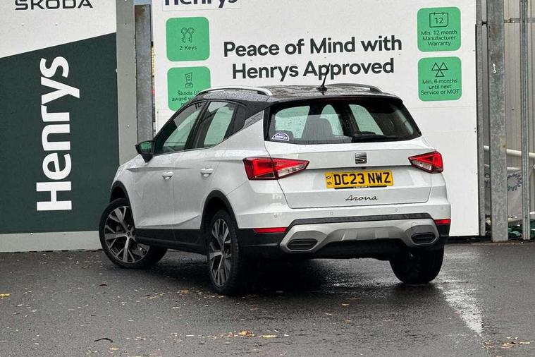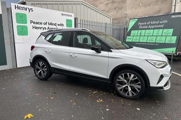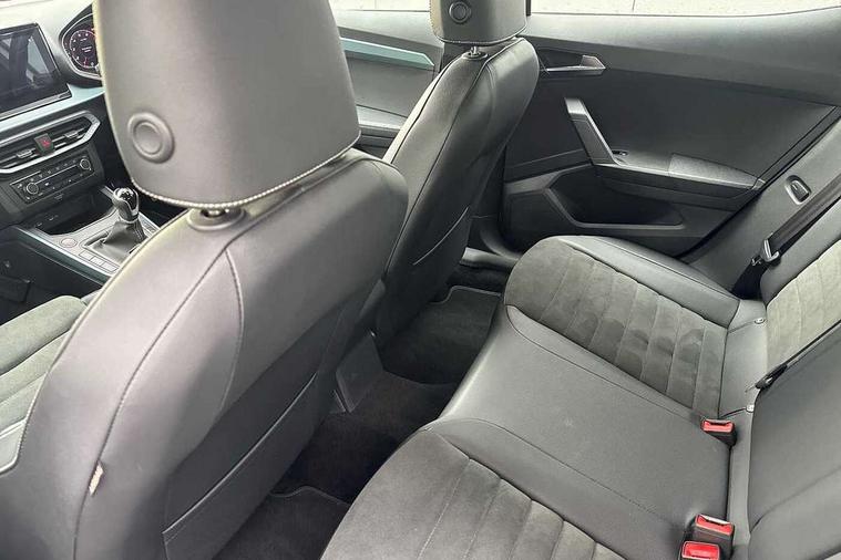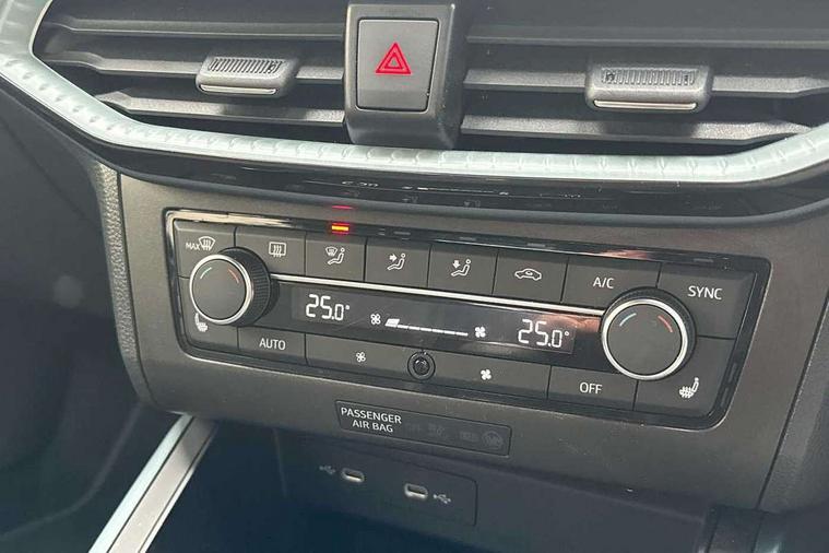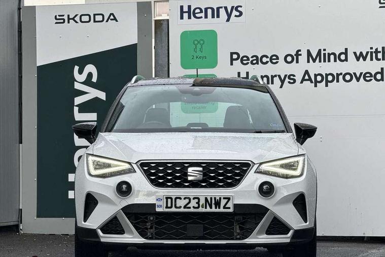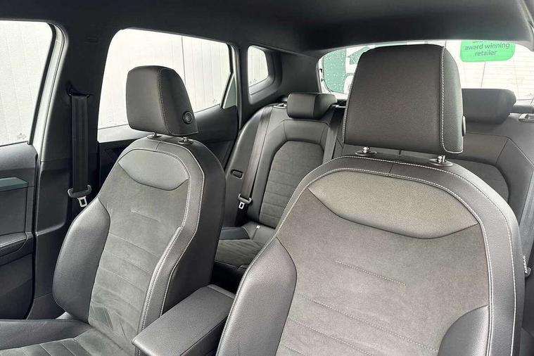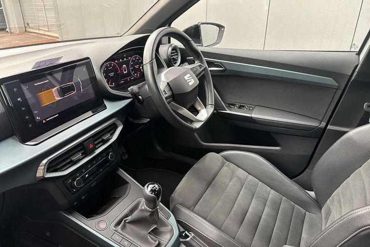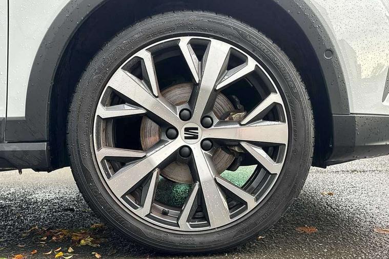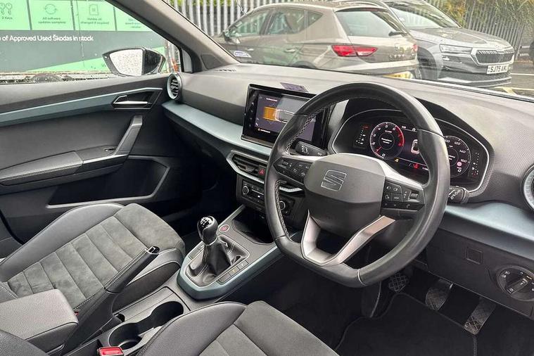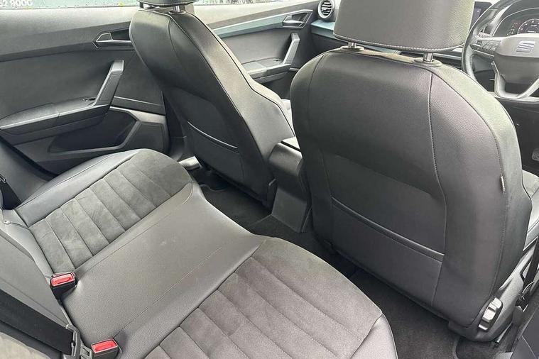 'Lights On' Reminder warning buzzer, 10" Digital cockpit, Digital clock, E-call, Electric speed sensitive power steering, Front parking sensor, Full Link Smartphone Integration with Mirror Link, Apple Car Play, Google Android Auto with USB Type C cable for Apple and Android compatibility, Low fuel warning light, Outside temperature display, Park assist system, Rear parking sensor, Rear view camera, RPM counter, Seat connect with safety, service, remote and online, Trip computer, Wireless phone charger, 9.2" colour touchscreen with navigation system, voice control and USB port (type c), Bluetooth interface for hands free and audio streaming, DAB digital radio and AM/FM radio, Steering wheel mounted audio controls, Anti theft roof antenna, Auto dimming interior rear view mirror, Automatic activation of hazard warning lights, Body coloured bumpers, Body coloured door handle inserts, Chrome roof rails and window surrounds, Electric front/rear windows, Electrically adjustable, heated and folding door mirrors, Front fog lights with cornering function and rear fog light, FULL LED automatic headlights with dynamic headlight range control, coming and leaving home, LED daytime running lights, Hidden exhaust pipe, LED rear tail lights and licence plate lights, Protective side mouldings, Rain sensing wipers, Rear side wing doors, Rear spoiler, Rear window wash/wipe, Roof colour door mirrors, Third brake light, Visible VIN plate, Windshield wiper with intermittent control and potentiometer, 2 cupholders, 3 seat bench in 2nd row, 60/40 split folding rear seat, Aircare filter, Black interior roof, Double boot floor, Driver sunvisor with covered mirror + card holder, Dual zone climate control, Flat bottomed leather steering wheel/gear knob/handbrake, Front comfort seats, Front courtesy light with front reading lights, Front seat back storage pockets, Gear shift indicator, Heated front seats, Height adjustable front seats, Height/reach adjustable steering column, Illuminated boot, Instrument lighting with brightness control, Interior ambient lighting, Interior light in footwell, central console and door panel, ISOFIX points in outer rear seats with top tether anchorage points, Leather steering wheel/gear knob/handbrake, Microsuede cloth upholstery, Passenger sunvisor with vanity mirror, Single front passenger seat, Storage net on centre console, Two front and three rear height adjustable headrests, Interior chrome pack - Arona, Storage pack - Arona, 3 point seatbelts on all rear seats, ABS, Active front headrests, Child locks on rear doors, Driver and front passenger airbags with front passenger airbag de activation, front side and curtain airbags, Electronic stability control, Emergency Brake Assist (EBA) and front assist, Front and rear seatbelt reminder, Hill hold control, Multi-Collision braking, Tiredness recognition system, Traction control, Tyre pressure monitoring system, Alarm with back-up horn, Electronic engine immobiliser, KESSY Keyless entry and go, Locking wheel bolts, Remote central locking + deadlocks, Tow away protection, Titan black dashboard, 18" Performance Nuclear grey alloy wheels,