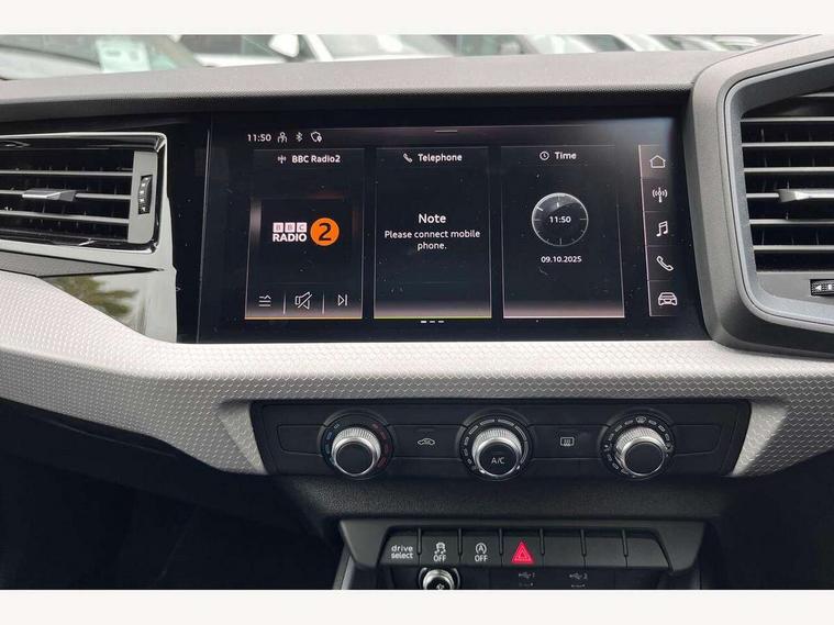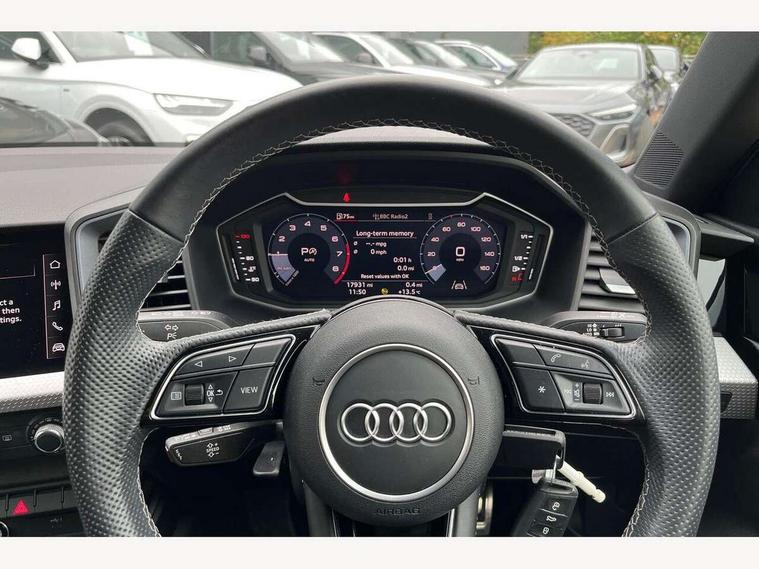 10.25" Digital instrument cluster display classis style instrument dials + speed, odometer, time, outside temperature, telephone menu + fuel level warning, Audi drive select - power steering assistance + engine + gear shift 3 preset modes (auto, dynamic, efficiency and an Individual mode), Audi smartphone interface with connect compatible smartphone via USB directly MMI display + Nav, music, third party apps controlled via MMI controller, Automatic start/stop system, Bluetooth interface, Cruise control, Driver's information system, Electromechanical power steering, Emergency e-call, Lane departure warning system, Rear parking sensor, Service interval indicator, Speed limiter, Voice control system, Washer fluid level indicator, Sports suspension, 2 x USB type C connection points, 6 passive loudspeakers, DAB Digital radio, MMI radio plus with 10.1" colour MMI display screen and MMI touch, Auto dimming rear view mirror, Body coloured door mirrors, Door sills with aluminium inlays and S Line logo, Electric front and rear windows, Electrically adjustable, heated, folding door mirrors with integrated LED side indicator, Front side air inlets in grained matt black and C frame in anthracite black, Heat insulating glass windscreen and side windows, Heated rear windscreen, High level LED brake light, LED headlights with LED rear lights + dynamic rear indicators + headlight adjustment and high beam, turning light + LED daytime running lights, Privacy glass, Radiator grille and rear diffuser in matt anthracite black, Radiator protective grille frame in matt aluminium silver, Rain and light sensors, Rear fog lights, Rear side wing doors, Rear wiper, S line badges on front wings, Side front spoiler lips in grained matt black, 12V socket in centre console with two cup holders, 3 rear seats with headrests, 3 seat bench in 2nd row, 3 spoke leather multi-function plus steering wheel features S badging and grips in perforated leather with contrast stitching, 40:60 Split folding rear seat or folded fully, Black cloth headlining, Driver and passenger seat with manual height adjust with forward and backwards adjustment, Front and rear black floor mats with contrast stitching in fine silver, Front head restraints, Front passenger seat, Height and reach adjustable steering wheel, ISOFIX child seat mounting for front passenger and outer rear seats including top tether attachment point of outer rear seats, Leather gear knob with aluminium trim, Leather handbrake grip, Luggage compartment light with front and rear reading lights, Manual air conditioning, Manually adjustable lumbar support in front seats, Stainless steel pedals, LED interior lighting pack - A1, Luggage compartment pack - A1, S line exterior styling pack - A1 Sportback, 3x3 point rear seatbelts, Audi pre-sense front with pedestrain and cyclist recognition, Brake assist function, Driver and front passenger airbag with front side and head airbags, Electronic Stability Control including ABS, EBD, ASR and EDL, Front passenger airbag deactivation switch, Hill hold assist, Manual rear child locks, Seatbelt height adjustment for front seats, Seatbelt monitoring, Tyre pressure warning light, Warning triangle and first aid kit, Anti theft alarm, Anti theft wheel bolts and loose wheel warning, Immobiliser, Remote central locking with 2 foldaway keys, Aluminium trim for control switches, air vents and digital instrument cluster, Black dashboard, Silver grey inlays polygon structure in diamond paint finish, Structured grey accent areas including air vents, door handle recesses and centre console in quartz paint finish,