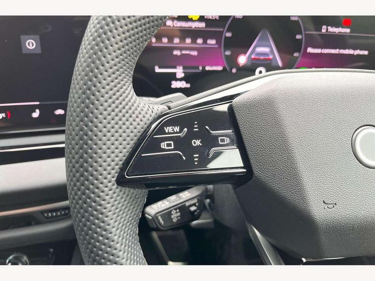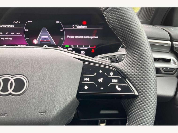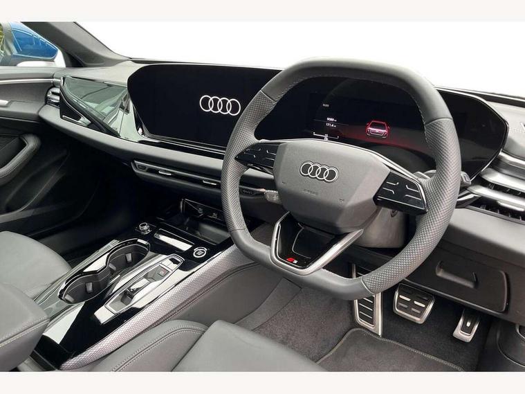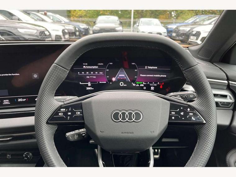 Adaptive cruise control, Advanced driver attention and fatigue montior, Audi application store, Audi assistant, Audi connect emergency call and service, Audi drive select, Audi smartphone interface, Audi virtual cockpit plus with 11.9" OLED colour display, Automatic start/stop system with coasting functionality, Camera based traffic sign recognition, Intersection assist, Lane departure warning, MMI navigation plus with high resolution 14.5" OLED touchscreen colour display, Park assist plus, Parking system plus with 360 display, Progressive steering with servotronic, Rear view camera, Swerve assist and turn assist, Traffic sign based speed limiter, Sports suspension lowered by 20mm, 2 USB-C ports in both the front and rear, Audi sound system impressive sound with 10 loudspeakers including centre speaker and subwoofer, 6-channel amplifier with a total output of 180 watts, DAB digital radio reception, Smartphone compartment with wireless charging, Aluminium roof rails, Aluminium window trims, Auto dimming rear view mirror, Body colour door mirrors, Door mirrors - electrically adjustable, heated, folding and auto dimming on both sides, Front and rear electric windows, Front door sill trims with aluminium inlays, illuminated with 'S' logo, High beam assist, LED headlights Plus incl. digital daytime running lights, turning light, all-weather light, motorway light, manouevring light and intersection light, LED rear lights pro incl. dynamic rear indicators and illuminated light strip with animated coming and leaving home function, LED third brake light, Privacy glass, Rear and side windows with heat insulating glass, Rear side wing doors, Rear wash/wipe, S Line badges on the front wings, S line bumpers, radiator grille and diffuser in phantom black and diffuser insert in matt anthracite, White rhombus logo projection light in exterior mirrors, Windscreen with acoustic glazing, 3 rear headrests, 3 seat rear bench, 3 spoke leather steering wheel with multi-function buttons with touch control, flattened on top and bottom, with S badging and contrast stitching, 3-zone automatic climate control, 40:20:40 split folding rear seat bench with centre armrest and cup holders, Comfort front centre armrest, Front and rear floor mats, Front seats with manual adjustment for position and 4-way electric lumbar support, Front sport seats with integrated headrest and S embossed logo, Headlining in black cloth, Heated front seats, i-Size child seat mounting on the front passenger side and outer rear seats, i-Size and top tether on the outer rear seats, Luggage compartment lid, electrically opening and closing, Manual steering column height and depth adjustment, Single front passenger seat, Stainless steel pedals and footrest, Steering wheel grips in perforated leather and shift paddles, Ambient lighting package plus - A5, 3x3 point rear seat belts, Driver airbag, Electric child safety locks, First aid kit with warning triangle and vests, Front emergency brake assist, Front passenger airbag, Front passenger airbag deactivation, Front side airbags with head airbag system and front interaction airbag, Hill hold assist, Seat belt monitoring with rear seat occupant reminder, Tyre pressure loss indicator, Anti theft alarm, Anti-theft wheel bolts, Keyless Go, Accent surfaces and control buttons in gloss black, Black dashboard with contrast stitching, Inlays in matt brushed aluminium with linear embossing, anthracite, Softwrap in leatherette with contrast stitching, Upper and lower interior elements in leatherette, Tyre repair kit,