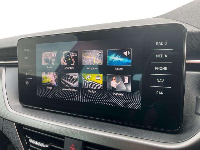 Bluetooth system, E-call, Front assist system, PAS, Service indicator, Speed limiter, Wireless Smartlink for Apple CarPlay (wired for Android Auto), 8 Speakers, Auxiliary input socket, DAB Digital radio, Body colour bumpers, Body colour door mirrors and handles, Chrome grille surround, Dimming rear view mirror with black surround, Electrically adjustable and heated door mirrors, Front and rear electric windows, Headlight range control, Heated rear window, LED rear lights - low functionality, LED third brake light, Light sensors, Rain sensor, Rear fog lights, Rear side wing doors, Rear wiper, 12V Accessory socket in centre console, 3 seat bench in 2nd row, Chrome inner door handles, Cloth upholstery, Front head restraints, Glove compartment with illumination, Ice scraper, Isofix child seat fittings on outer rear seats, ISOFIX on front passenger seat, Manual lumbar support for front seats, Rake/reach adjustable steering wheel, Reading lights, Single front passenger seat, Sun visors with illumination on front passenger, Textile floor mats, Third rear headrest, Top tether for front passenger seat, Umbrella in driver's door, 3x3 point rear seatbelts, Airbags - driver and front passenger, ESP, Front passenger airbag deactivation switch, Front side airbags with curtain airbags, Hill hold control, Manual parking brake, Manual rear child locks, One tone horn, Rear disc brakes, Seatbelt reminder for driver an co-driver, Traction control, Tyre pressure monitor, Anti-theft alarm system with interior monitoring, backup horn, towing protection and remote central locking with SAFE system, Anti-theft wheel bolts, Electronic engine immobilizer,