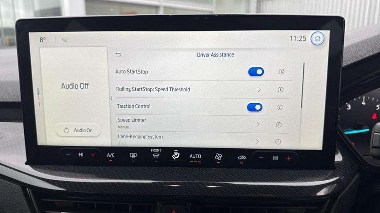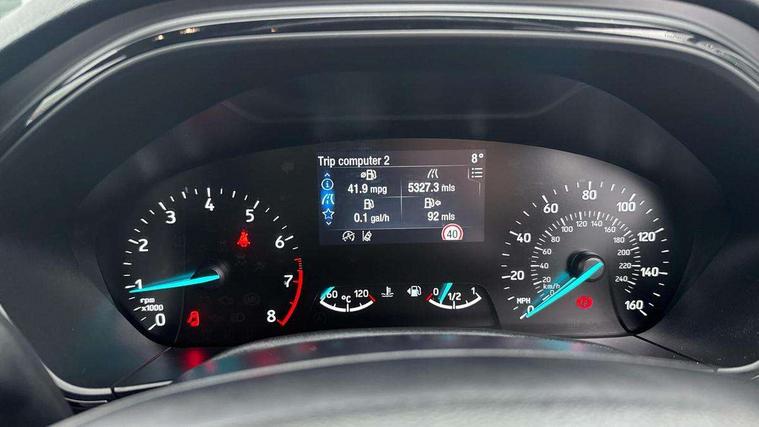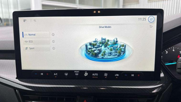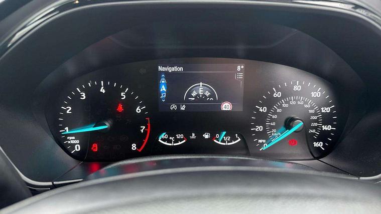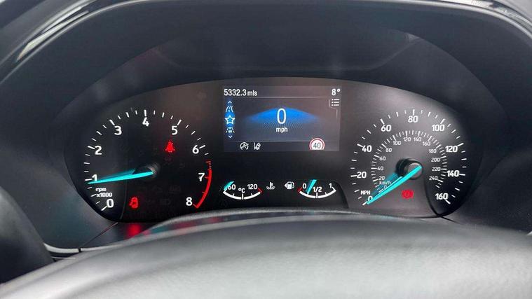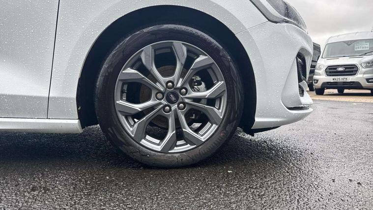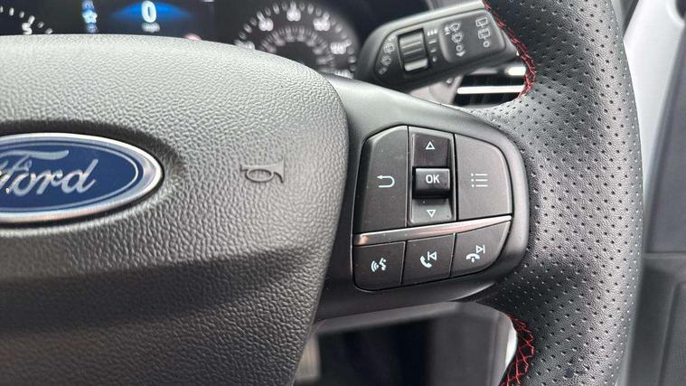 4.2" Colour TFT Ice blue illumination analogue cluster with trip computer, Bluetooth system, Digital clock, Easy fuel capless refuelling system, Eco mode, Ford SYNC 4 Navigation with 13.2'' touchscreen, DAB radio, Emergency Assistance, Apple Carplay & Android Auto, 6 speakers & FordPass Connect, Lane keeping system - lane keeping alert and lane keeping aid, PAS, Rev counter, Selectable drive mode, Service interval indicator, Sports tuned suspension, 2 USB ports, Auto headlamps (on/off), Body coloured door handles, Electrically operated front and rear windows with one touch opening and closing, Electrically operated heated power fold door mirrors with puddle lamp with side indicators, Front variable intermittent wipers with electric wash, Full fixed LED headlamps, Heated rear window, LED daytime running lamp, LED rear lamps, LED third brake light, Polished twin tailpipe, Privacy glass, Quickclear heated windscreen, Rain sensor, Rear side wing doors, Tailgate wash/wipe, Unique ST-Line grille, full bodystyling kit, and large body coloured rear roof spoiler, 3 rear headrests, 3 seat bench in 2nd row, Cloth upholstery, Dual zone electronic air temperature control, Height adjustable front headrests, Isofix child seat preparation, Manual 2-way passenger seat adjust, Manual 4-way driver seat adjust, with manual lumbar adjust, Reach + rake adjustable steering column, Single front passenger seat, 3x3 point rear seatbelts, ABS+Electronic Brake force Distribution, Auto hold function, Driver airbag, EDL traction control, Electronic parking brake, Electronic stability control, Front and rear seatbelt reminder, Front inertia reel height adjustable seatbelts with pre-tensioners, Front passenger airbag, Front side airbags, Passenger airbag deactivate switch, Post collision braking, Pre collision assist with autonomous emergency braking and pedestrian/cyclist detection, Remote/power child rear door locks, Side curtain airbags, Three rear inertia reel lap/diagonal seatbelts, Tyre pressure monitoring system, Keyless entry and keyless start, MyKey system, Remote central locking & engine immobiliser, Thatcham alarm with power door dead locks, 17" 5 spoke Rock mettalic finish alloy wheels with mini spare wheel,